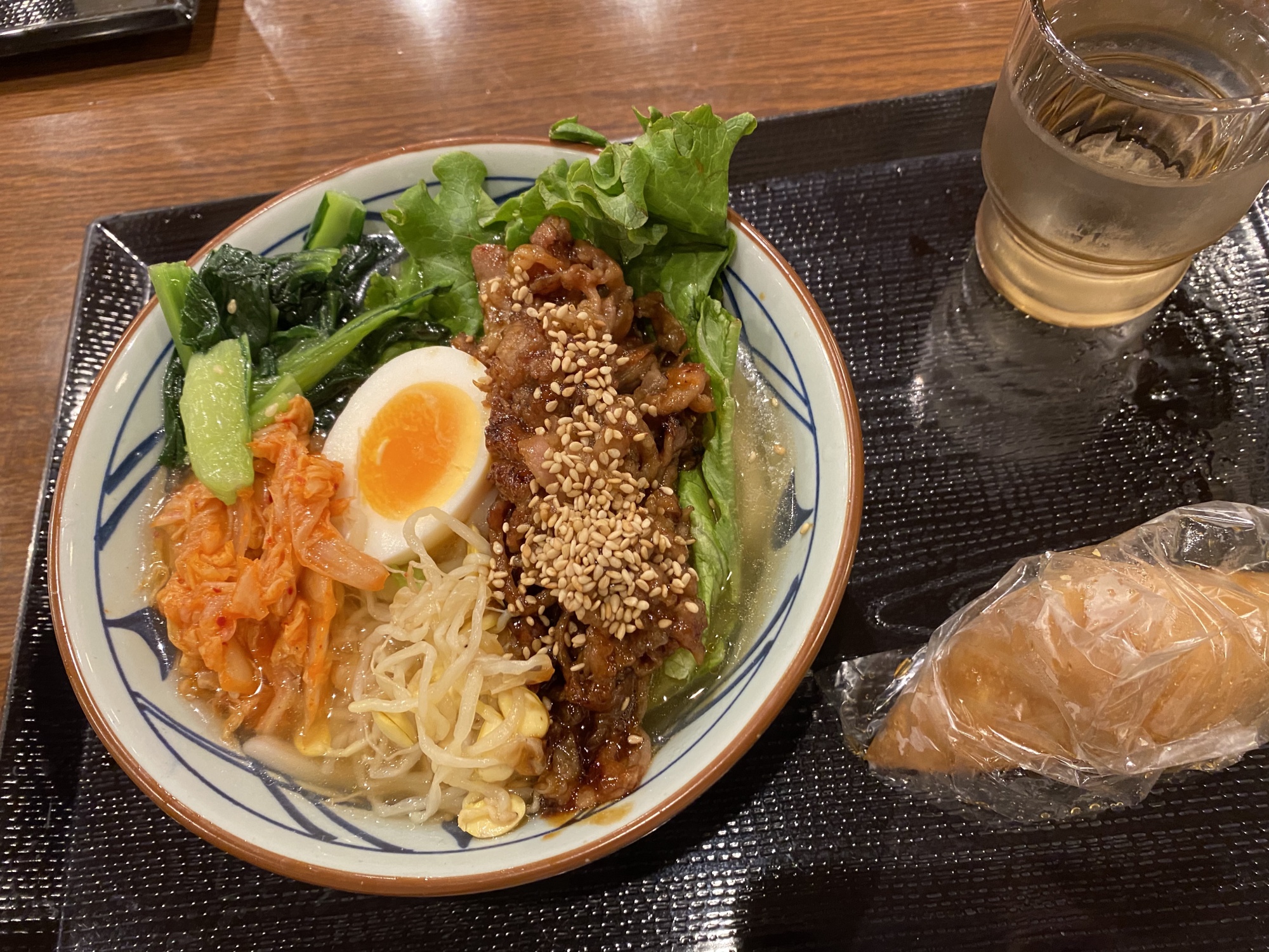 季節限定に誘われての牛焼肉冷うどんは、さながらビビンバうどん。ちょっと写真からの予測とは異なってましたが‥‥。美味しくいただきました。 |