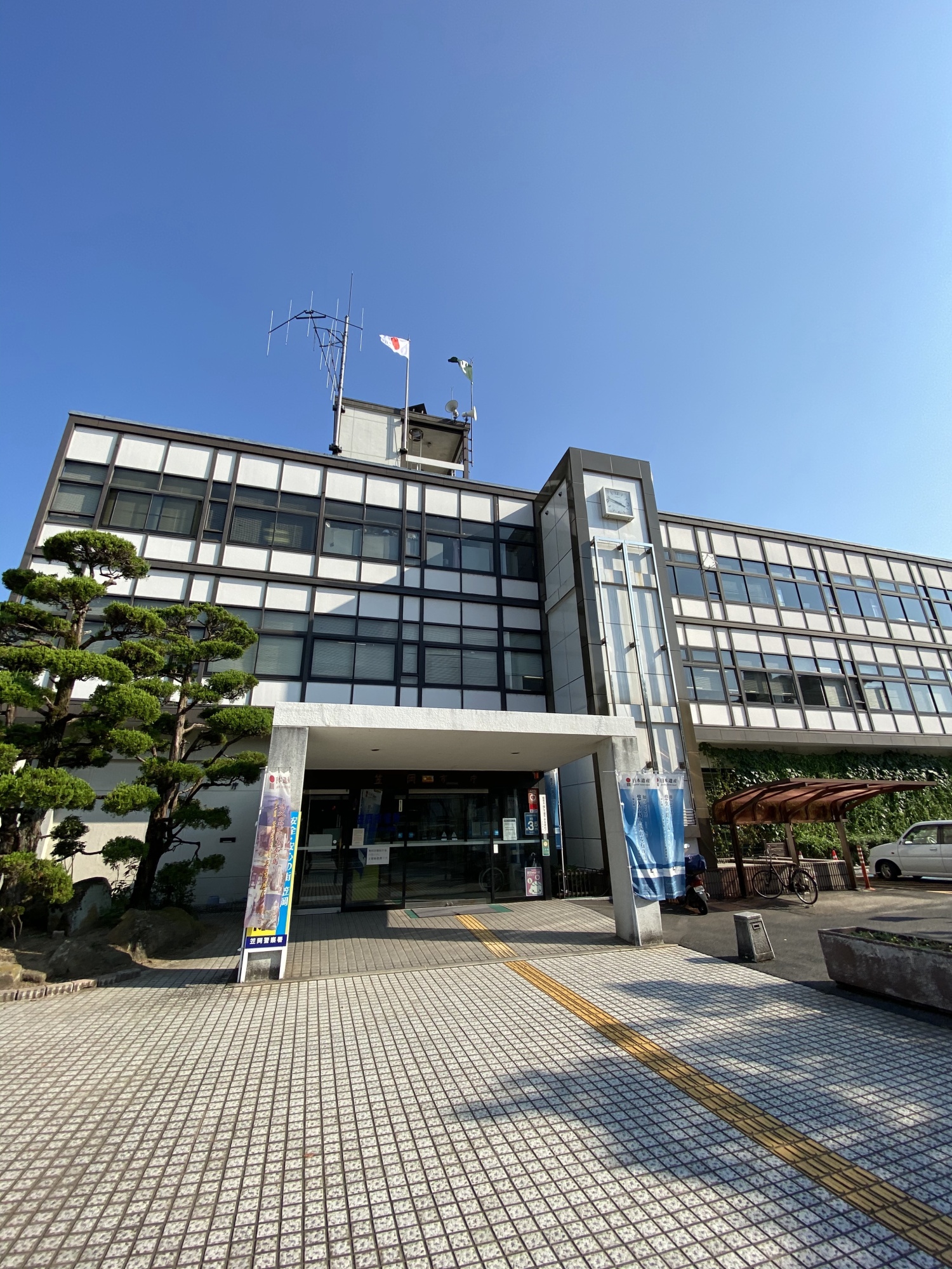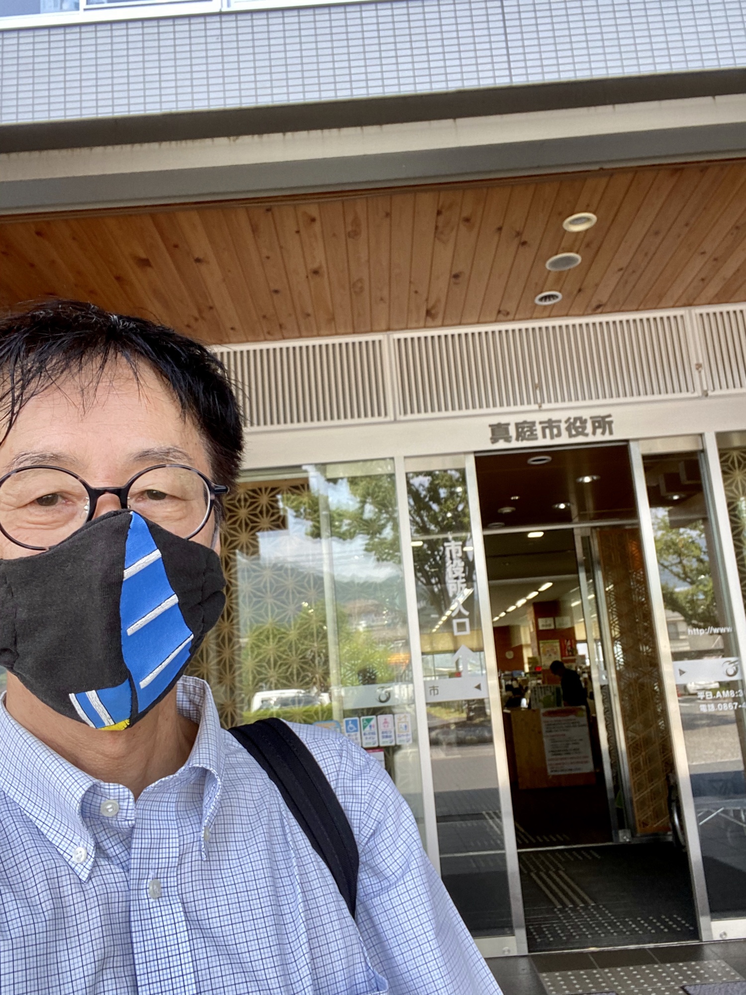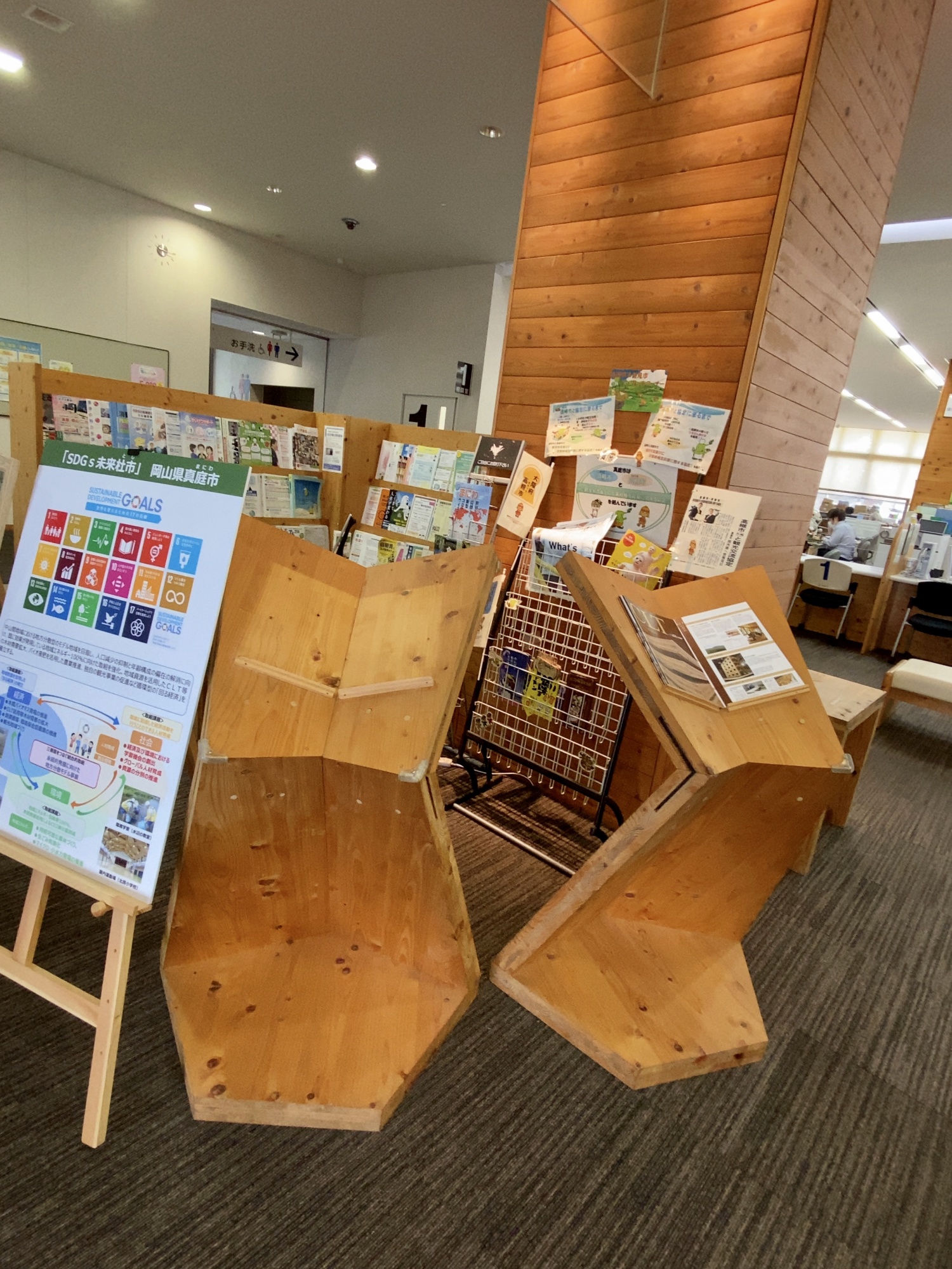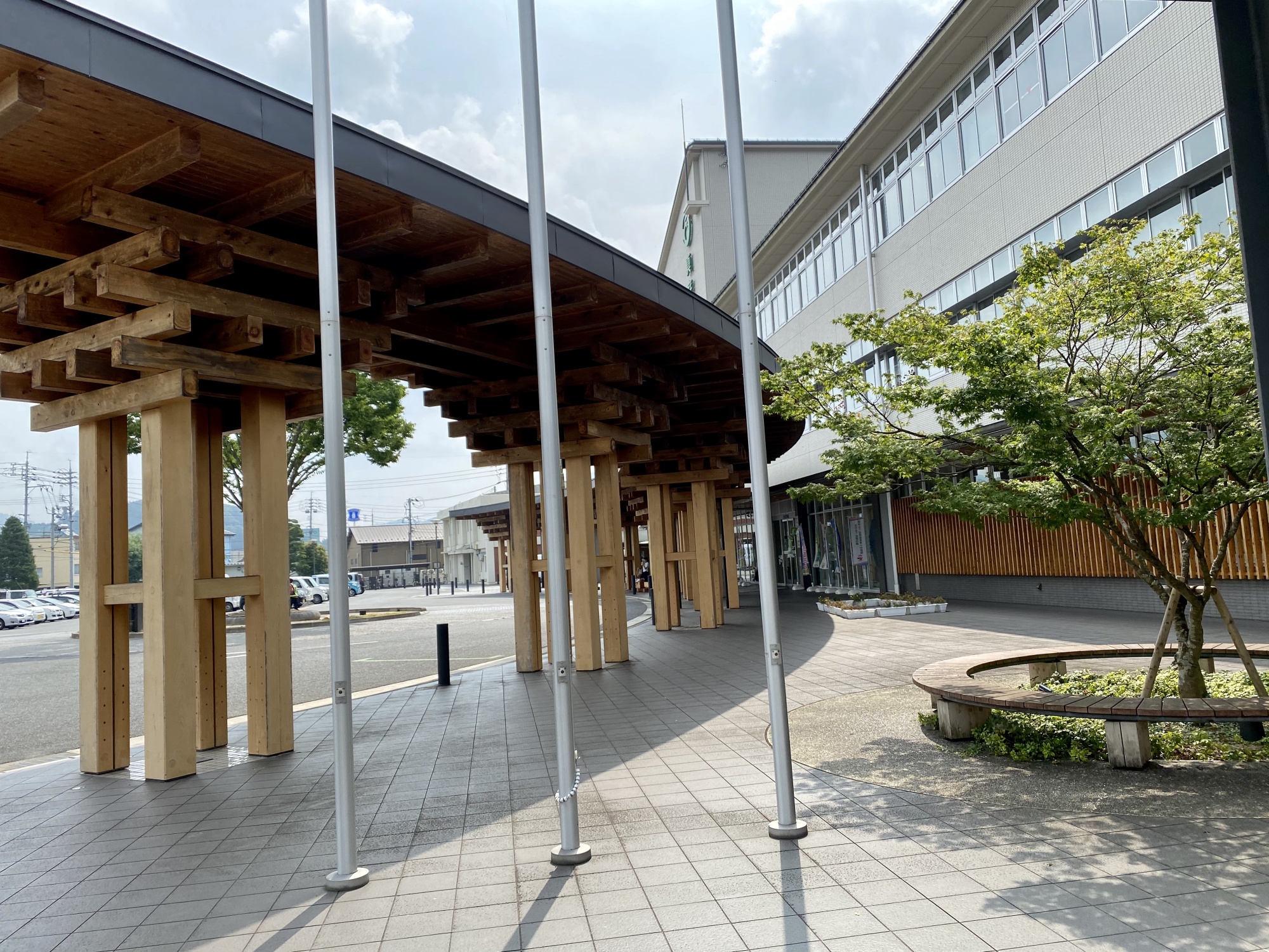 真庭市役所は木が一杯(久世神社への道沿いにも木材関係の会社が一杯でした)。