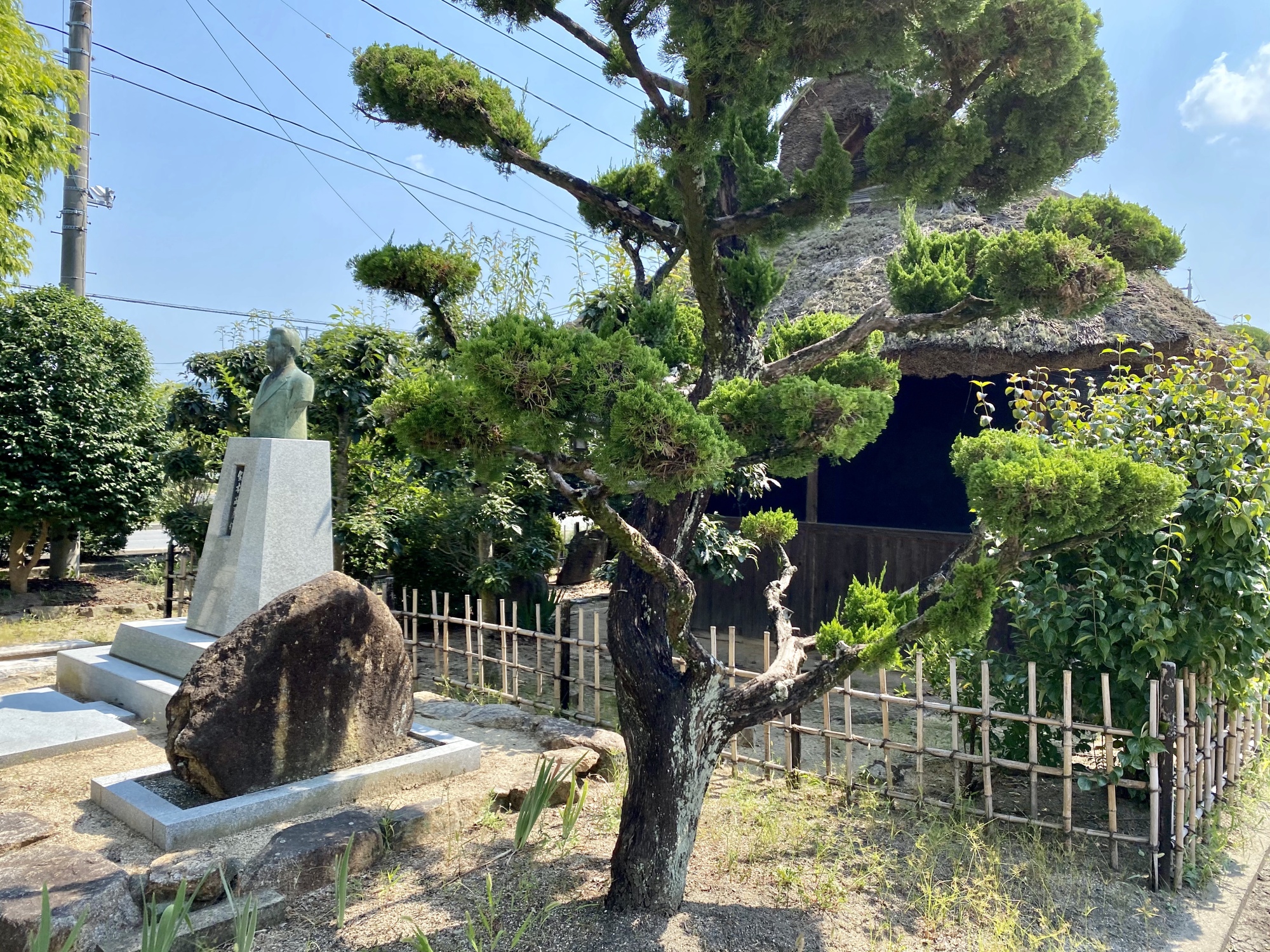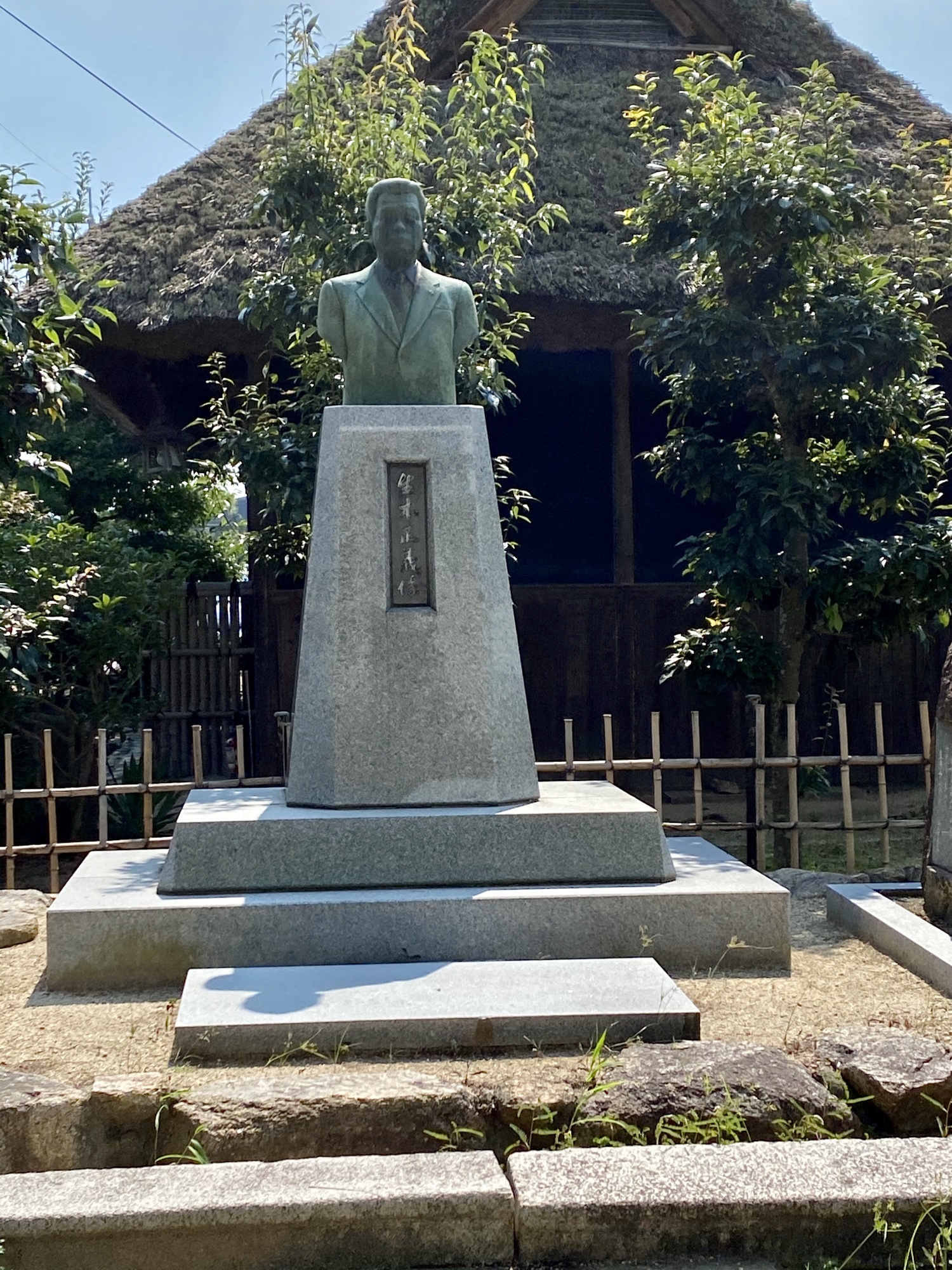 市役所の横には、中央公民館、保健センターなどが集約されていますが~その前に茶室と、元町長の像があるのは~毎回、眺めますので、知っていました。