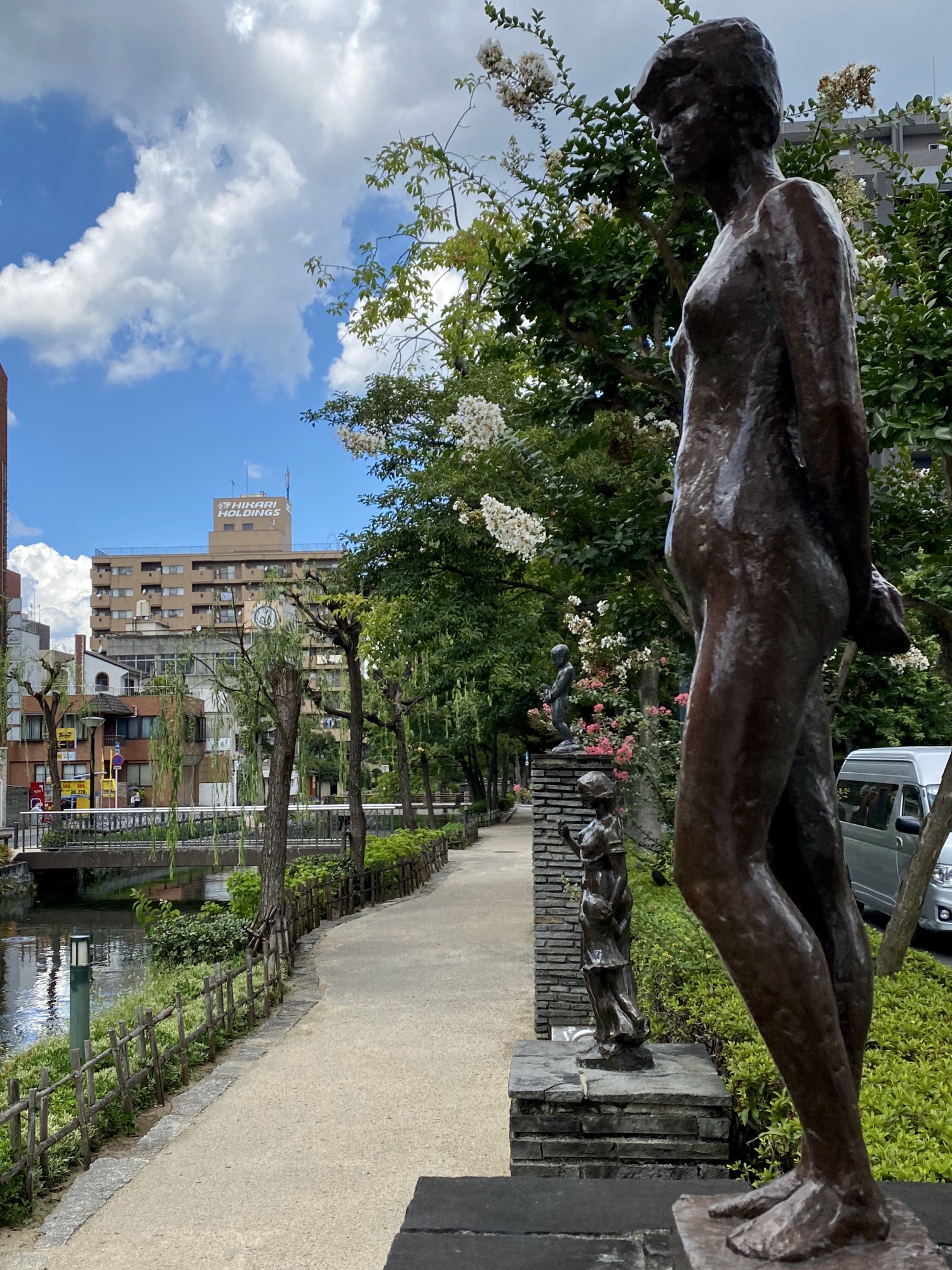 で、早めの岡山市到着も・・昼過ぎの本当に猛暑の残暑の中でしたが~でも、折角なので、西川緑道公園