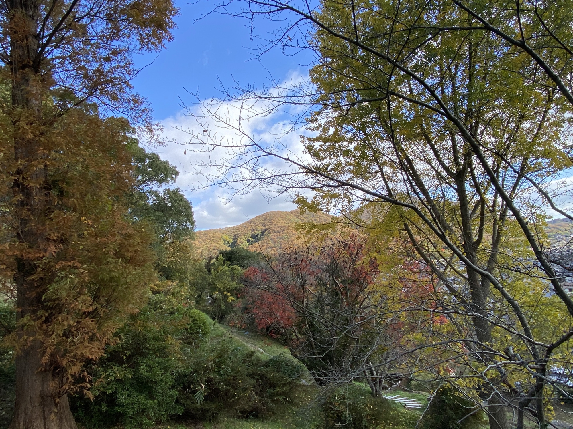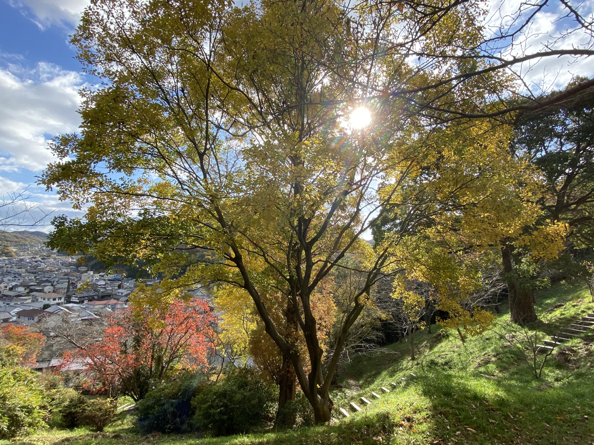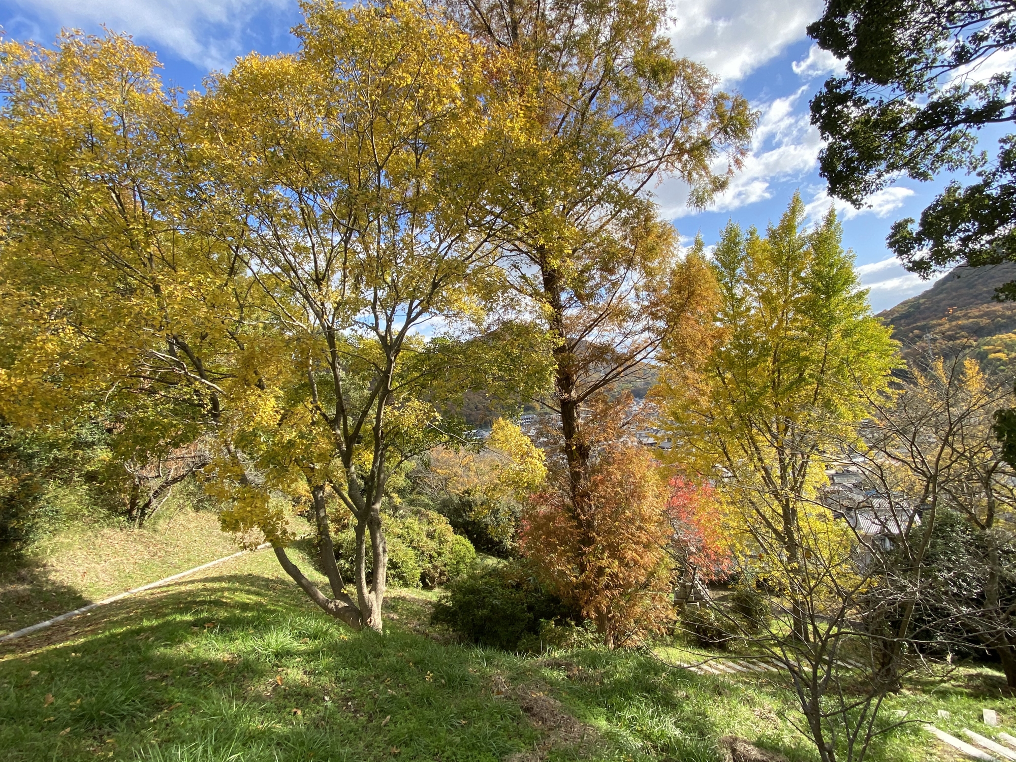 この辺りに児童公園もあって・・・色付きと・・そして、町並みも眺めることができます。