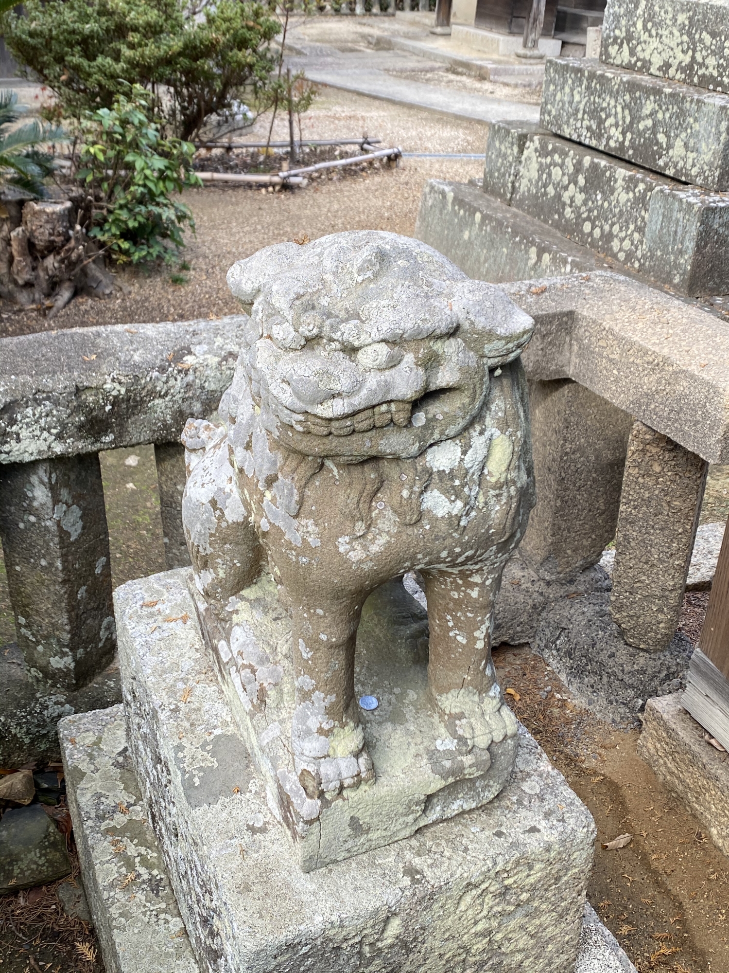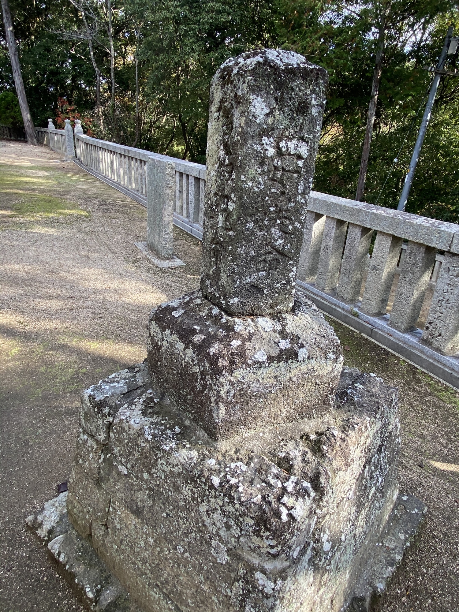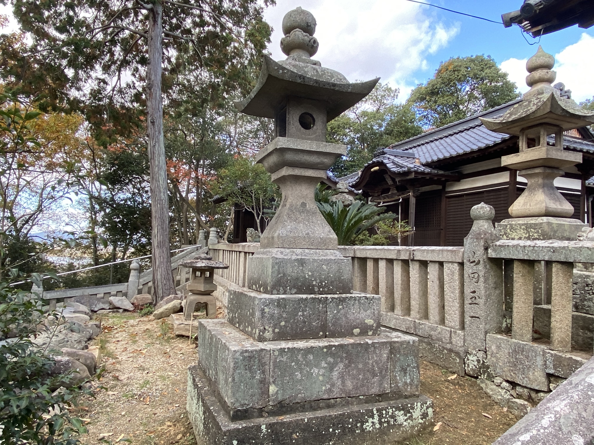 玉野市八浜登ると八幡宮で。普段着でしたけど宮司さんでしたでしょうね、これが珍しいと〜宮司さんも最近、参拝に来られた徳島の方から伝えて頂いたとの事でしたがこの石塔、五角柱です。確かに珍しい‼️