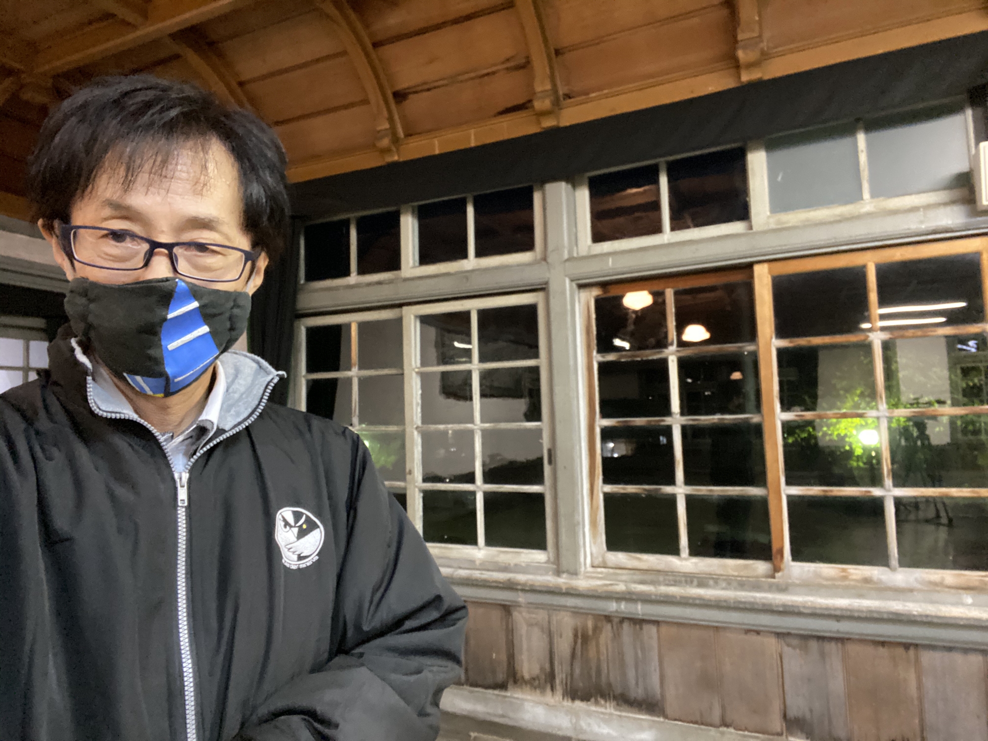 夜17時過ぎくらいに、真庭市久世の旧遷喬尋常小学校跡に入りました。