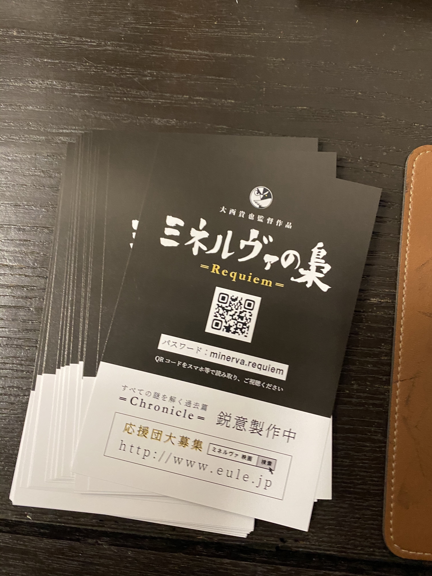 実は、旧知の「大西貴也」監督による「ミネルヴァの梟」プロジェクト、最初は、舞台(その時の舞台背景の映像があって~で、それを融合させる映画が当初の目的だったと聞いていたのですが、方向転換で、今回、requiemっていう短編映画が、まず再録画されて、そのミニ上映会です。