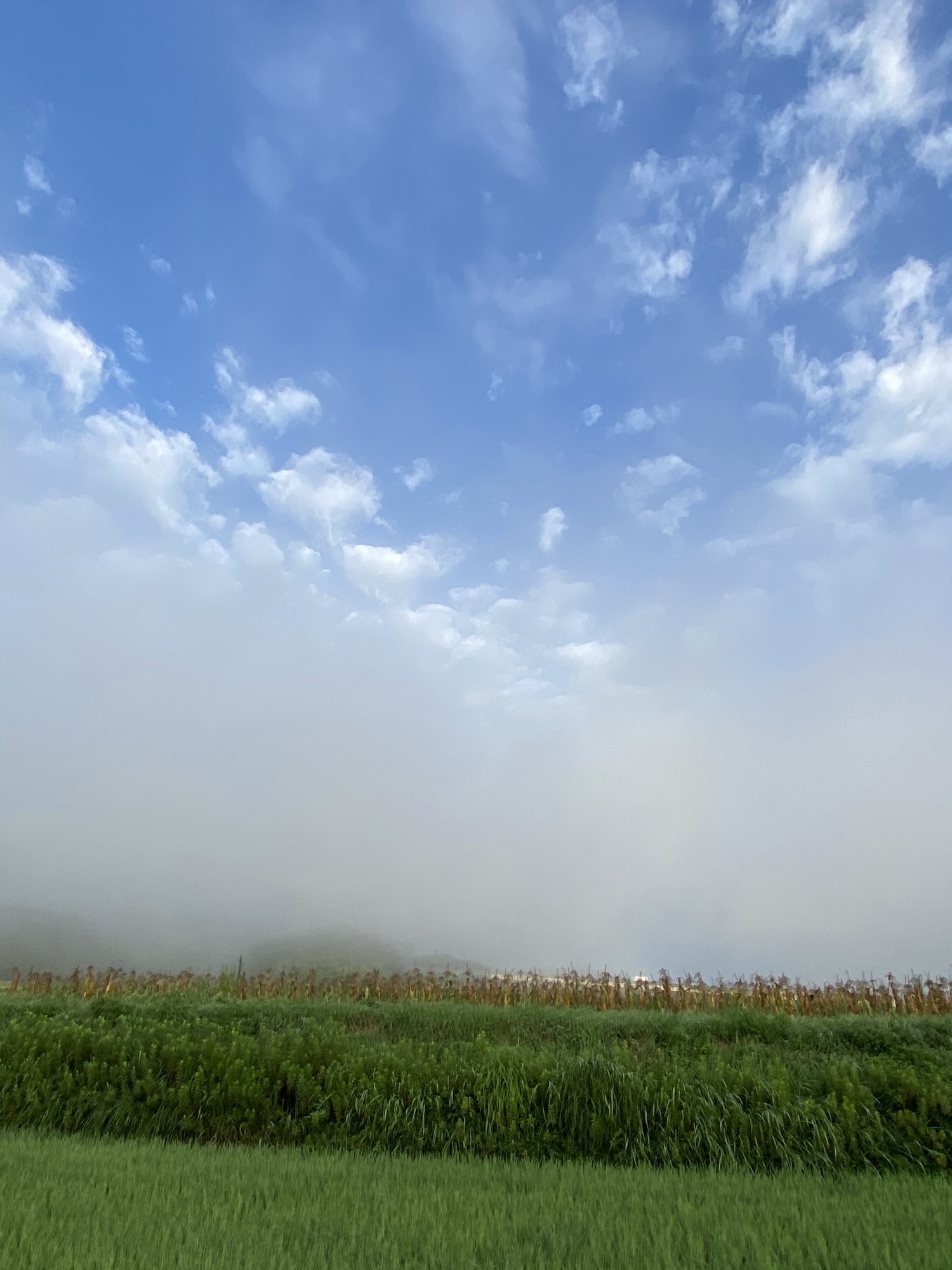 今日は・・霧!!! かなりの濃霧の中で、走り始めました。3.5km目標!
