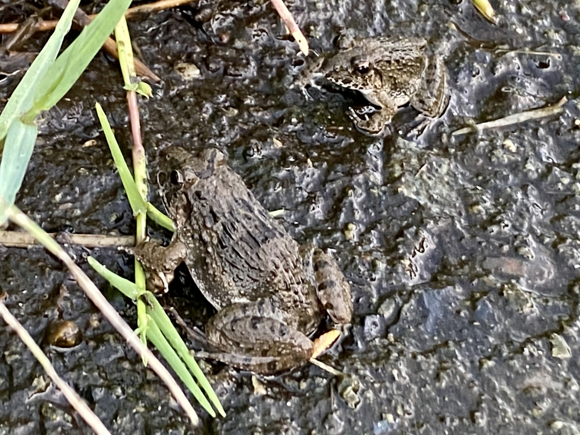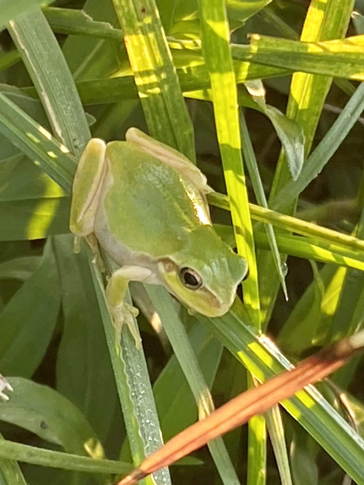 そして、今日の、地球の仲間たちですが。。。アマガエルと。。。バッタの関係者さんかしら??