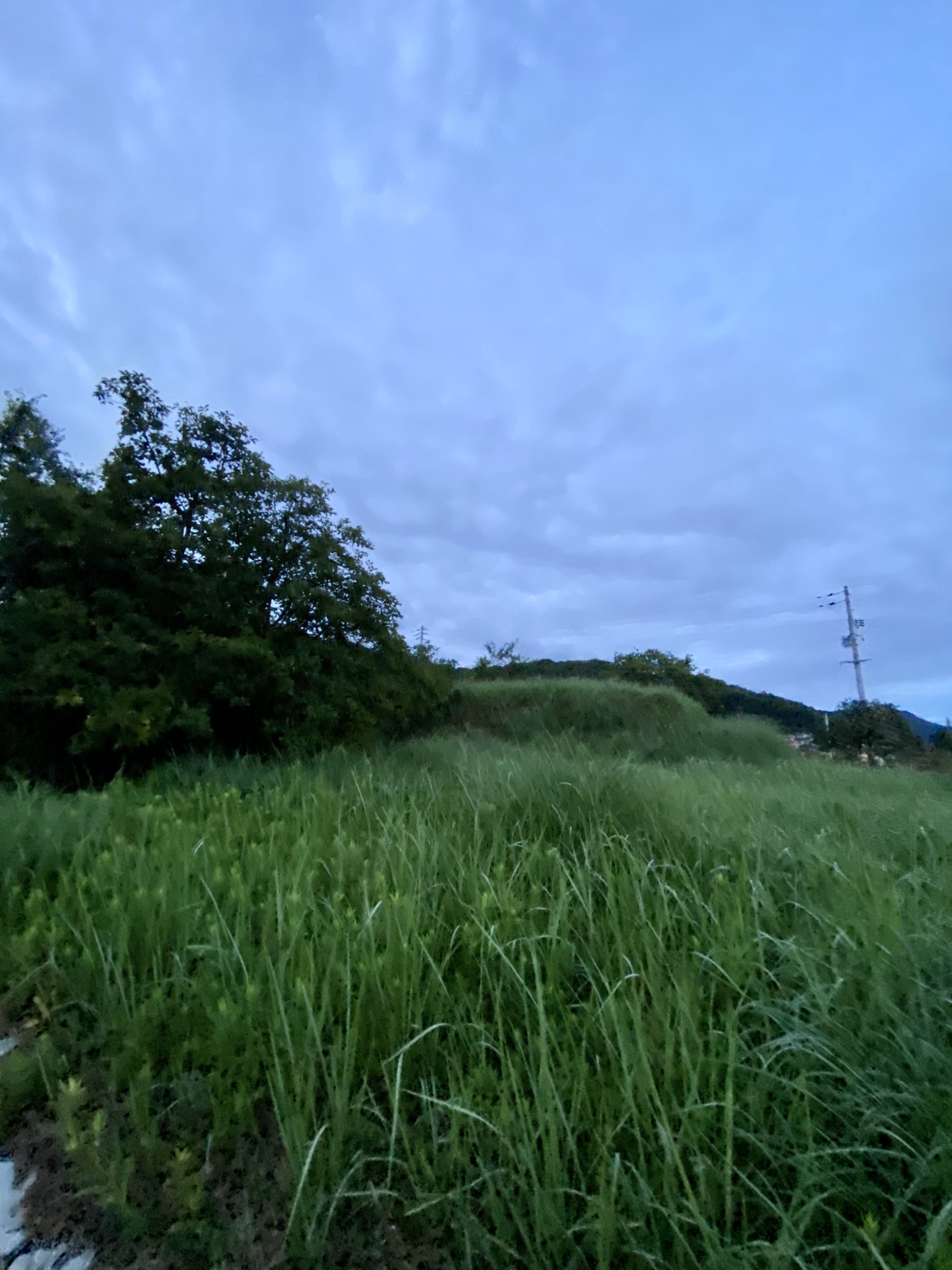 ジョグ開始頃は暗くなりました。今日は雲も多かったし。~ぐるりと定番の6km+のコースで、花々は、砂原団地の周辺で。