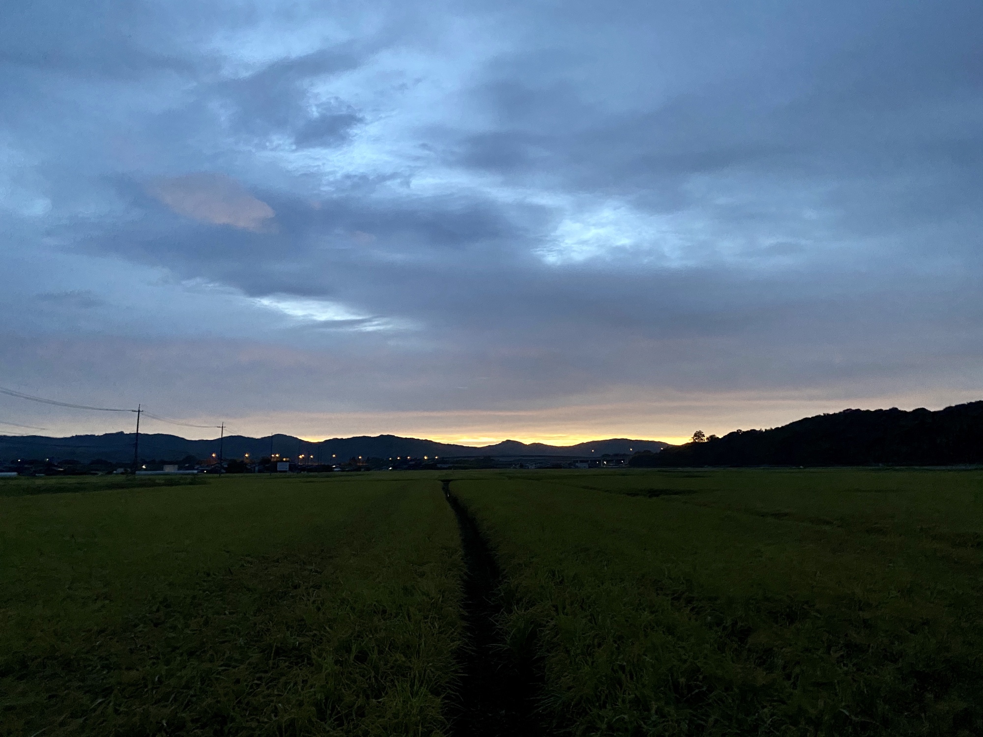 雲が多くって、最初は、真っ暗。少し明けてきて・・・造山古墳。