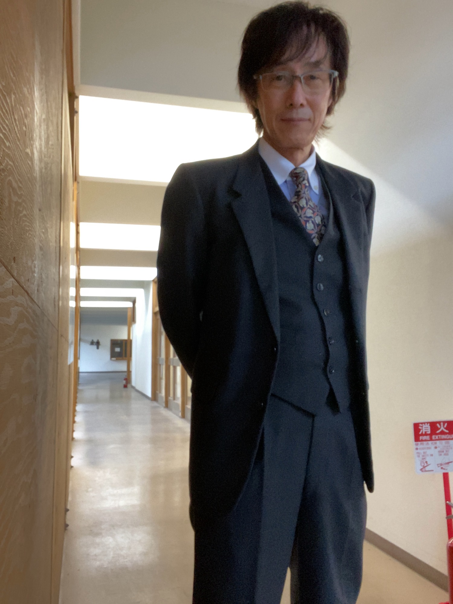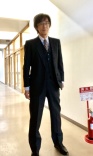 2日:daughterは入学式でリクルートスーツですね。そして、僕がもらった花も。