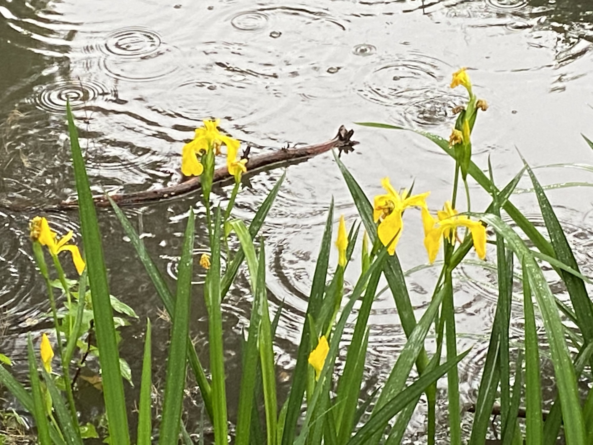 外堀でもないけど・・周囲の水路に黄菖蒲ですね。