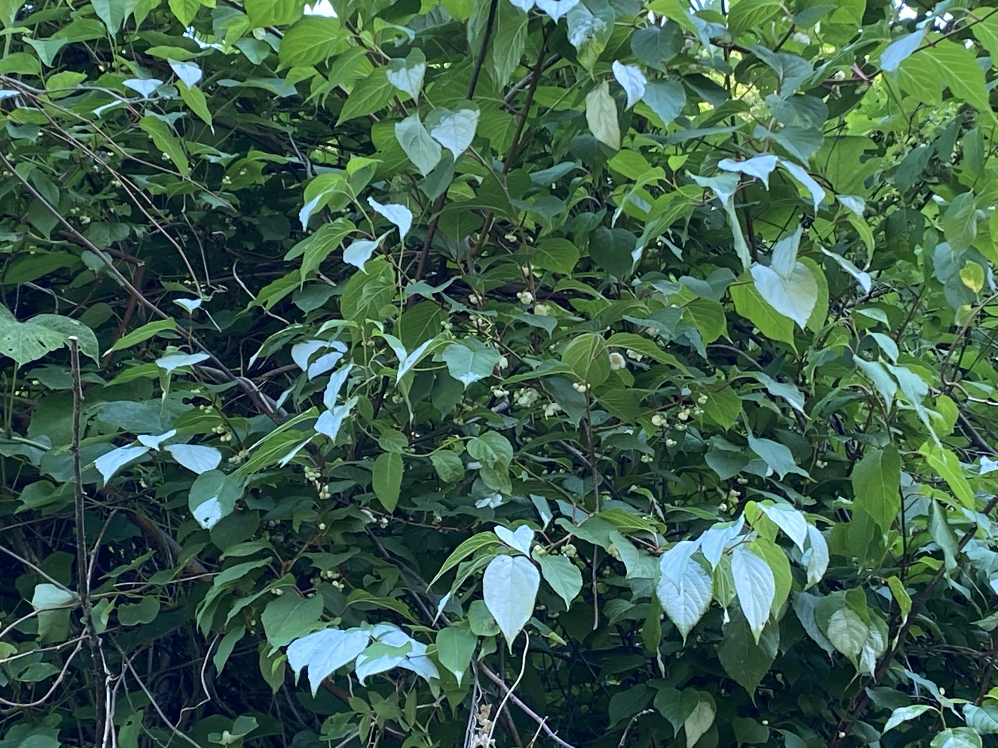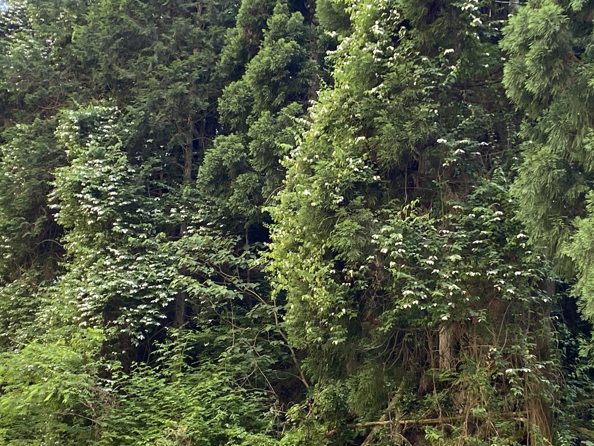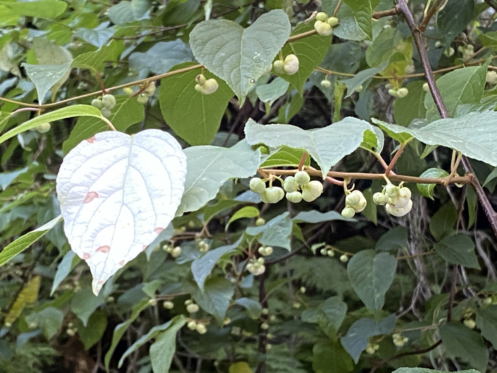 車を止めた県道65号線沿いは、余川・・・で、その支流で山生川・・地区の名前も山生ですね。そして、マタタビの葉が白くなってきています。
