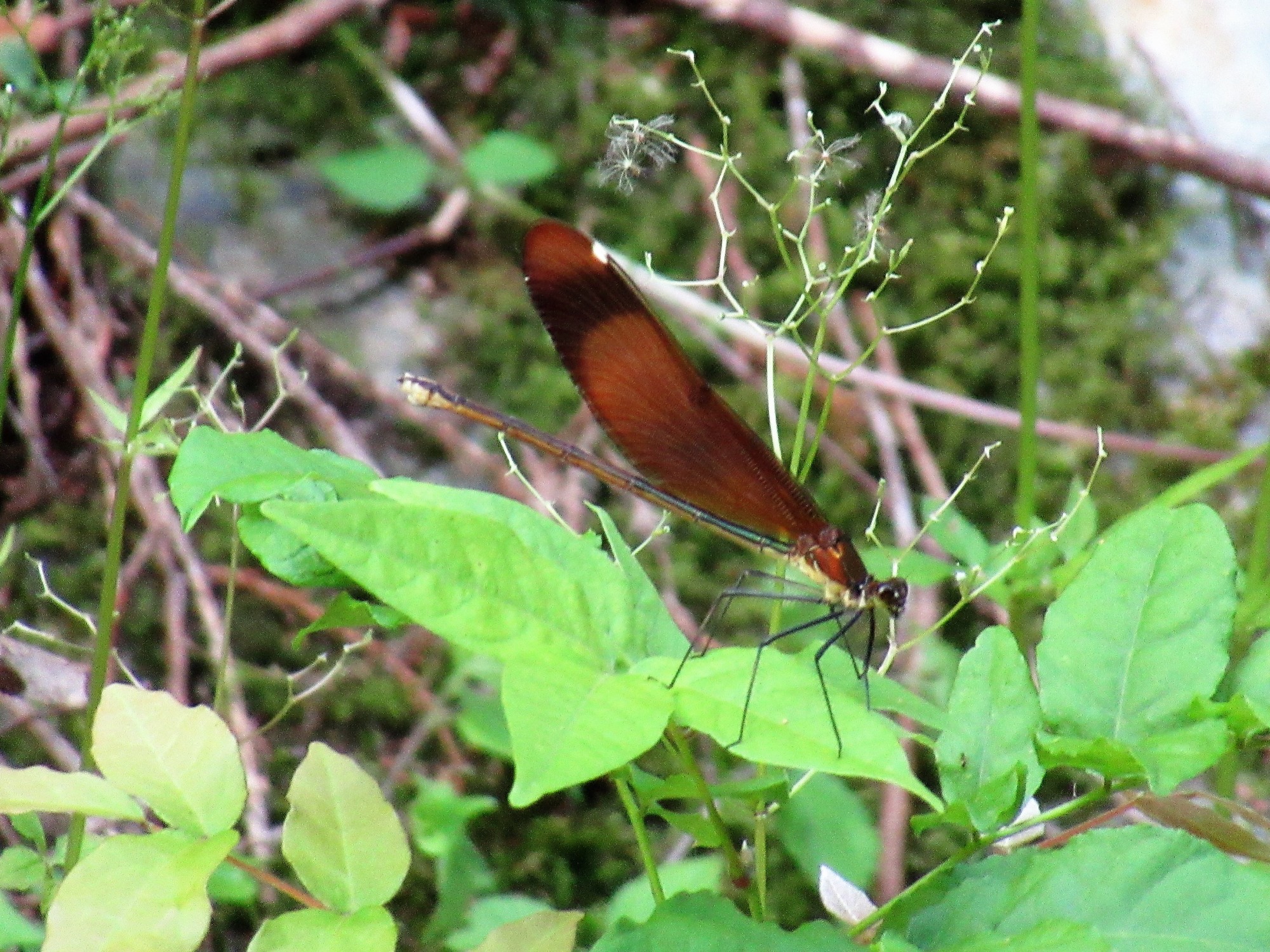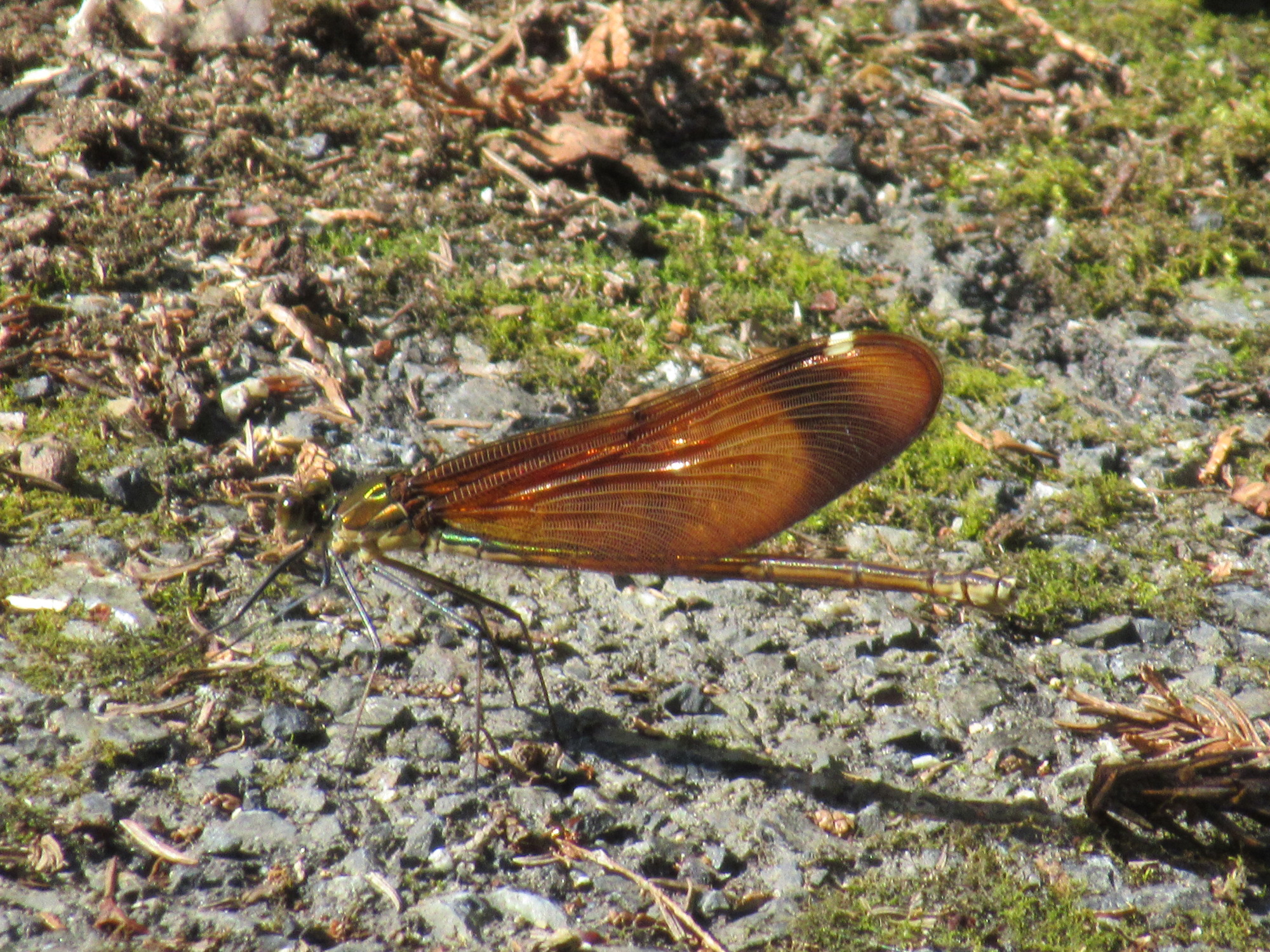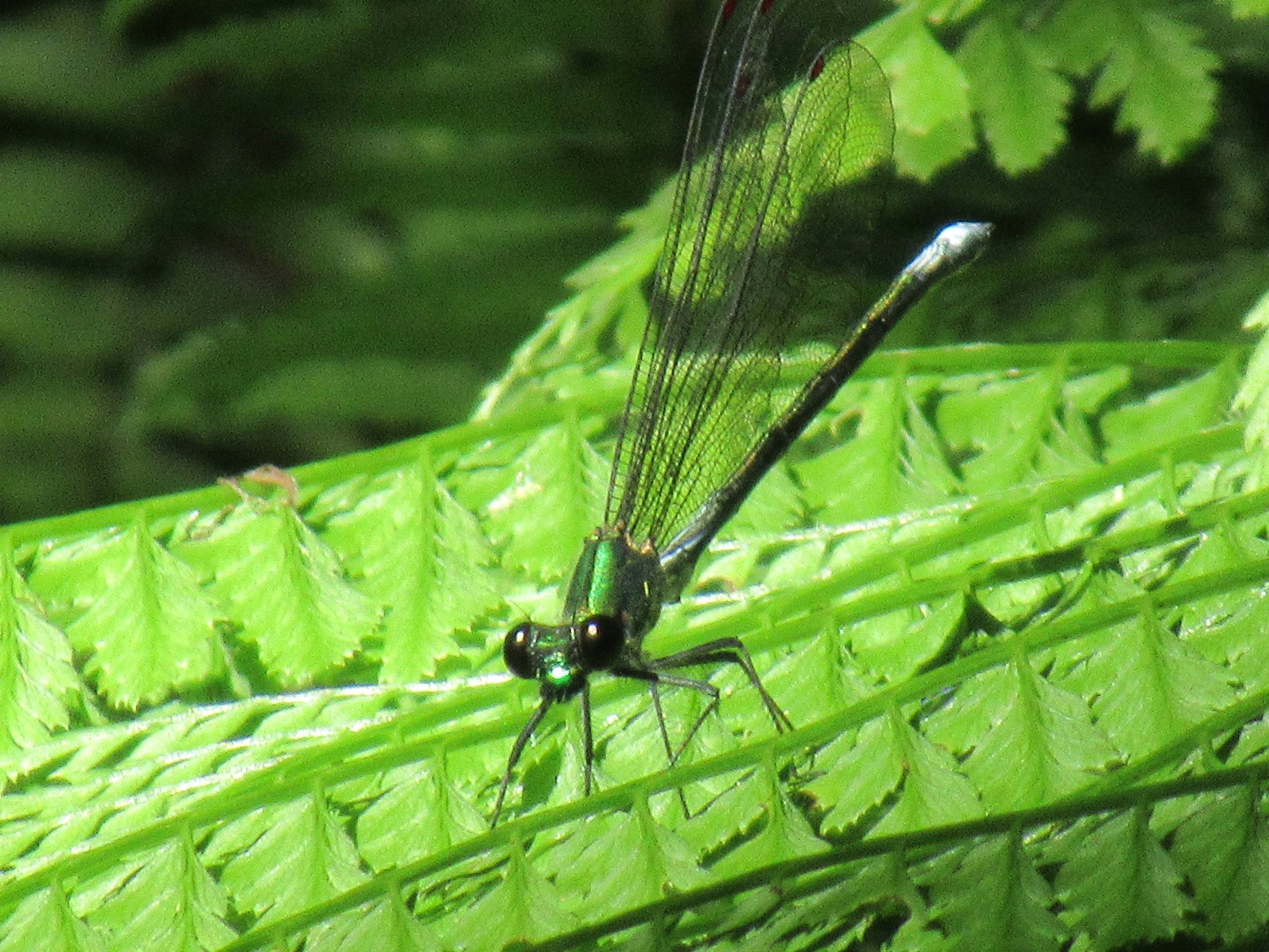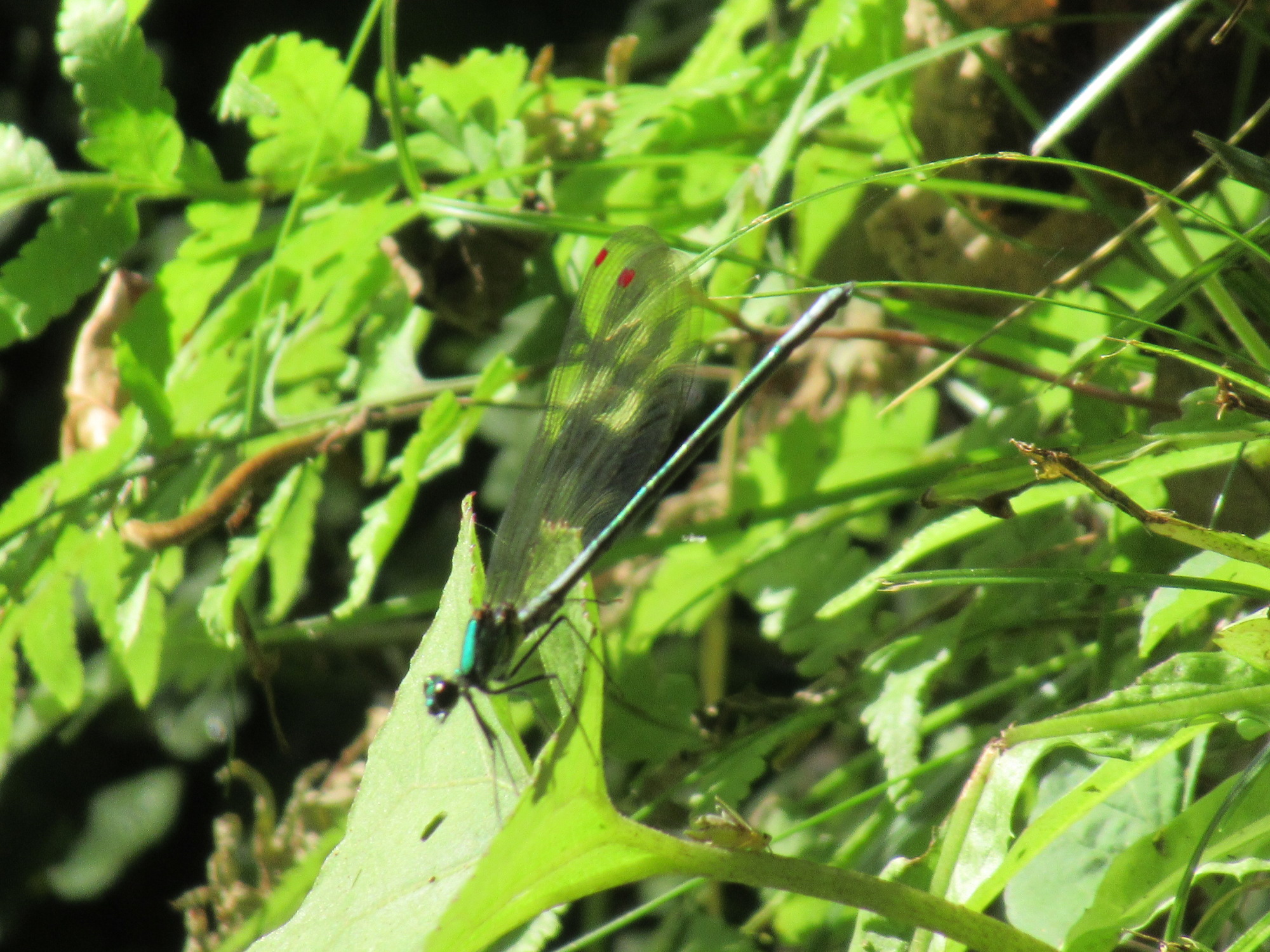 緑で、赤い点・・・・ニホンカワトンボのようです。