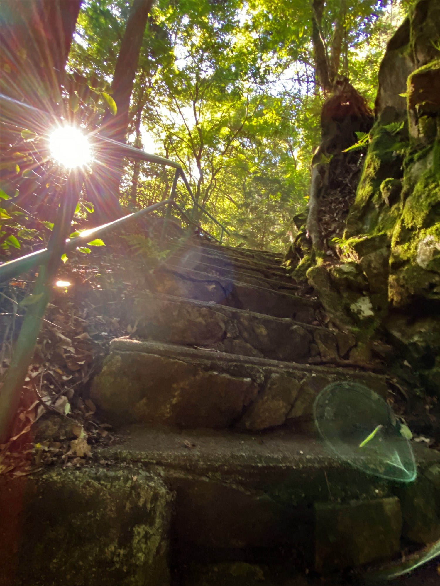車を停めたところから3kmくらいってこと(でも、ずっと登りです)車は標高218mほどの位置に・・・そして、たどり着いた滝は410mくらいですから、そこそこの登りでした。
