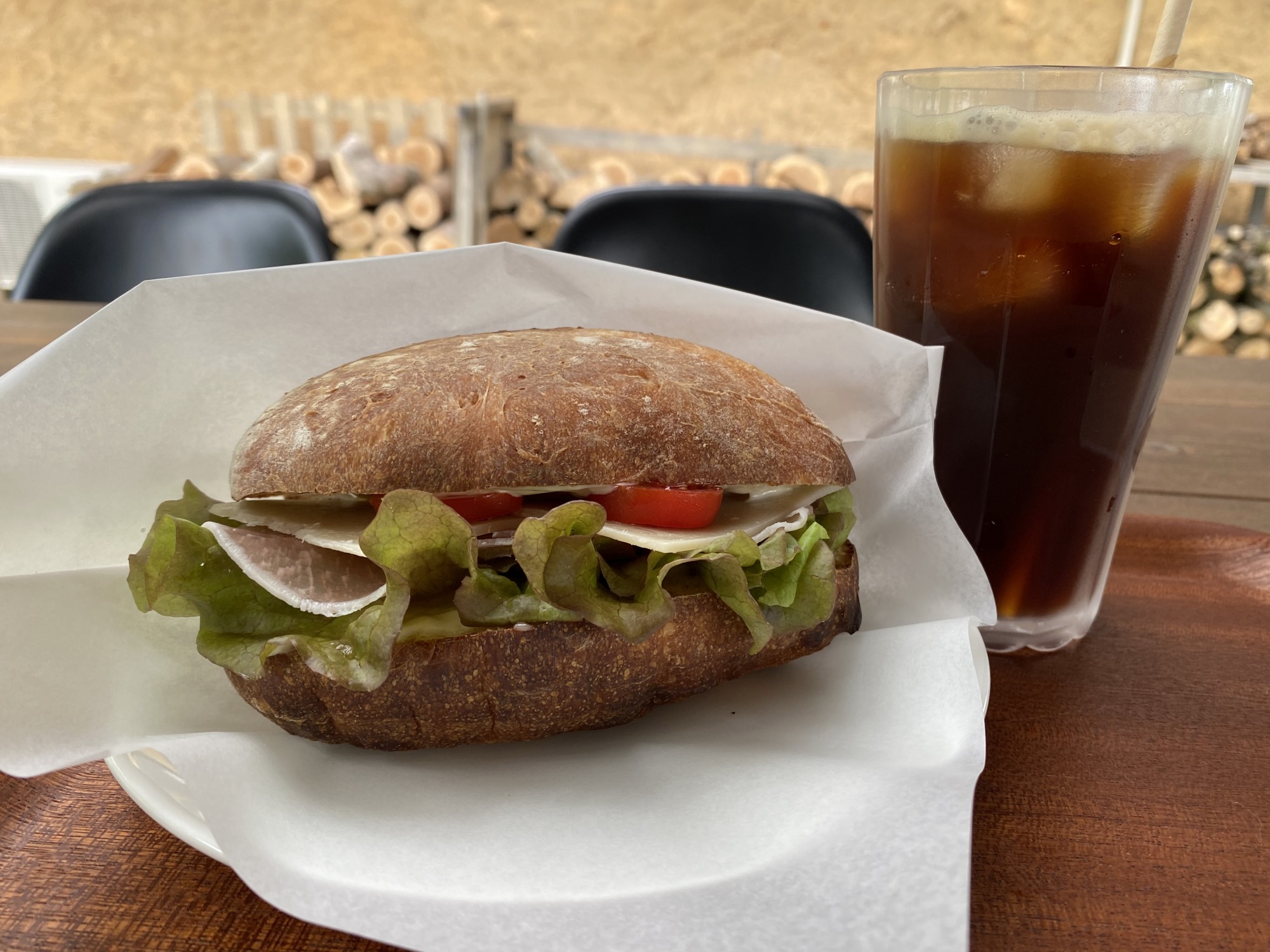 チャバタサンドです。生ハムとクリームチーズです。