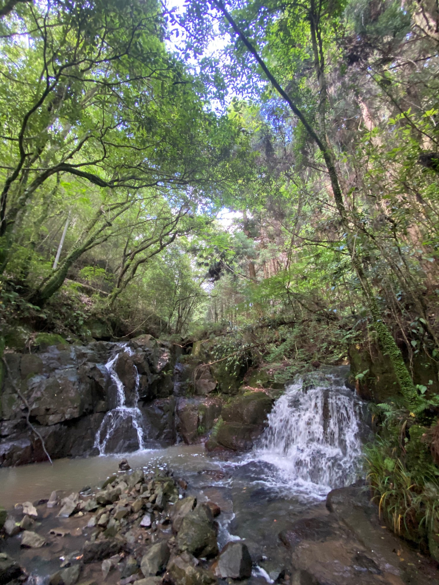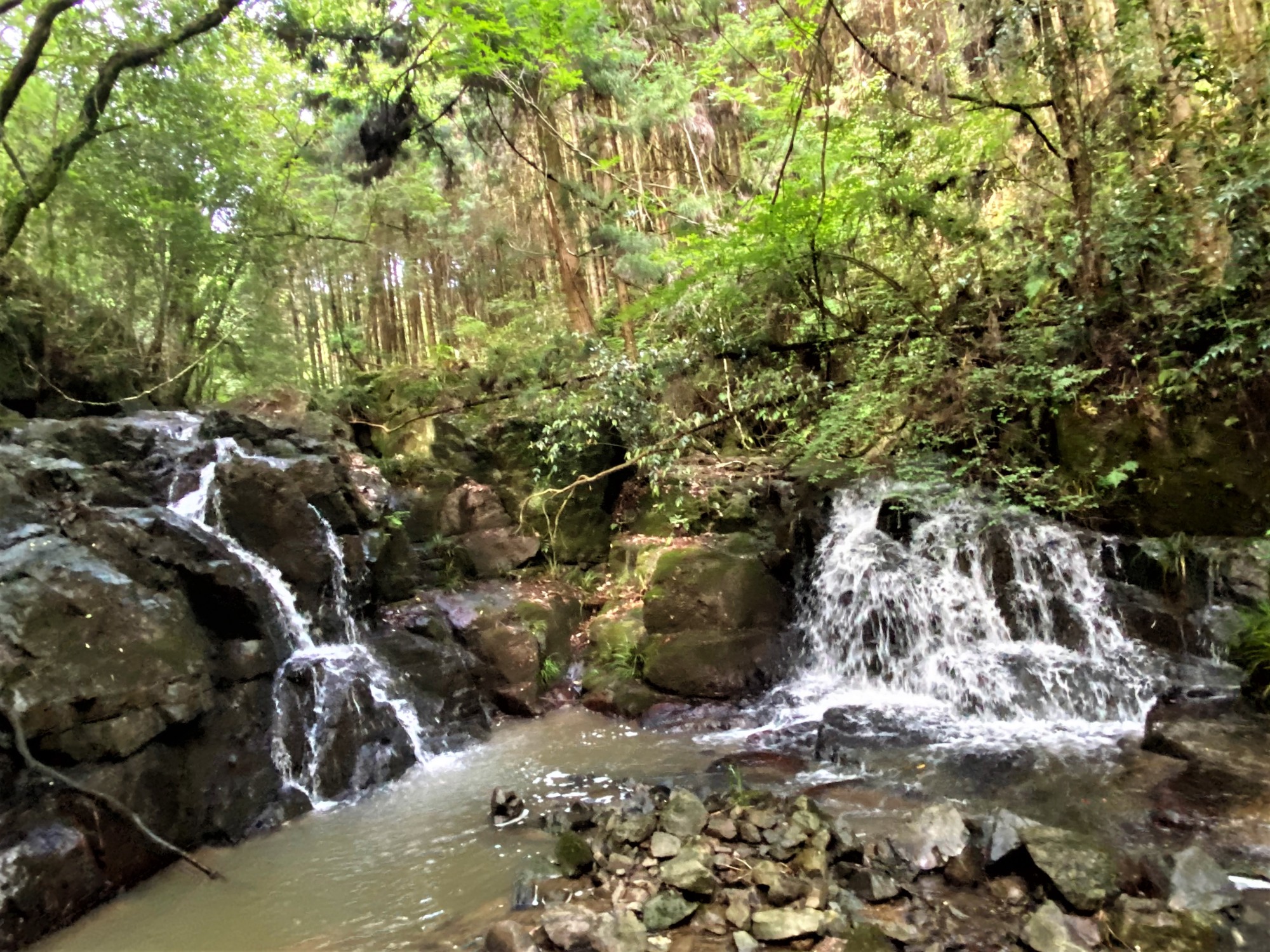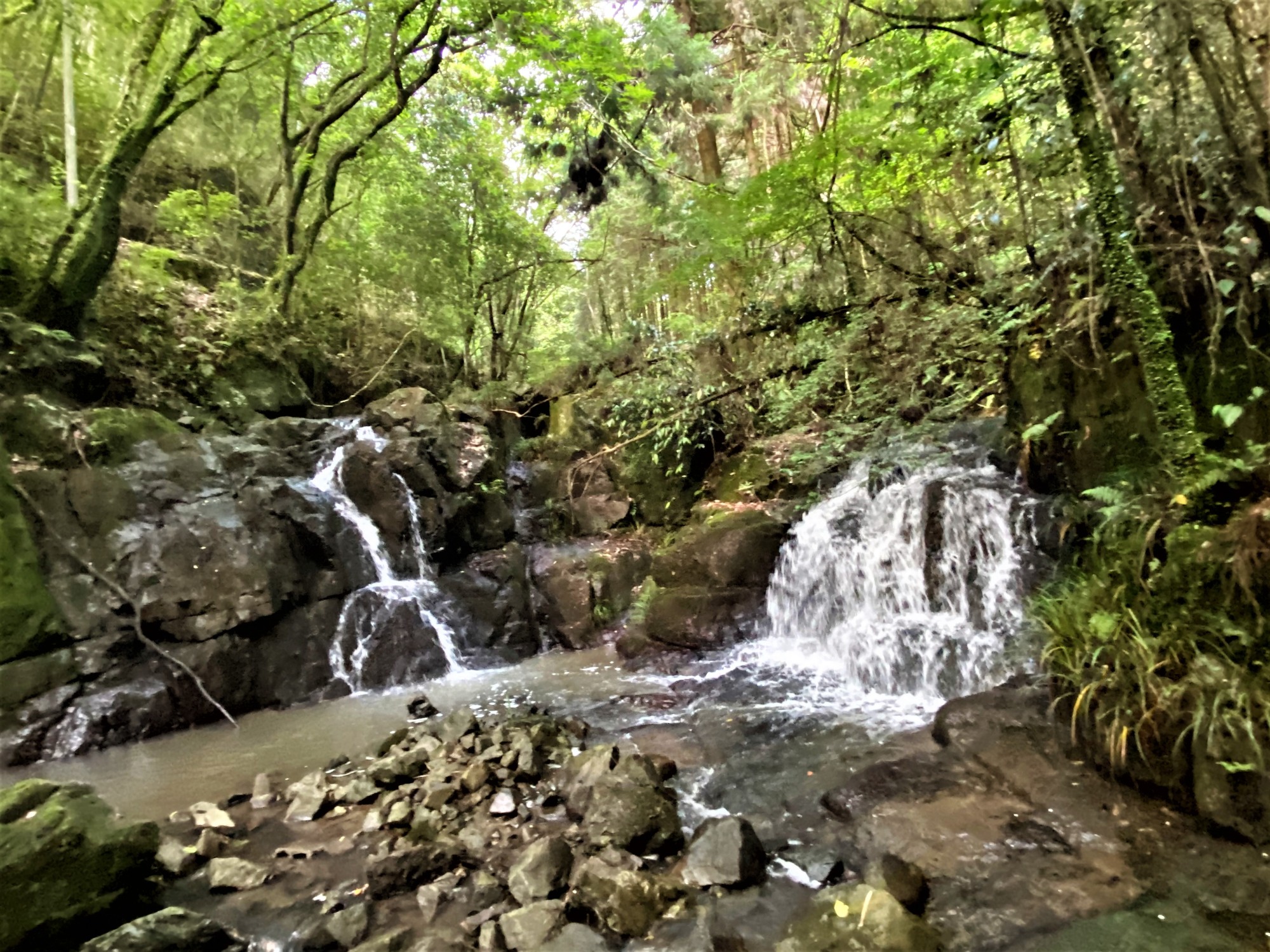 でも、この辺りは、吉備高原の北端近くで・・・遠方の山は、平たいですね。でも、滝もそれなりにありますよね。