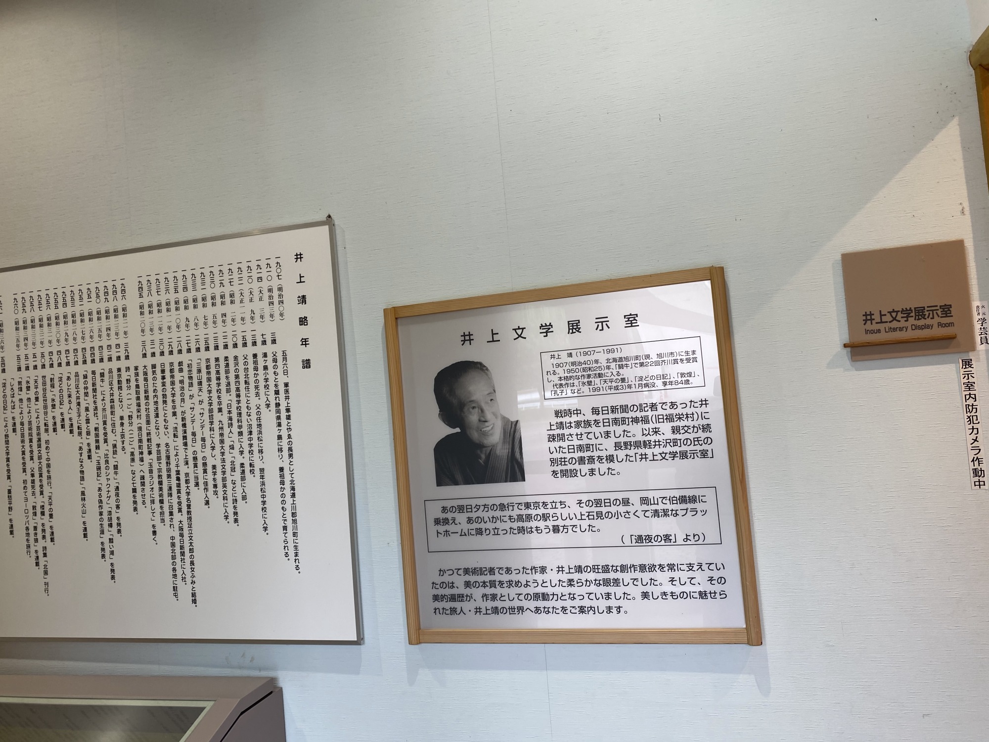 で、役場の隣で、美術館と文化センターは、同じ建物のようで・・・・その間に、所縁の「井上靖」と「松本清張」の小部屋(別の場所に展示館があるそうです。井上は疎開地、松本は父の出身地)がありました。