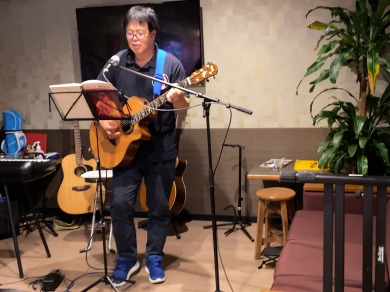 | 普段はPAを担当されていて・・・ギター練習中とのお話! | |