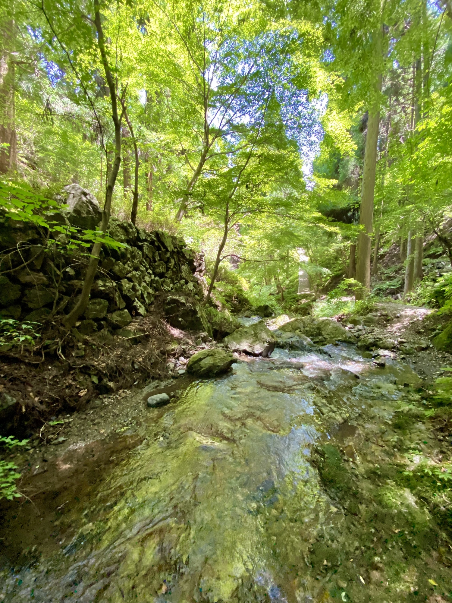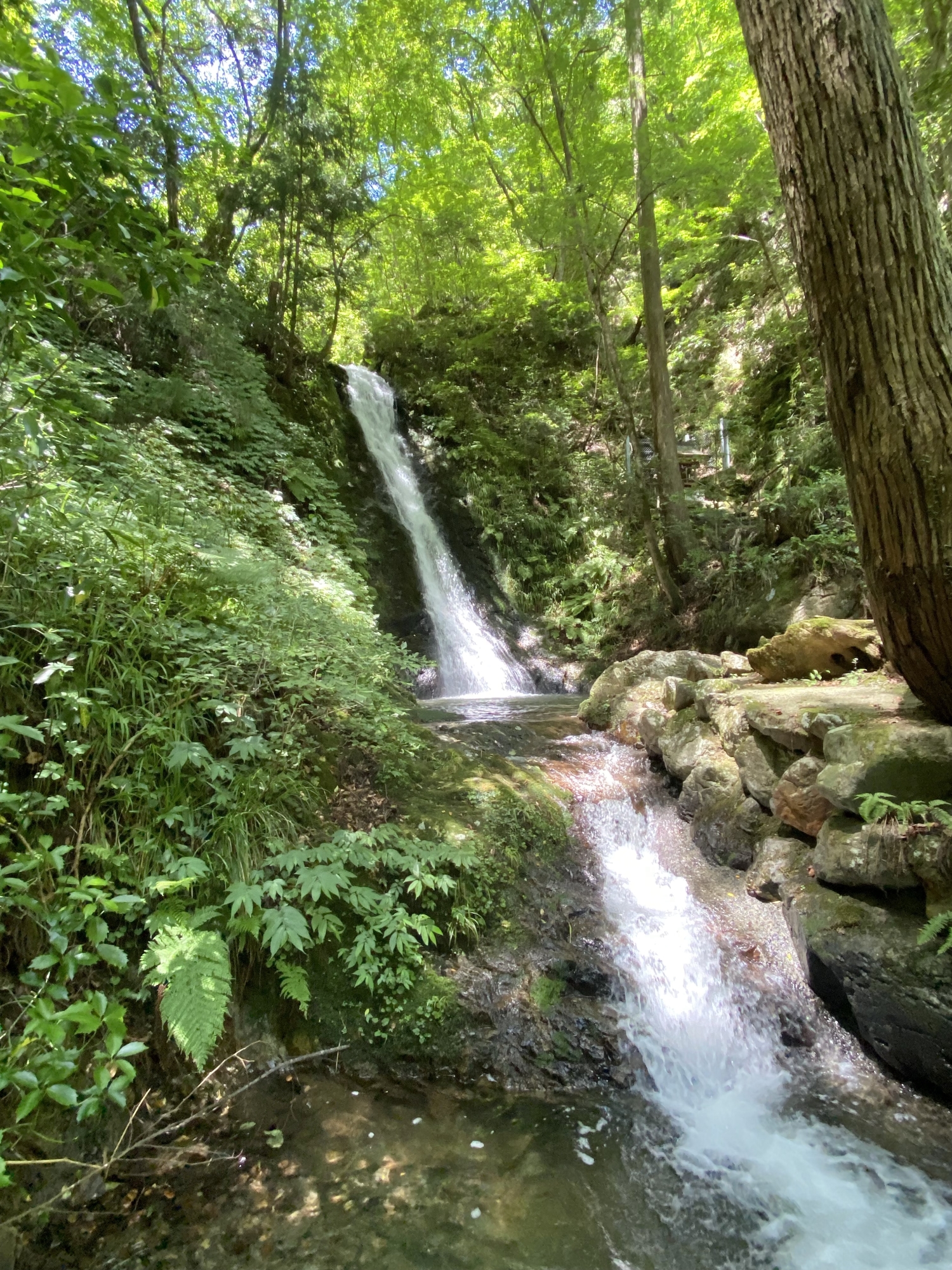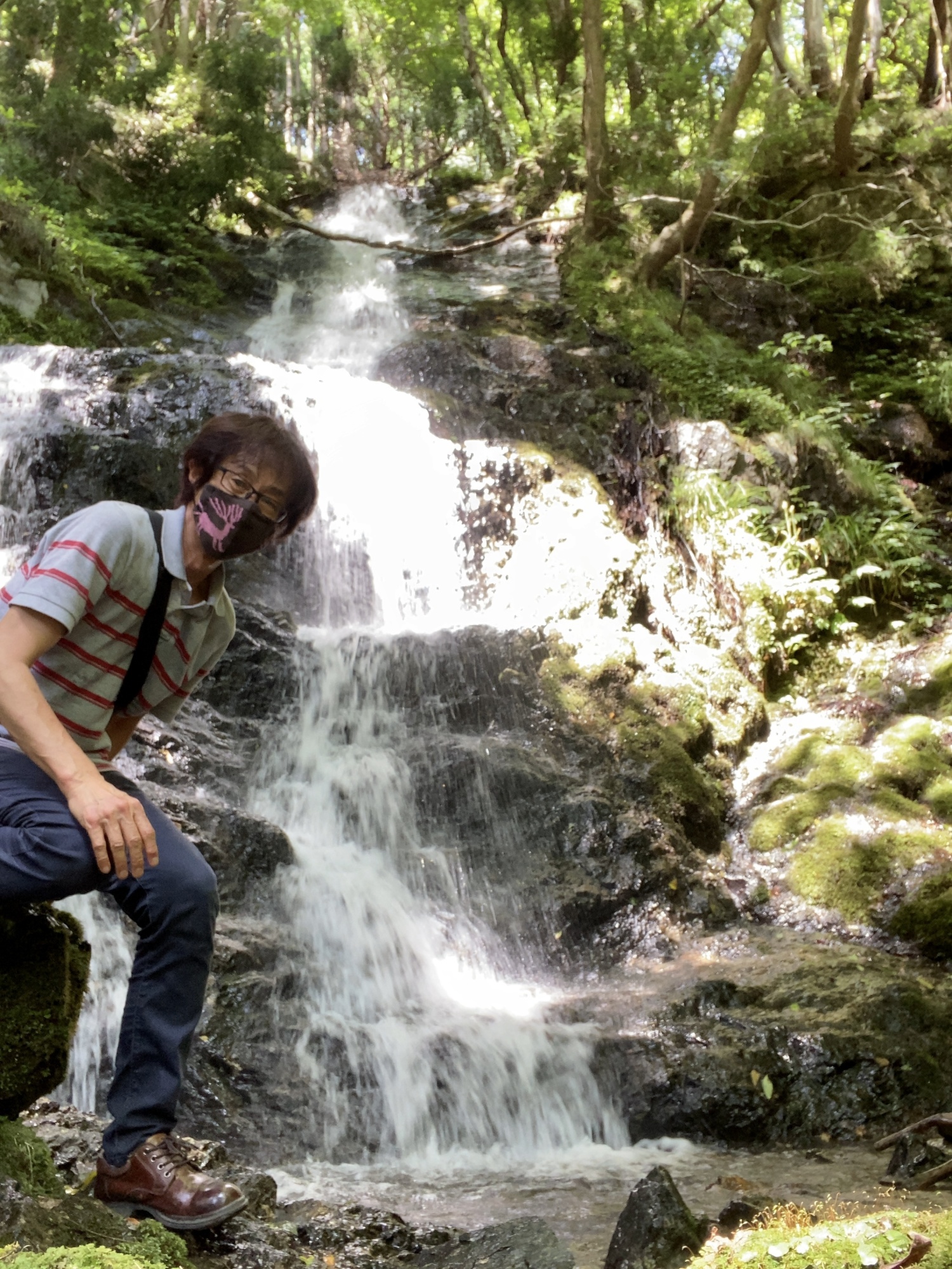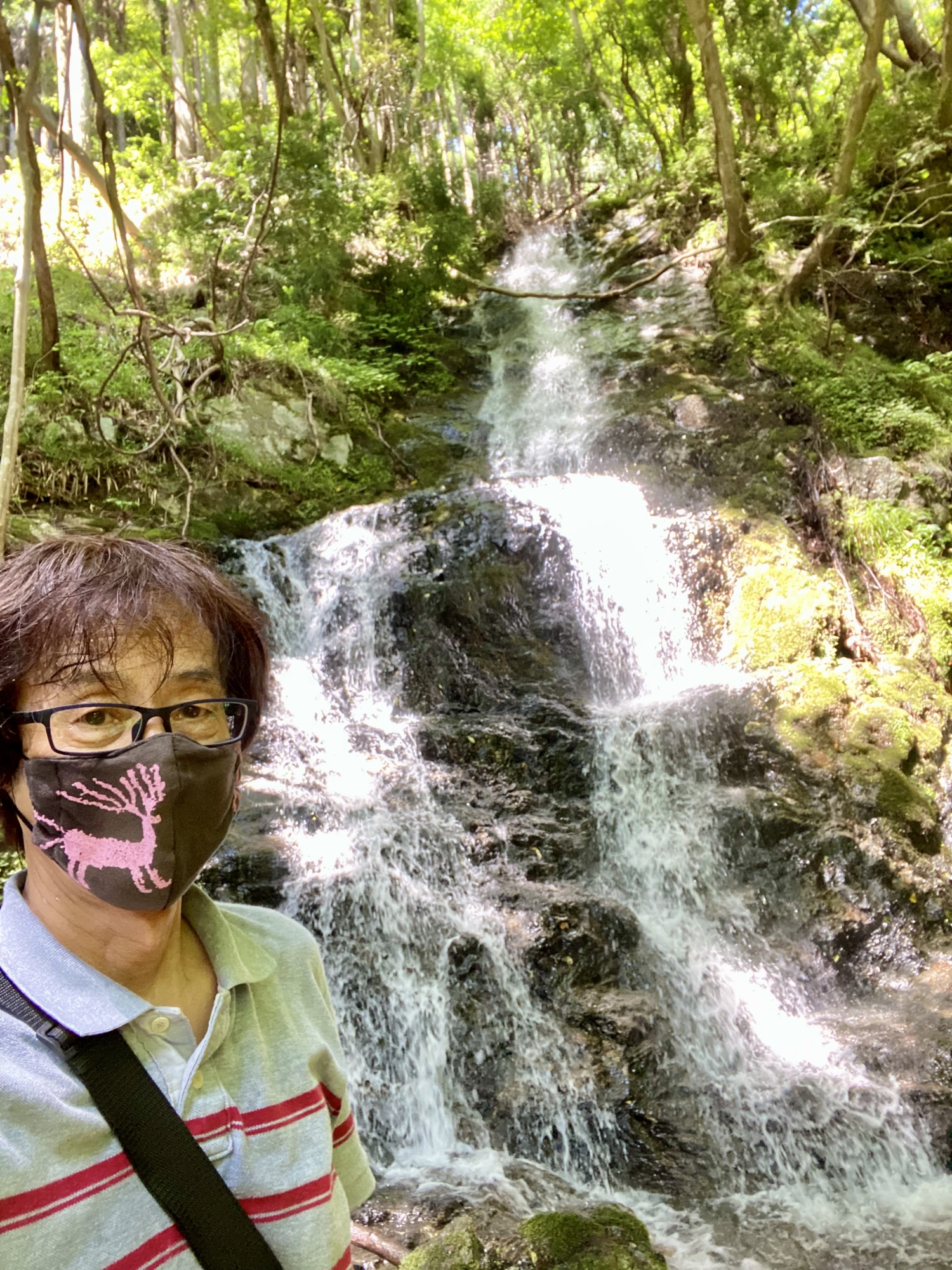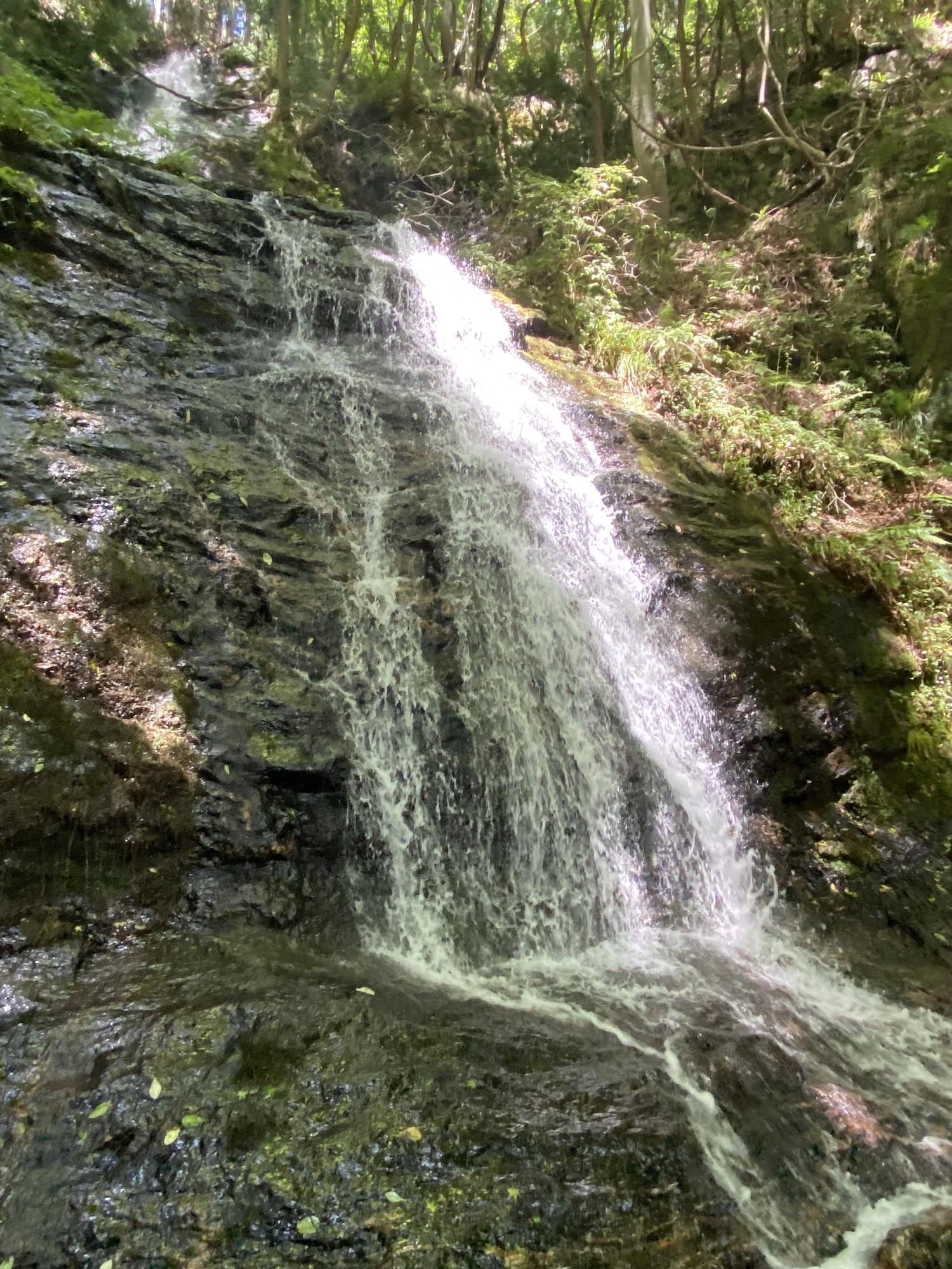 まずは、三段目、そこから二段目の滝壺が見えるところまで、斜面を無理やり登ってみました。