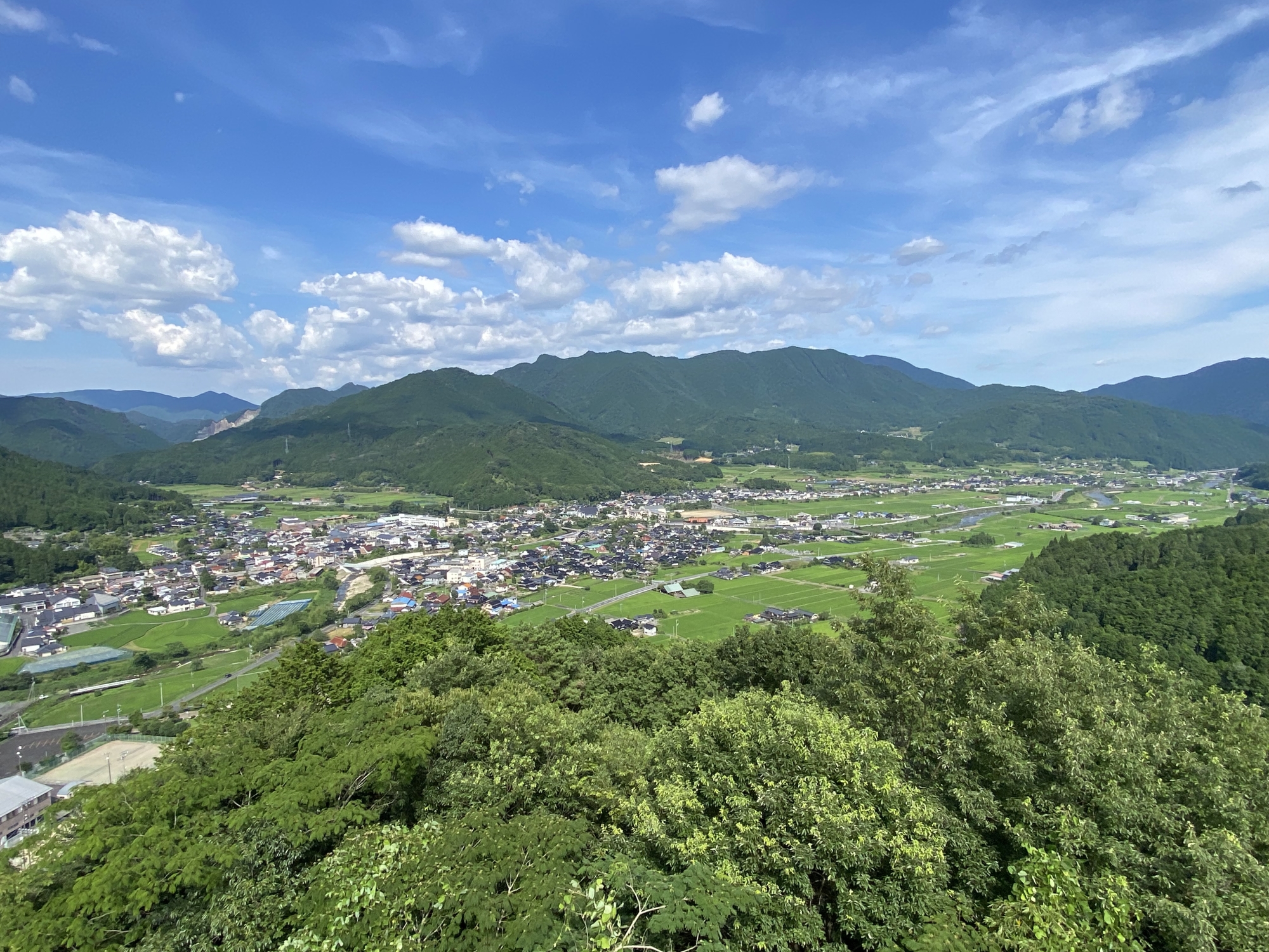 旧加茂町の盆地が一望、南から北へ・・・そして、そうか、ここが平井先生の平井病院(先輩の所です)。