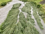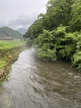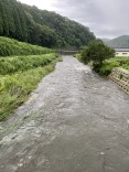 さて・・やはり水量は多くって、いつもなら石伝いで渡れる新庄川も。