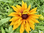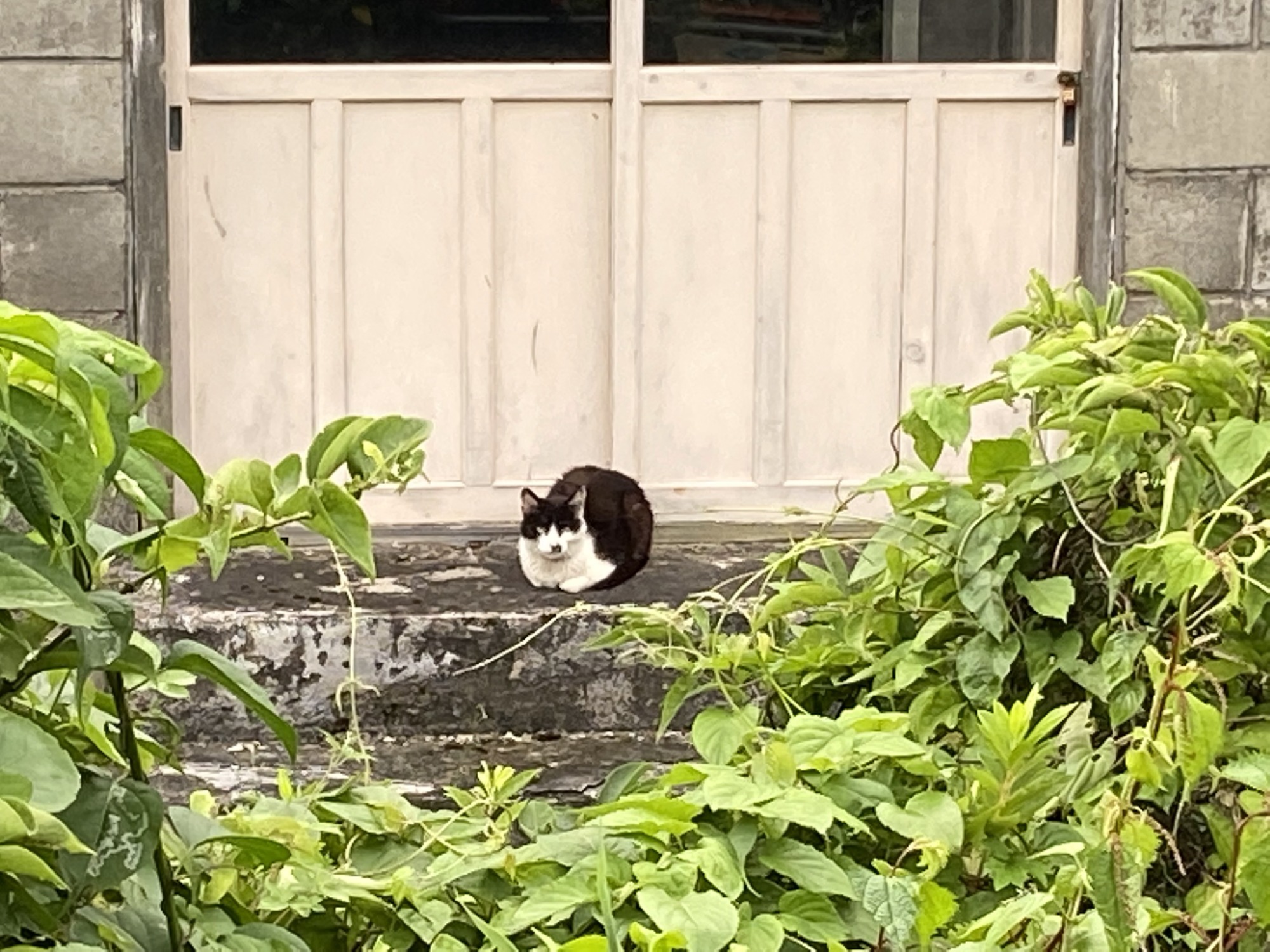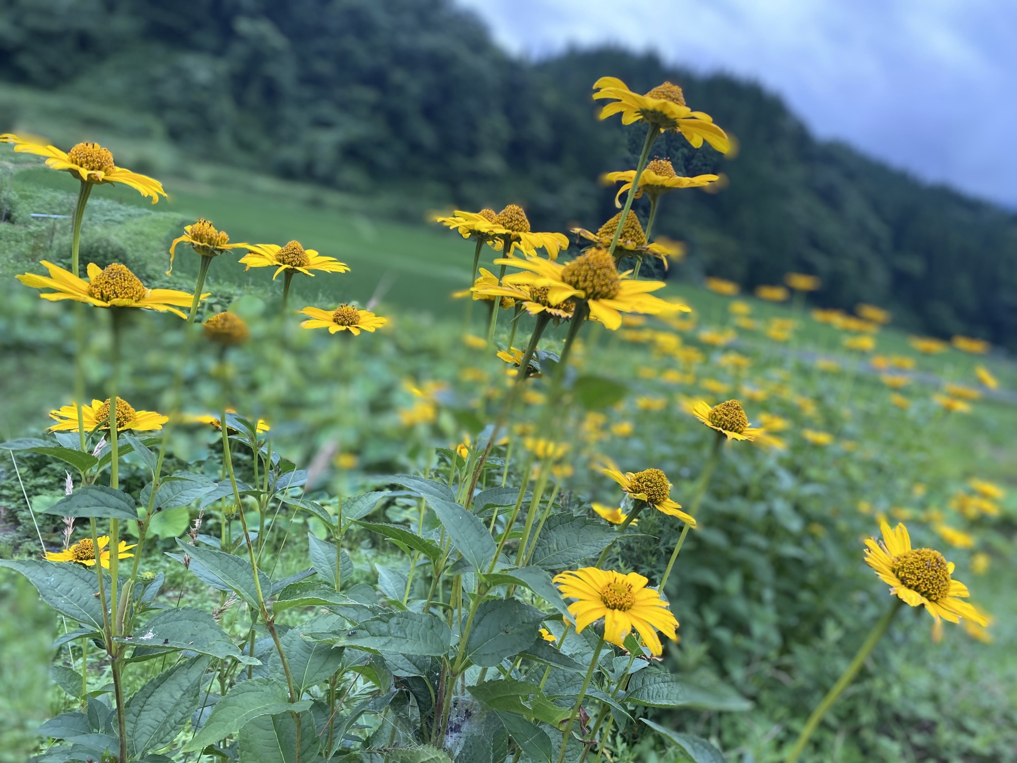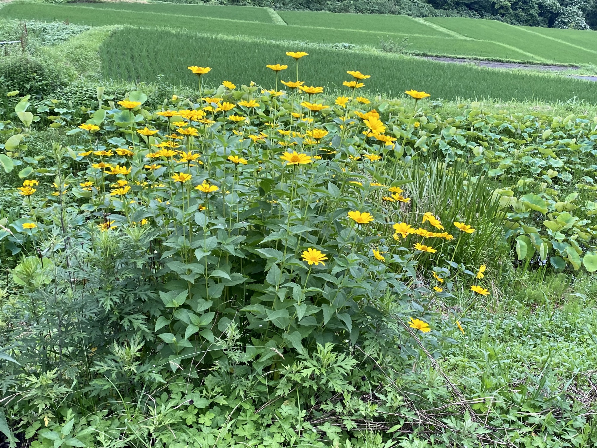 4日:朝、地区の方が、前庭の草取りなどをしてくださいました。植えて頂いたかぼちゃも、そして隠れていた花も。