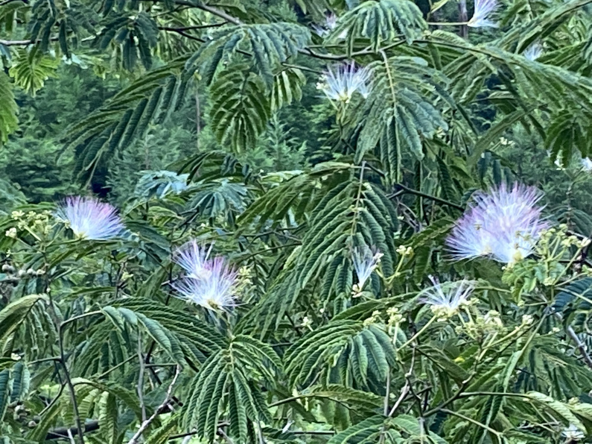 花もたくさん~そう、さっきの御鴨神社の向かい側・・・合流した野土路川が新庄川と合流したところに・・・道路脇に合歓