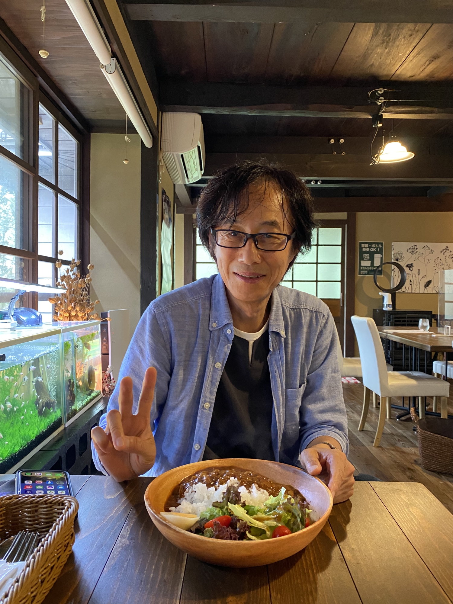 で、結局、中国勝山まできて・・・開いているお店が少なく・・「ろまん亭」さんで・・がっつりランチ!(ボクは蒜山の豆カレー、daughterはハンバーグでした)。