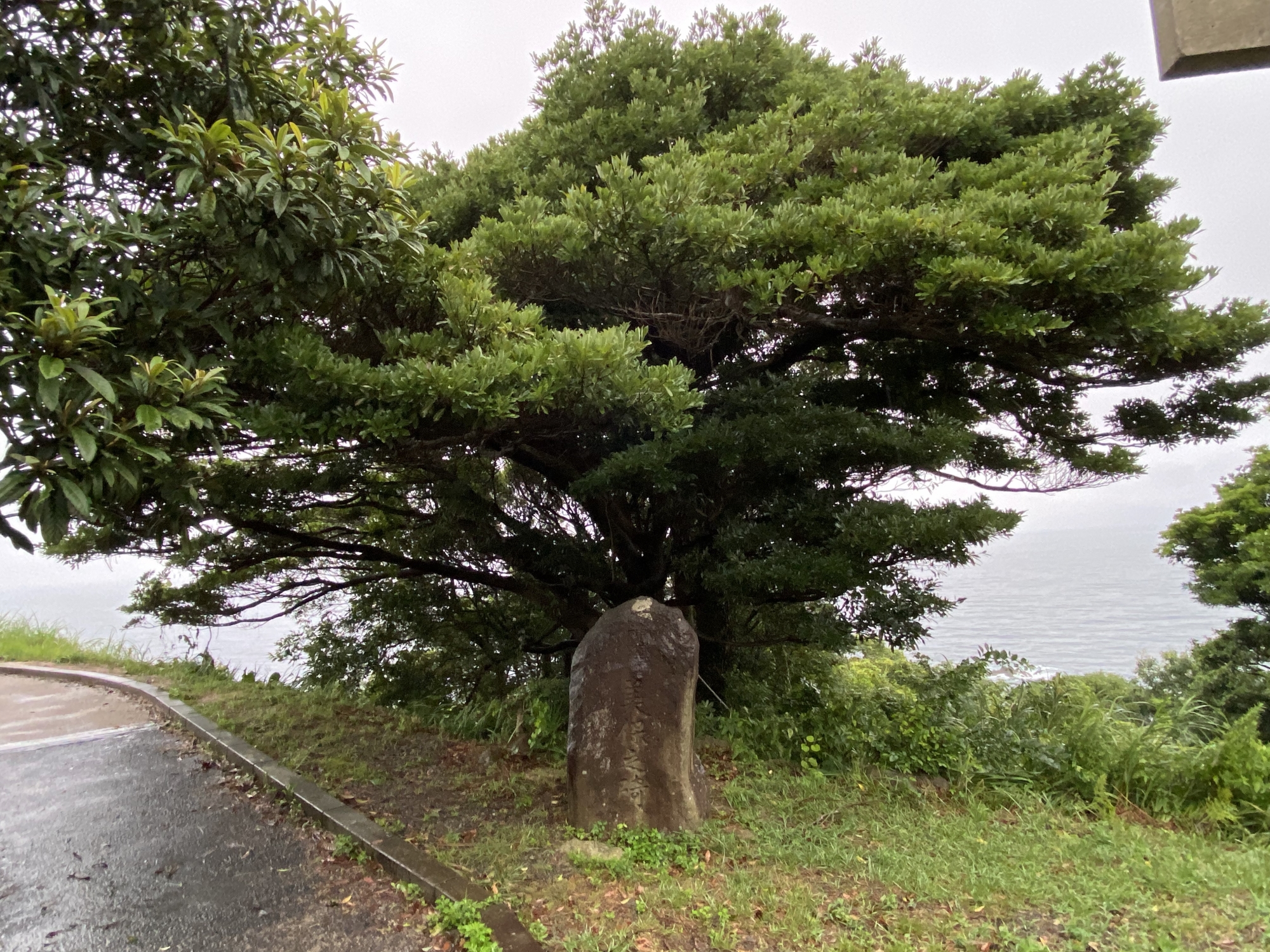 木の形で、風向きが・・ってか、海から吹かれまくっています。