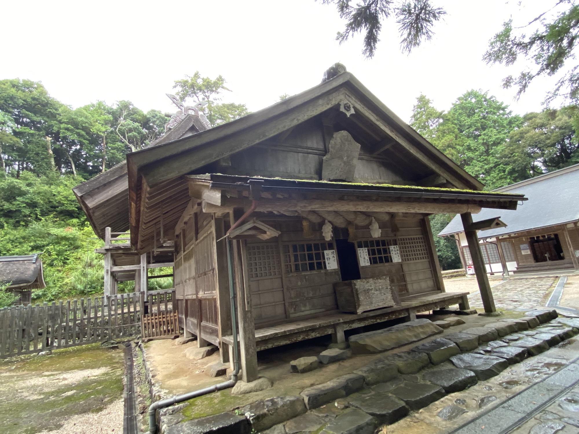 【神魂神社(かもすじんじゃ)は、島根県松江市大庭町にある神社である。旧社格は県社で、意宇六社の一社。本殿は現存する日本最古の大社造りで国宝。】