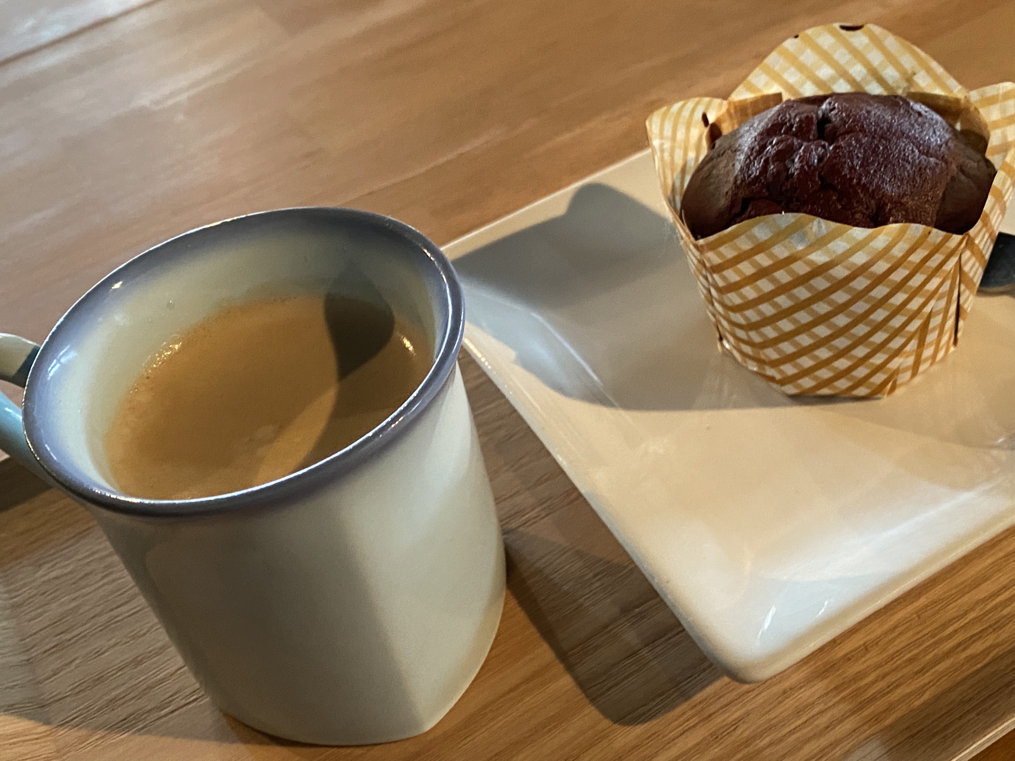 その後、昼散歩で、あめつちごはんさんで、珈琲とココアマフィン