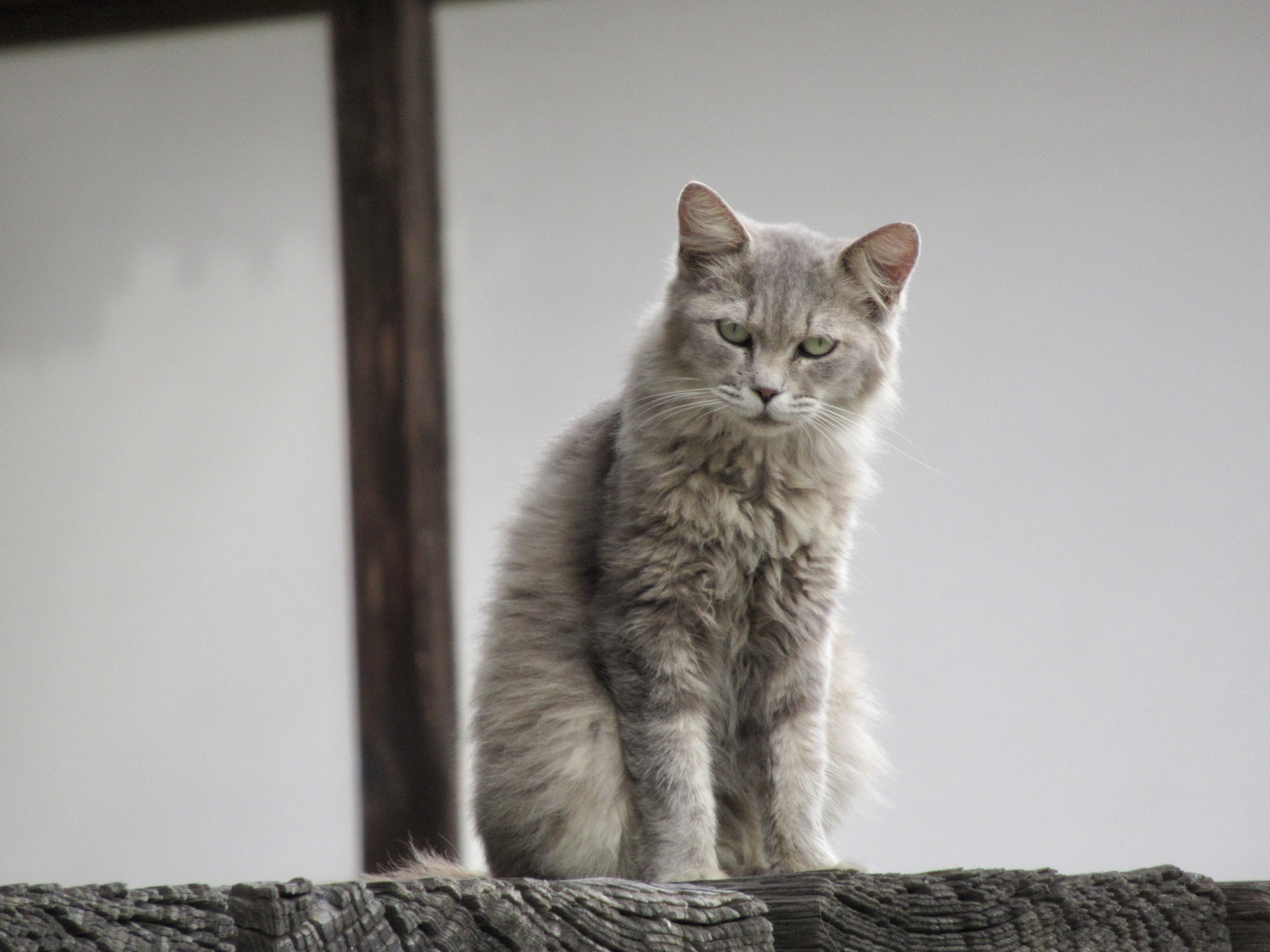 お線香と蝋燭をお供えしている所ににゃんこ。