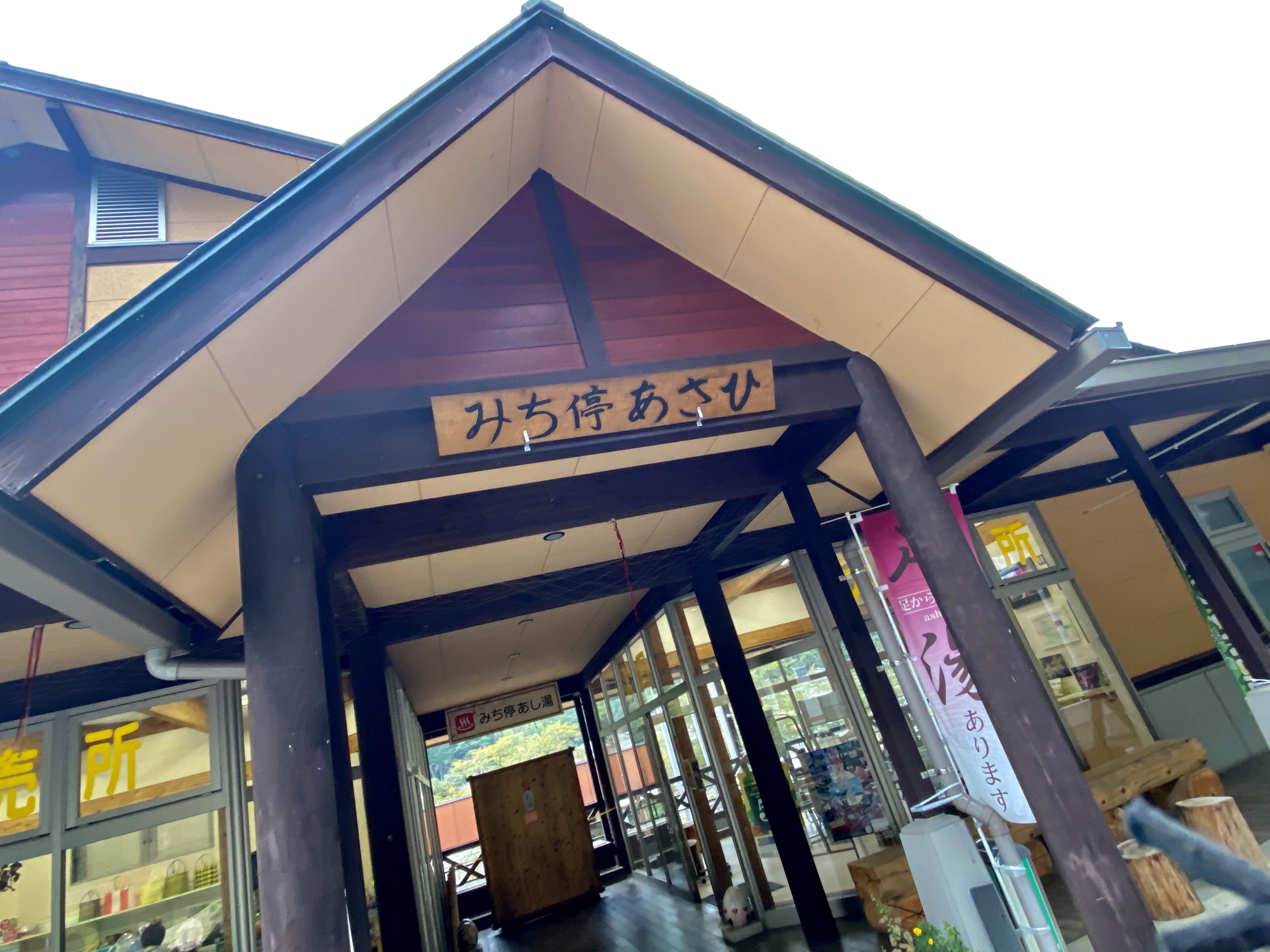 Uターンでなく、旭川沿い/旭川ダム沿いで・・・旧旭町(現・美咲町)の・・・みち停あさひ・・足湯は・・閉まっていました。