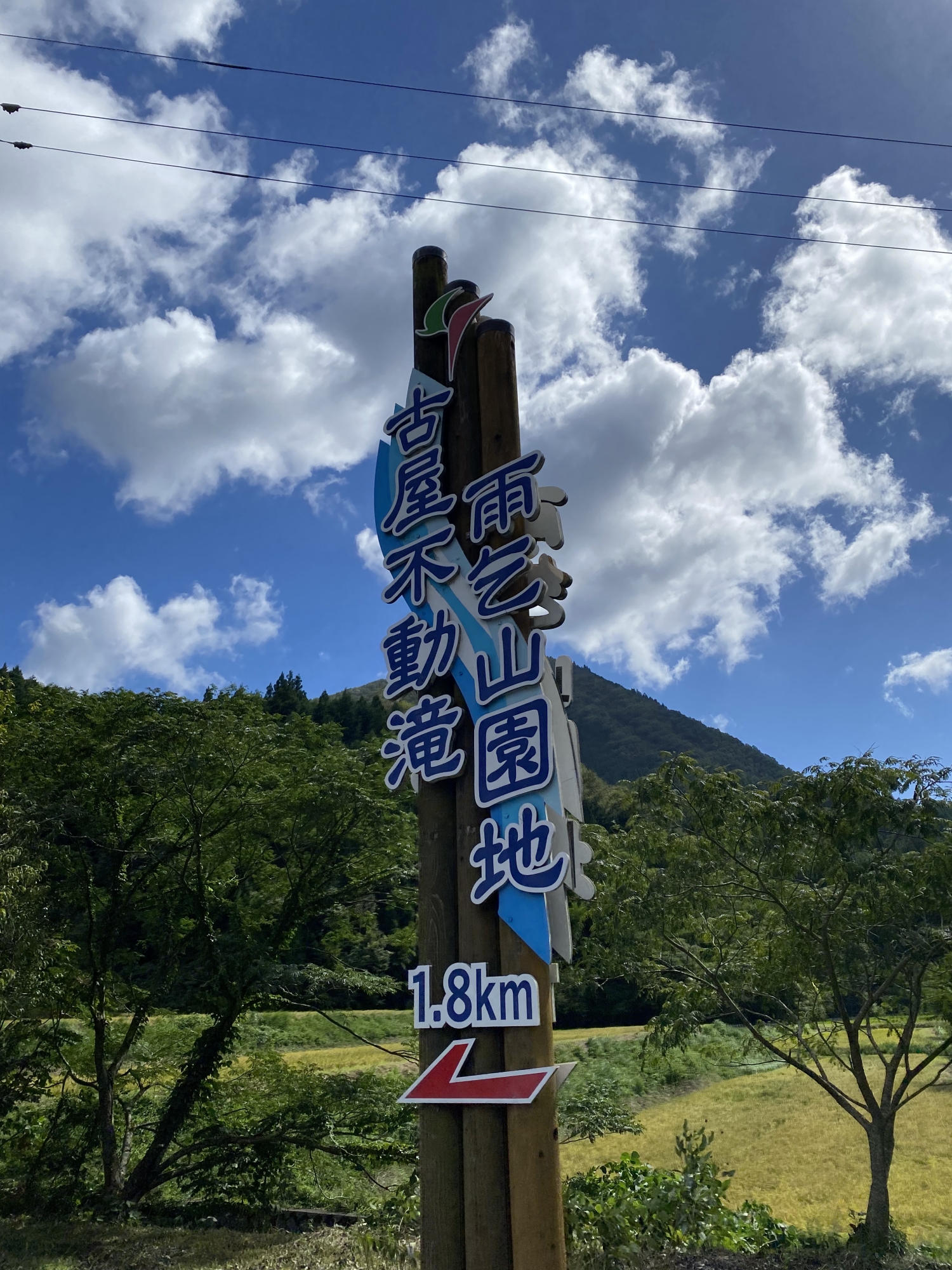 この後、ガソリンを入れて、倉吉に向かっていたら、なんとも好天!! そして、道端に「古屋不動滝」・・・この天候なら、歩こうって国道313から片道2kmくらいそうなので・・・GO
