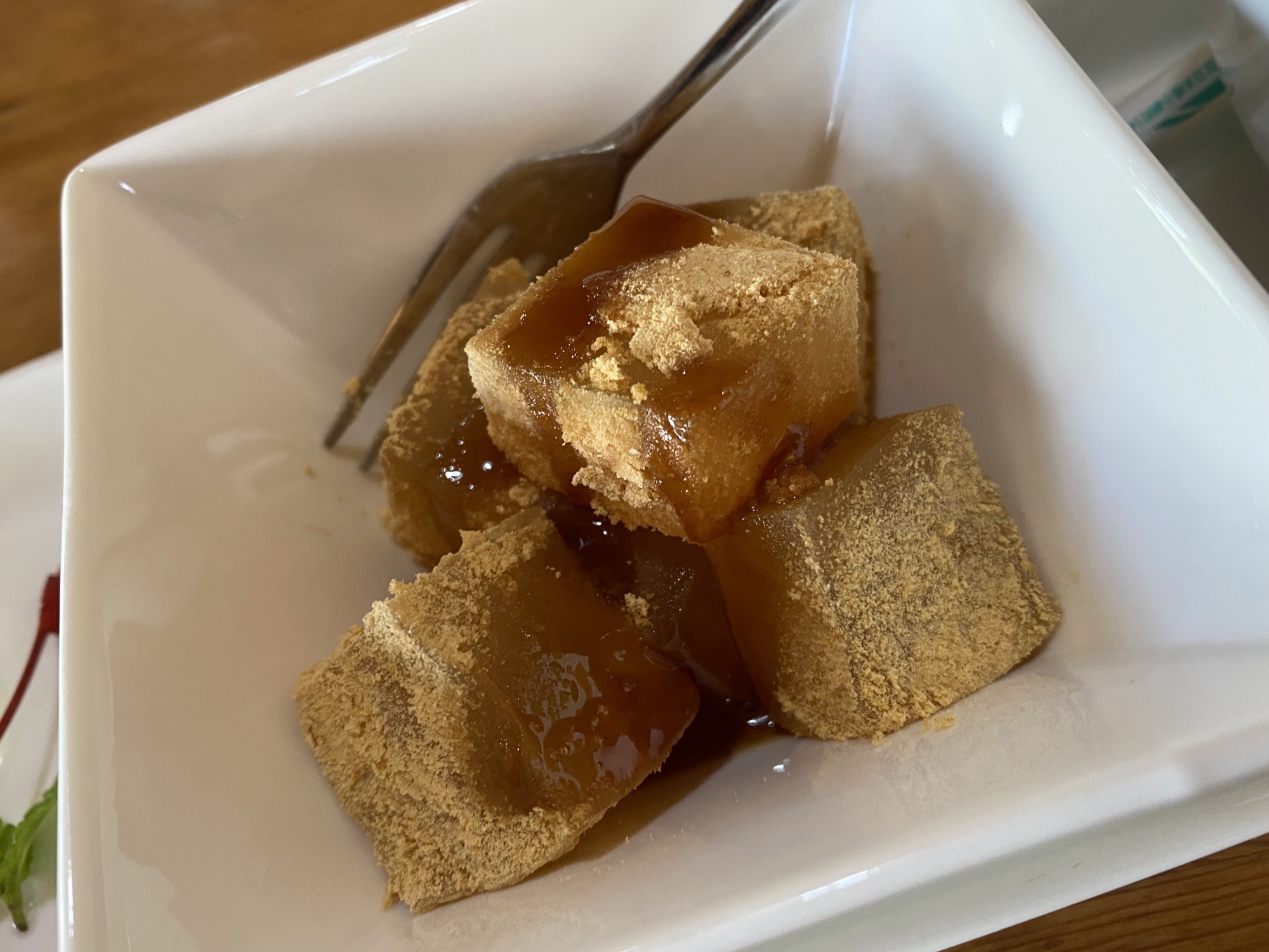 さて、今日は、新見美術館に行くつもりで・・・経路なので Cafe & Live MUSIKさんで、わらび餅セット