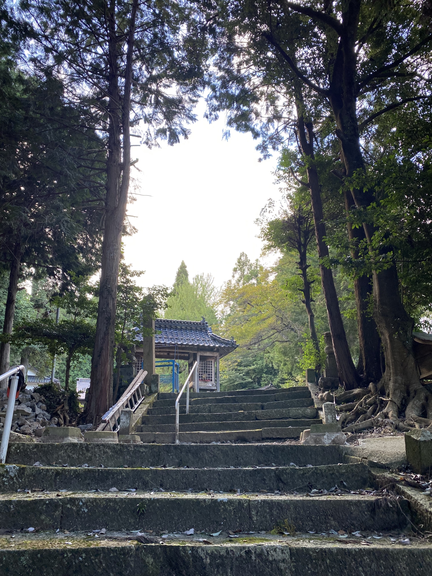 【由緒:正和2年(1313年)2月4日に、駿河国(静岡県)から上熊谷土居へ勧請し、貞和元年(1345年)に現社地である寺本(山の中腹辺り)へ奉還したと伝える。】