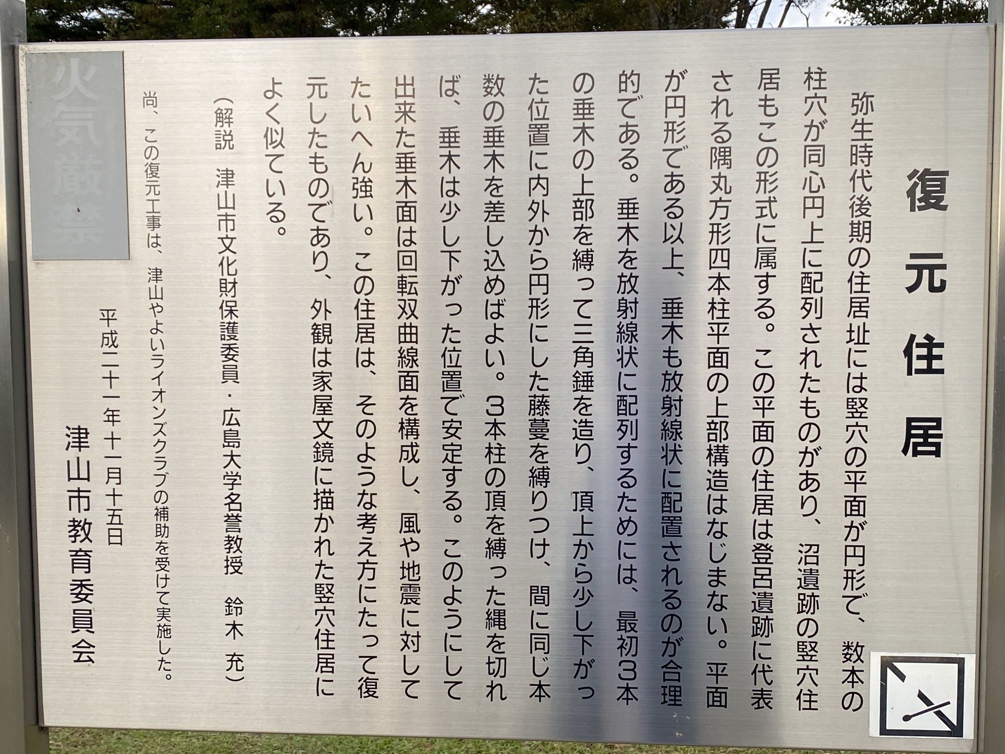 さて、車の所用を終えて・・・検索してみると、津山の中に弥生式住居の跡が・・