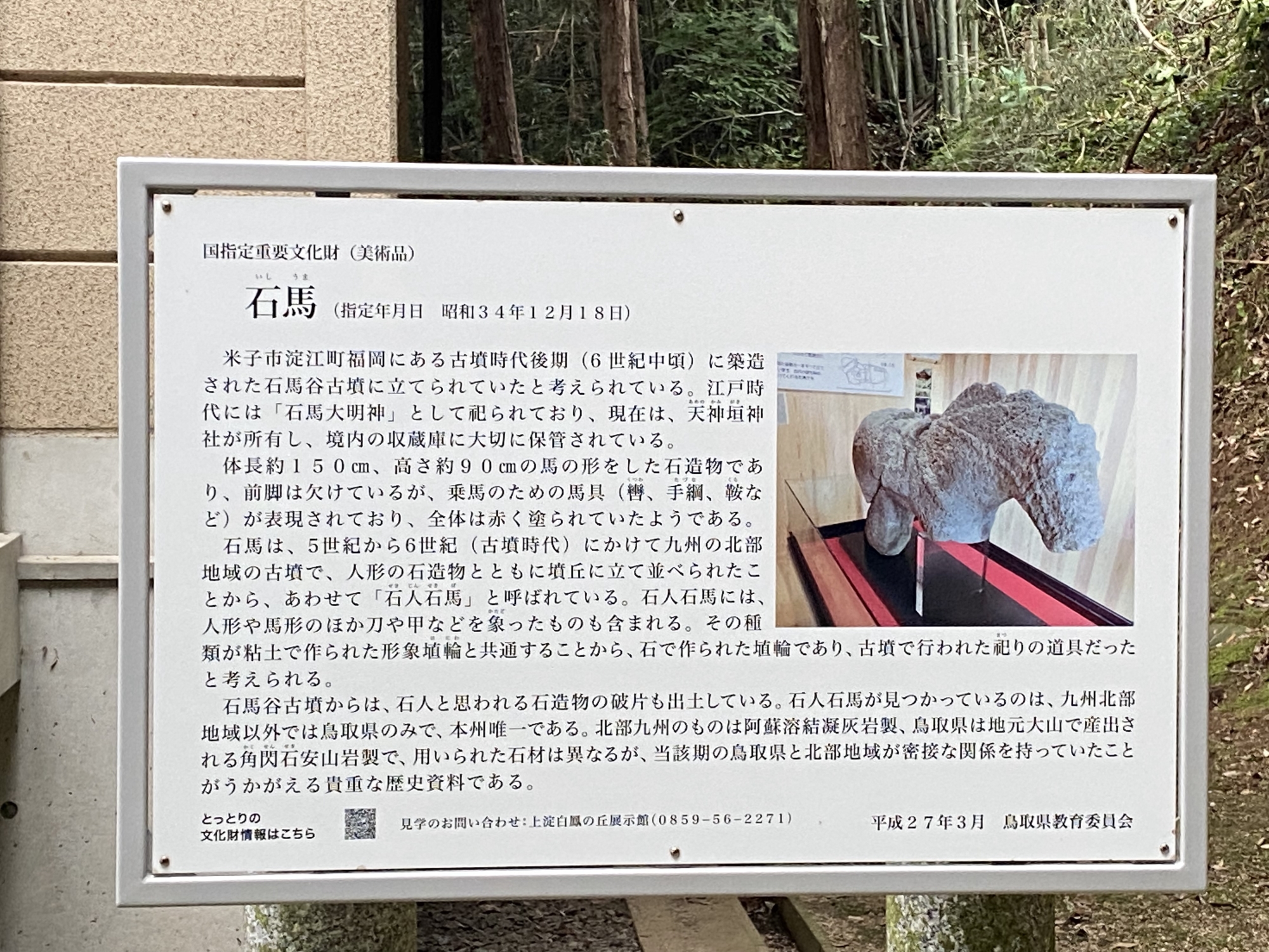 【この石馬が実は山陰~九州間の地域間交流がうかがえる全国でも2例という貴重な文化財であることがわかり、現在は神社に収蔵されています。】