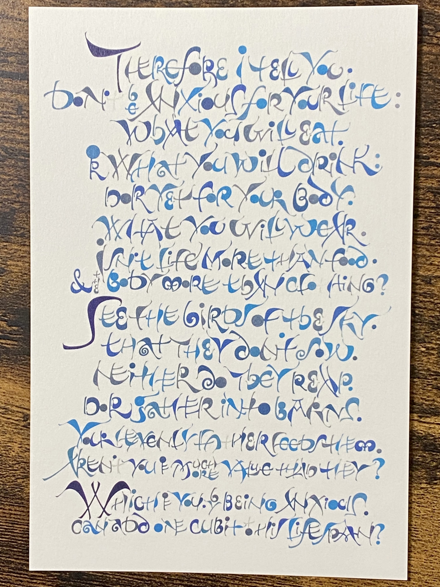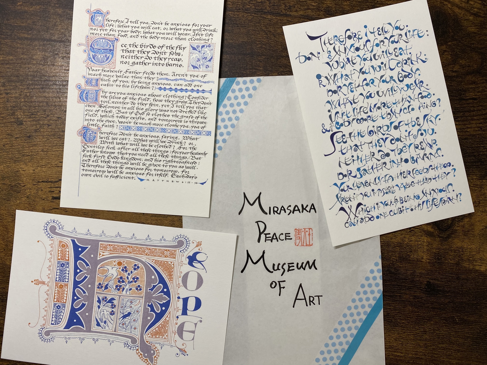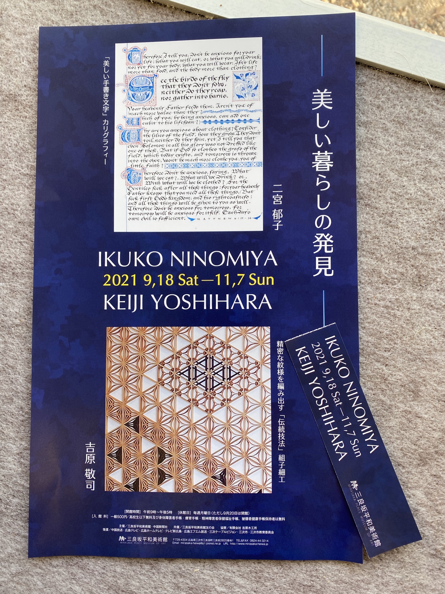 展示は、写真禁止でしたので・・・・二宮郁子氏【17年前にカリグラフィーと出会ってから、その魅力に取り憑かれてしまった二宮さん。世界的に有名なカナダ在住の英国人カリグラファー、マーティン・ジャクソン氏(ローマ法王からのコミッションの仕事やビル・ゲイツの結婚式のカリグラフィーを担当)に師事し、現在も試行錯誤を繰り返しながら、独自の表現を追求しています。】