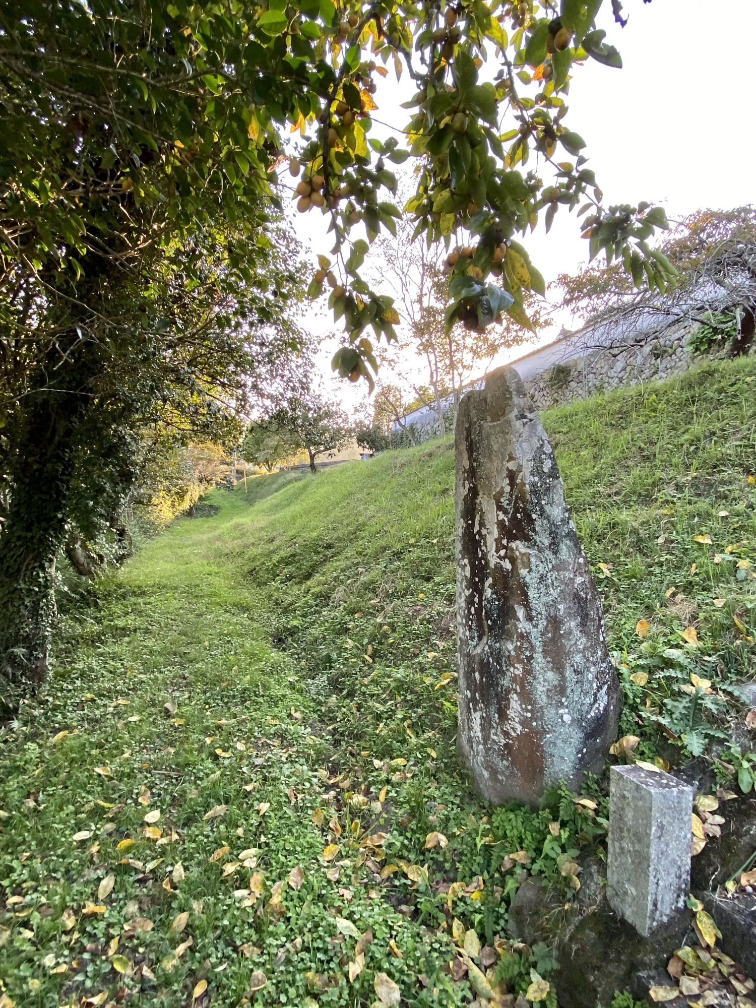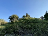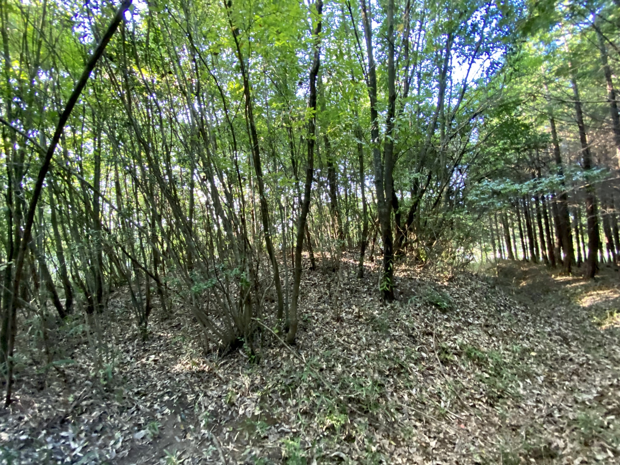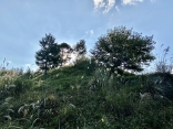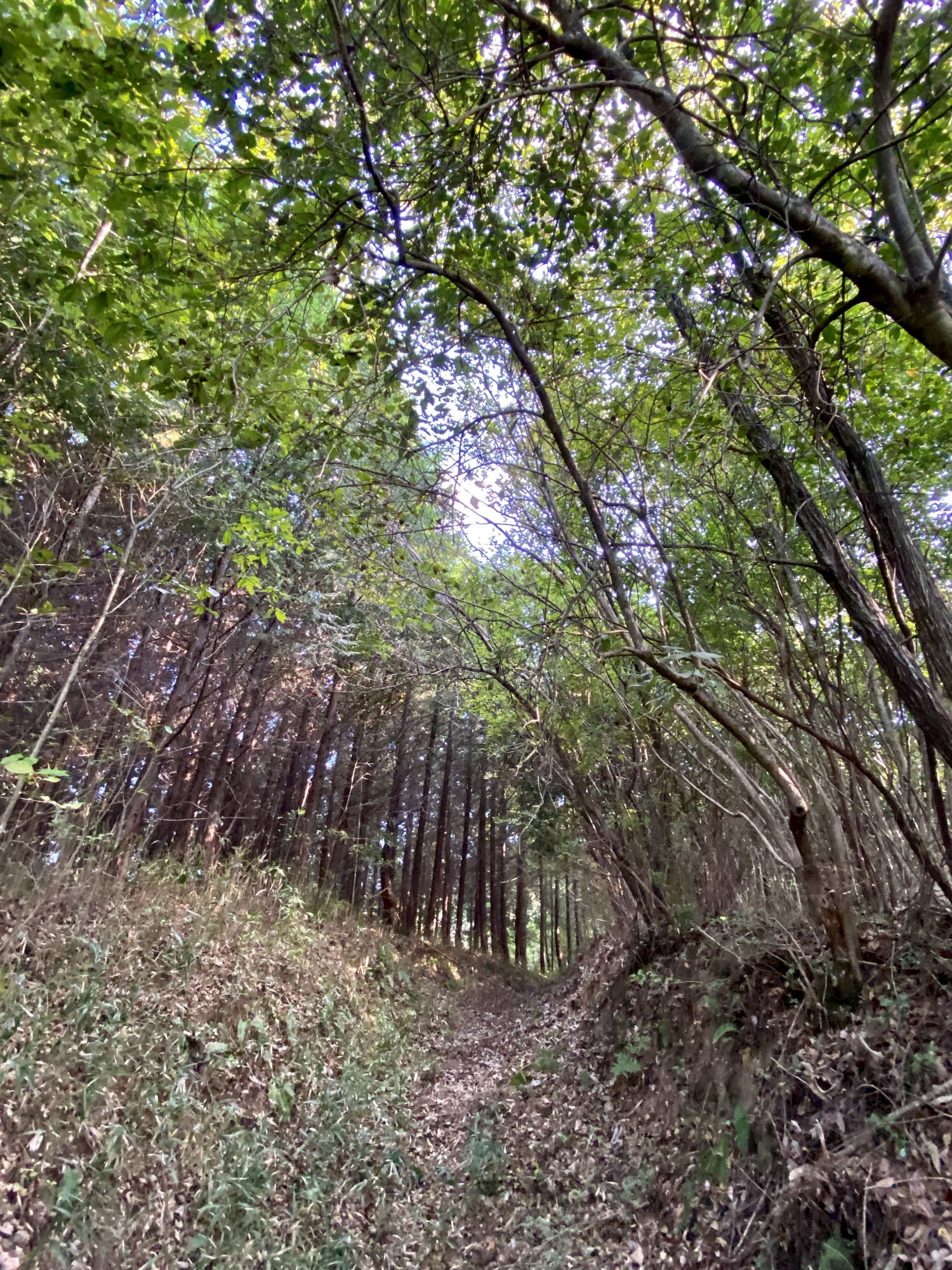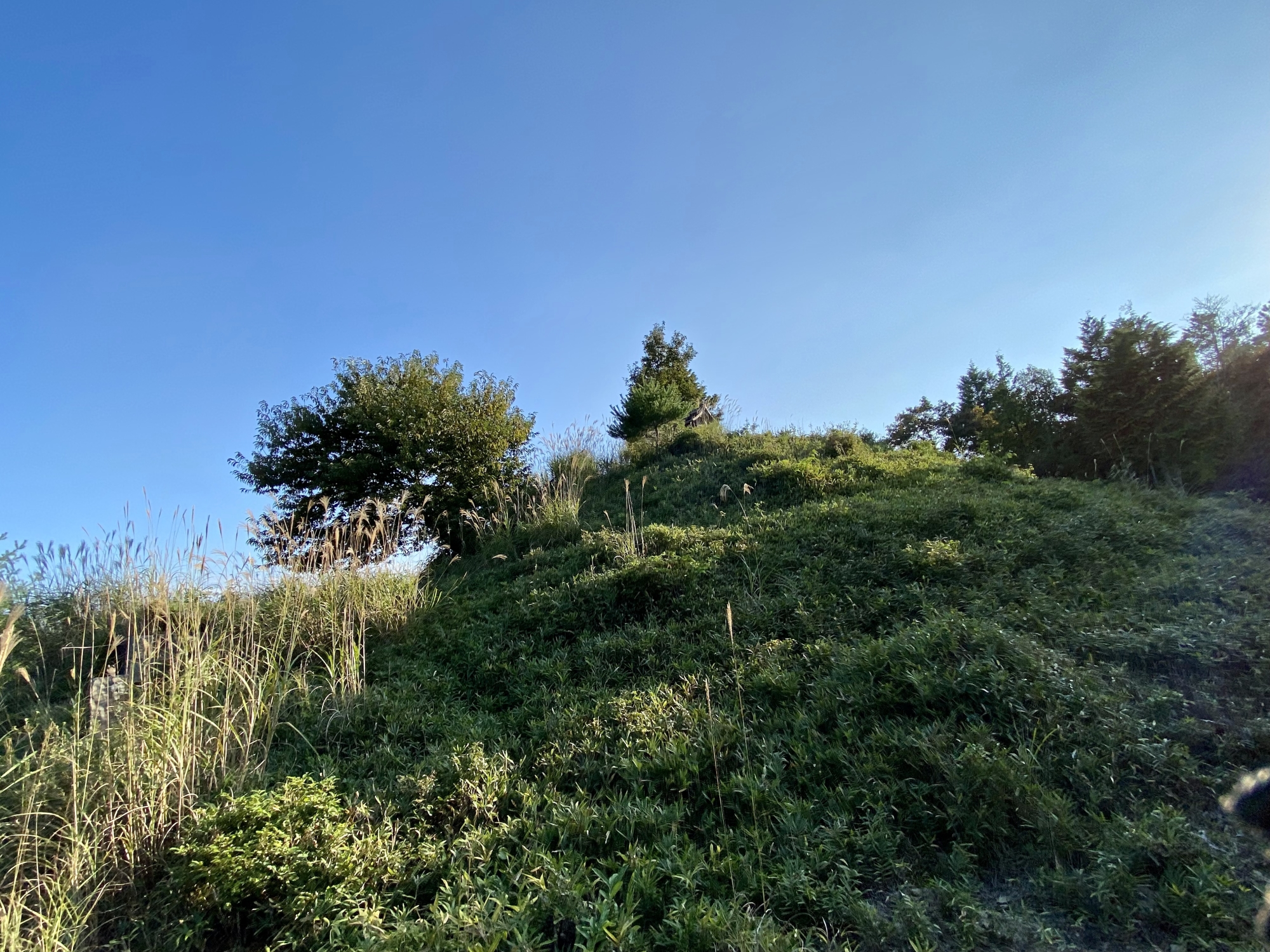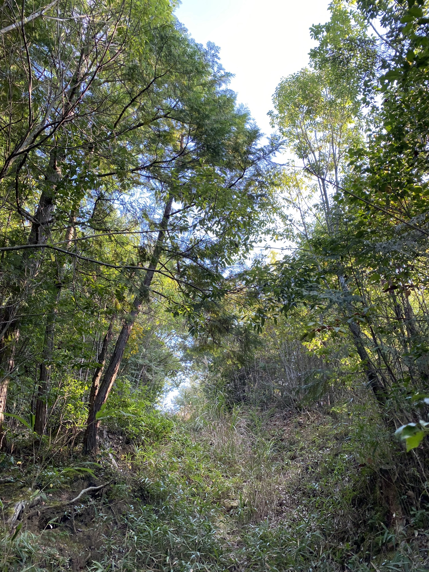 ここなんですが、木間越しに、どうも、少し登れば、道がありそうなので・・草を分け入ってみると、一応の道はありました。~横にも少し盛り上がりが。