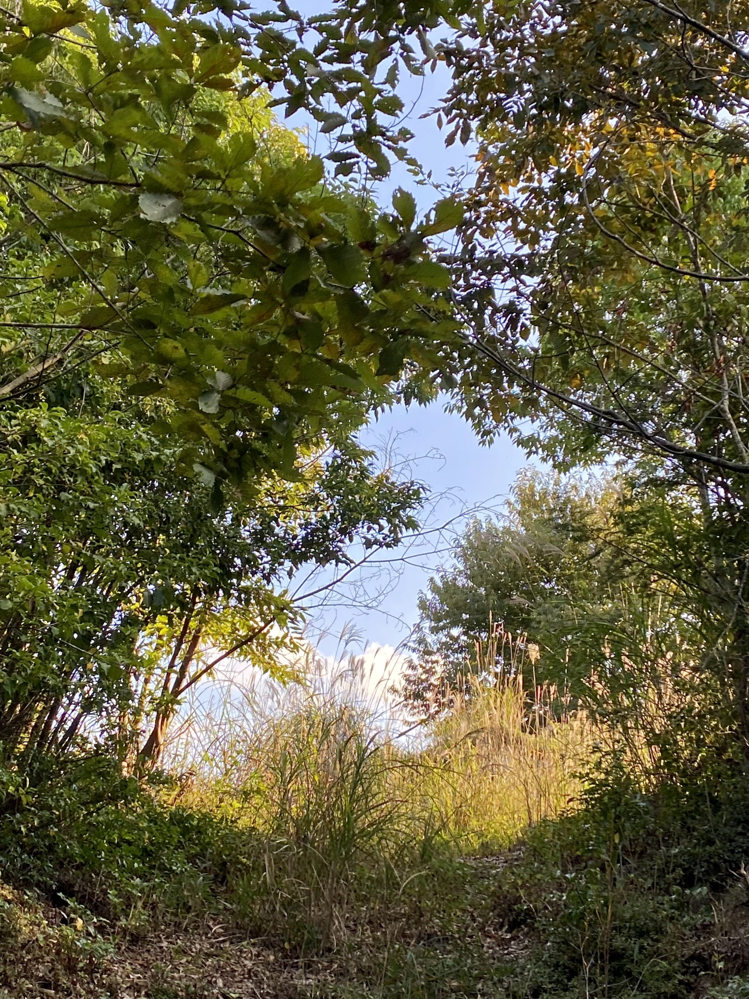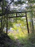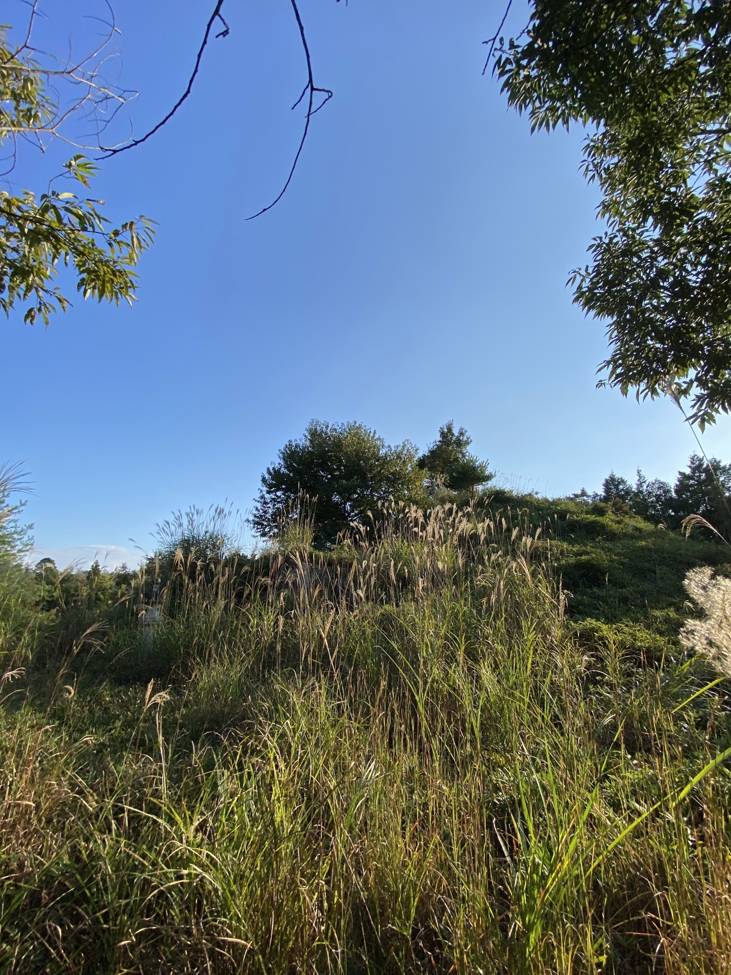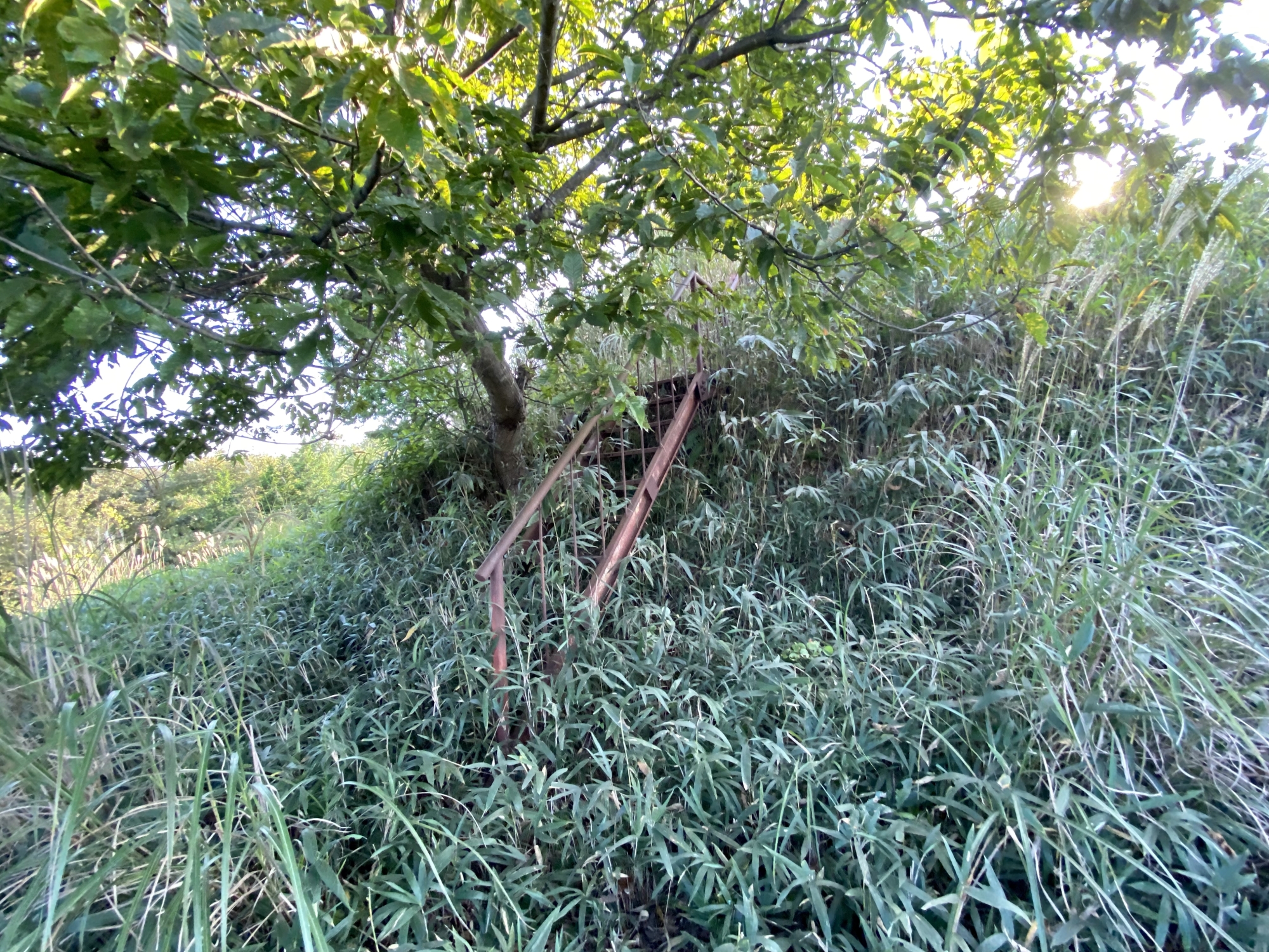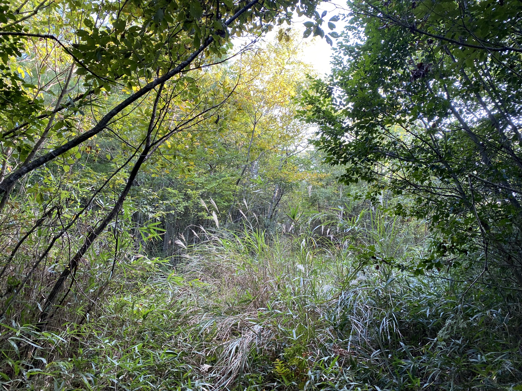 ここなんですが、木間越しに、どうも、少し登れば、道がありそうなので・・草を分け入ってみると、一応の道はありました。~横にも少し盛り上がりが。
