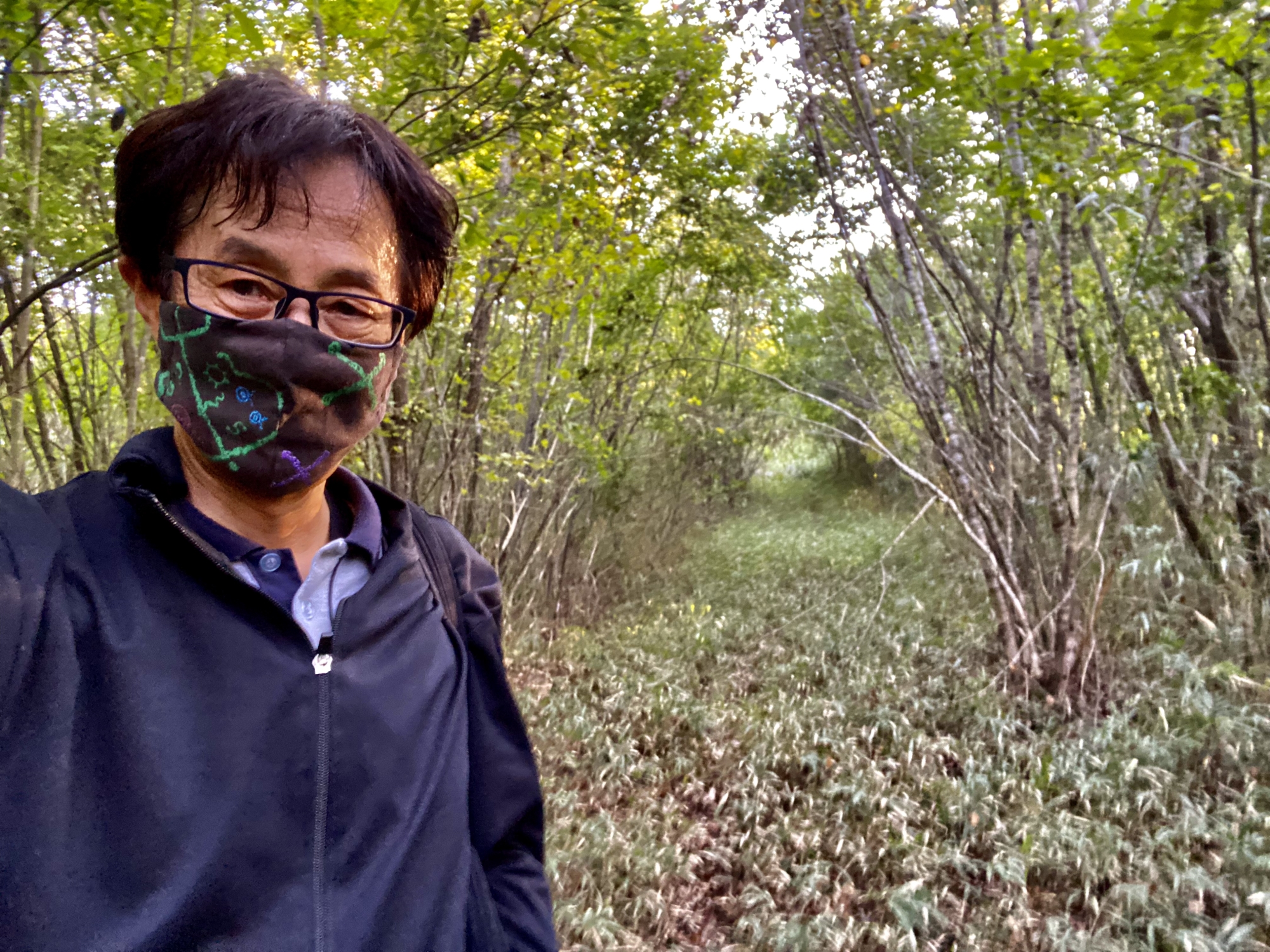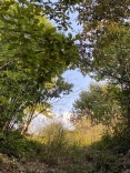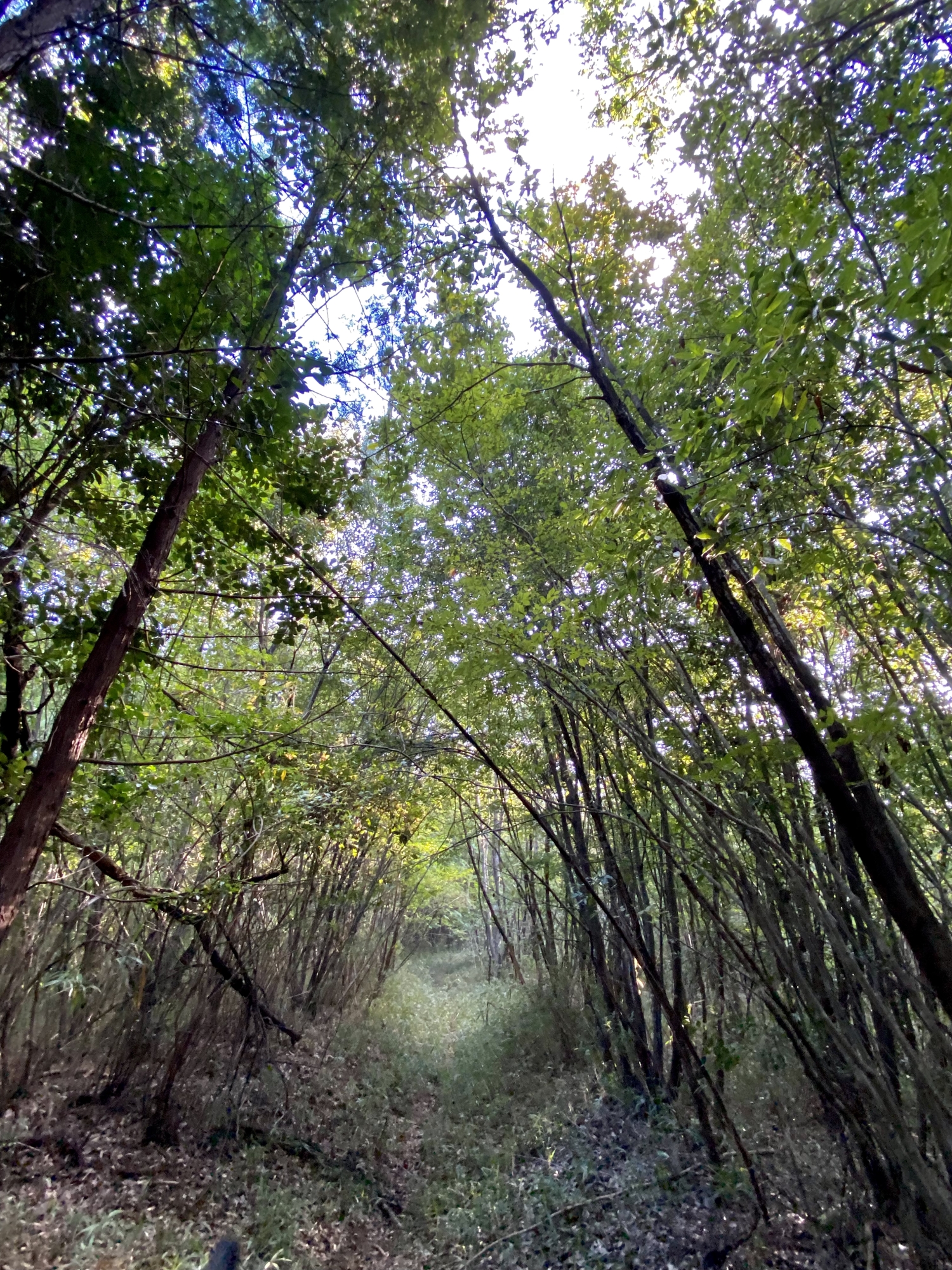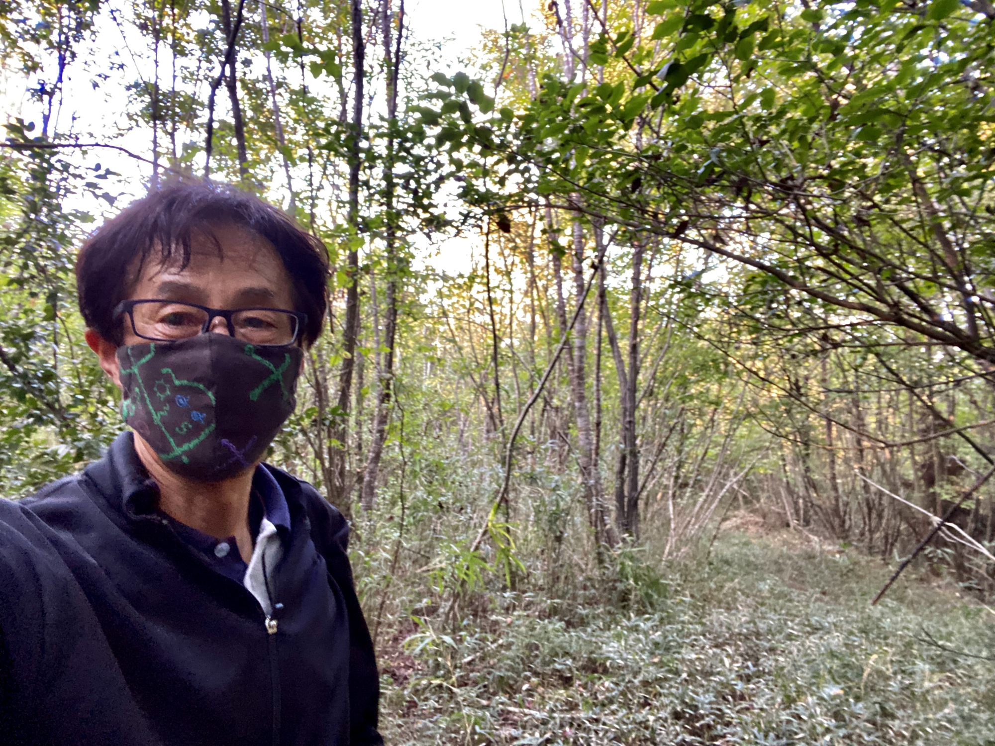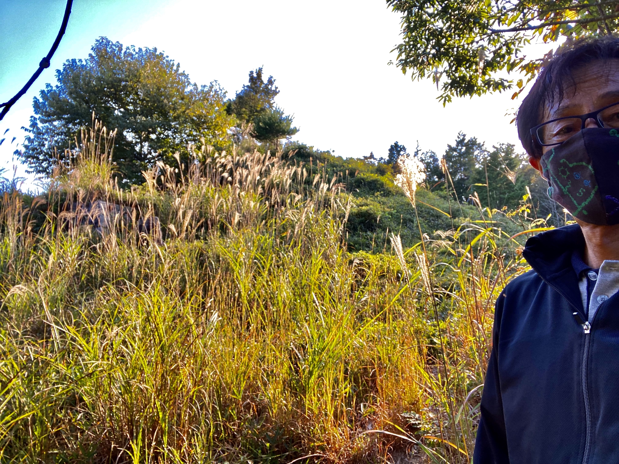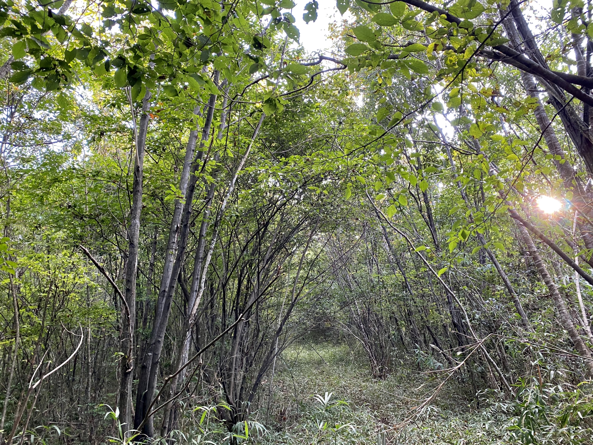 ここなんですが、木間越しに、どうも、少し登れば、道がありそうなので・・草を分け入ってみると、一応の道はありました。~横にも少し盛り上がりが。