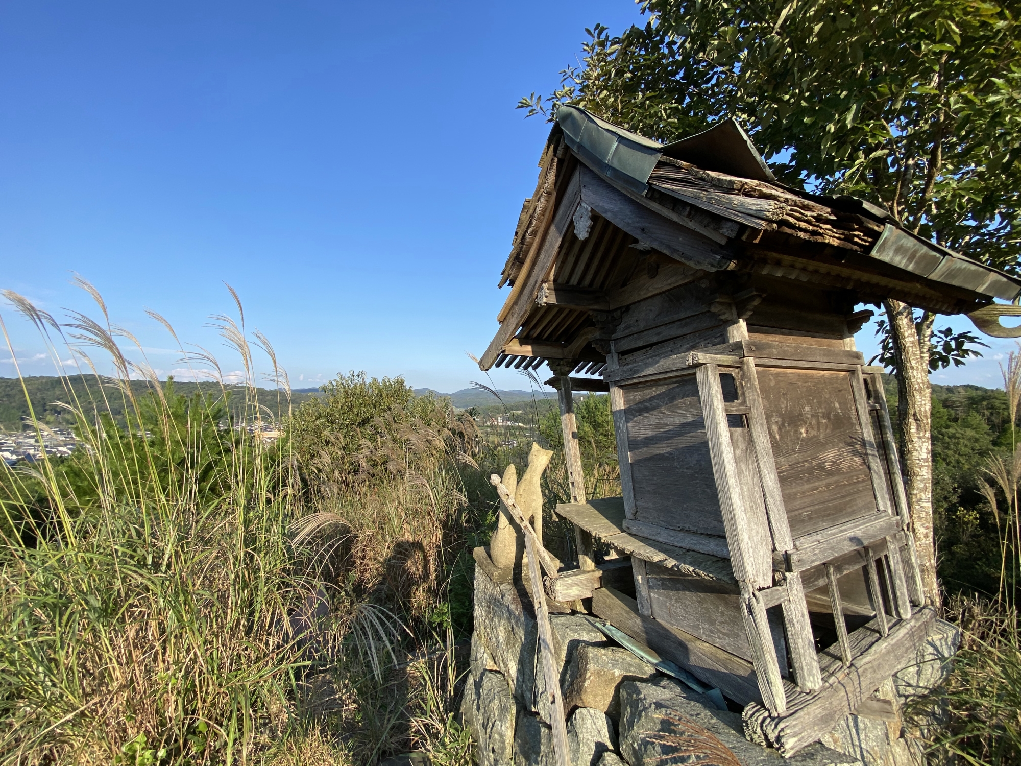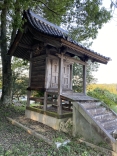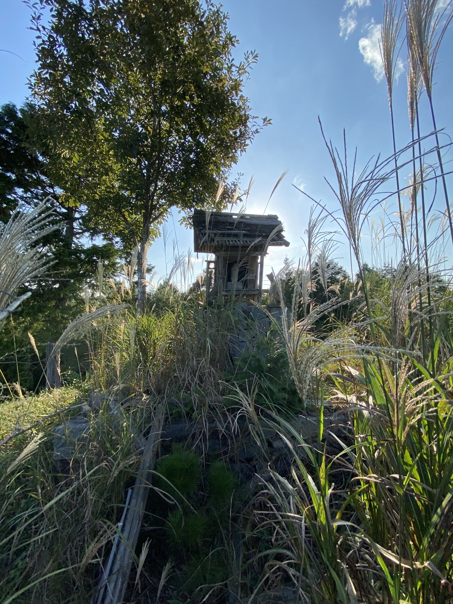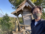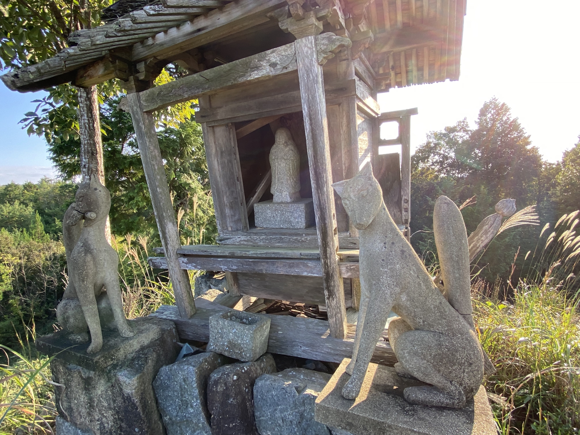 足をかけたら、そのまま、折れてしまいそうな・・・階段・・端っこに体重をかけて、登ると・・・祠! お稲荷さんですね。