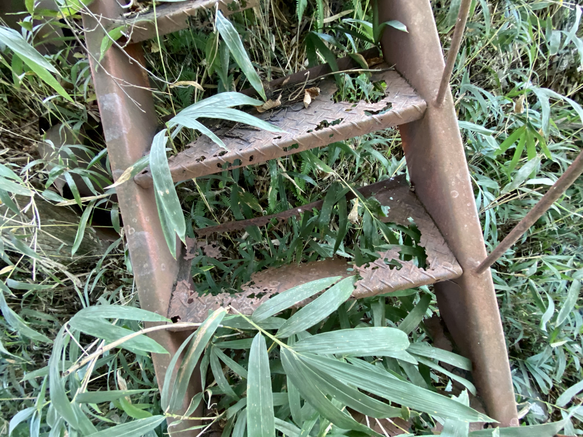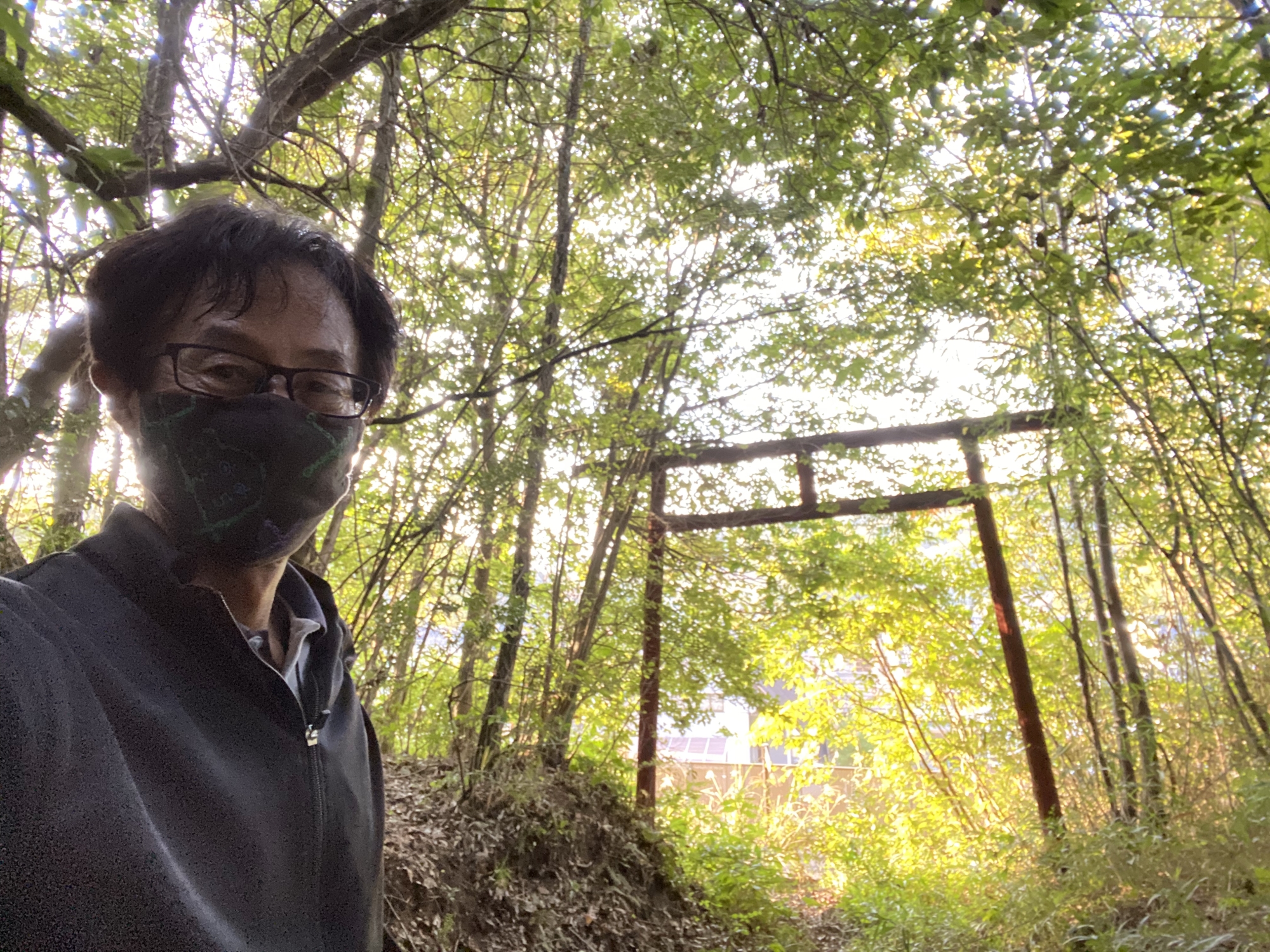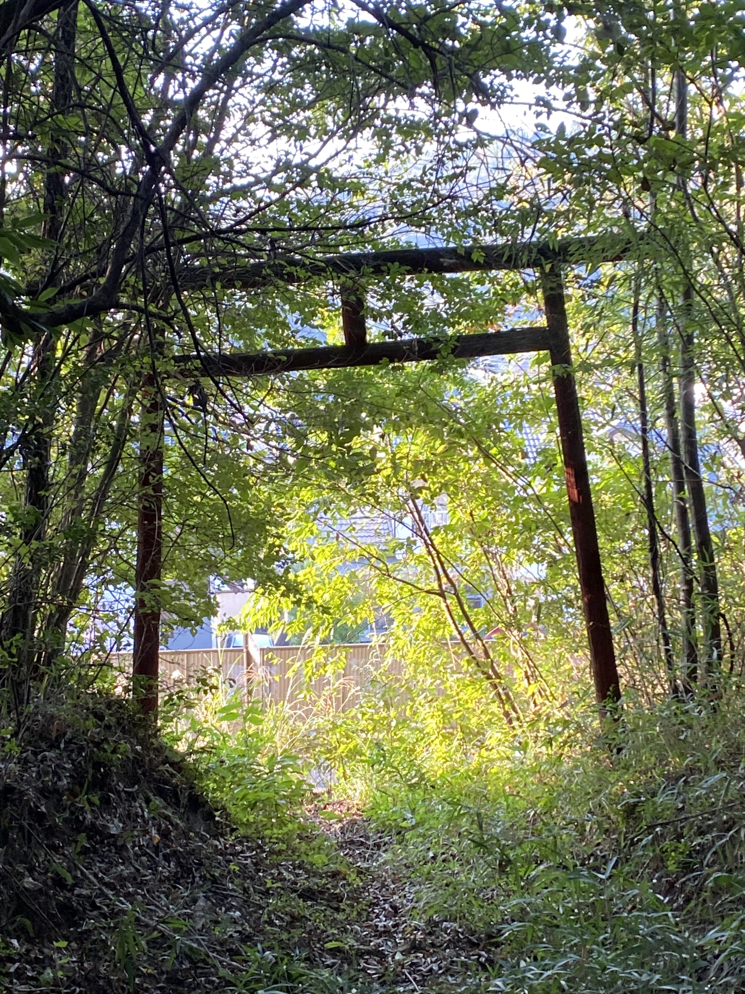 足をかけたら、そのまま、折れてしまいそうな・・・階段・・端っこに体重をかけて、登ると・・・祠! お稲荷さんですね。