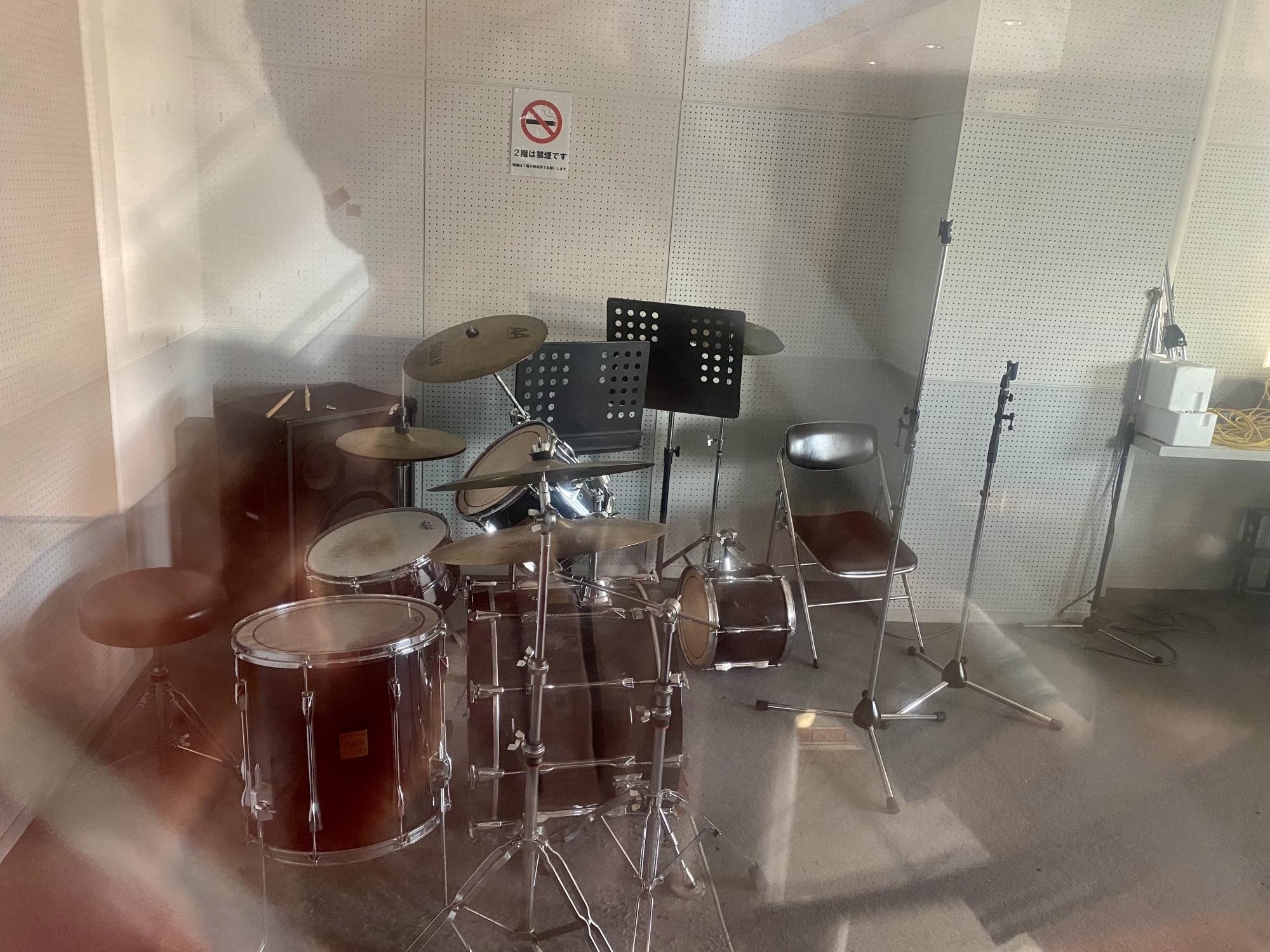 駅舎と一体のホールで・・・音楽室も(中には、ドラムセット)。