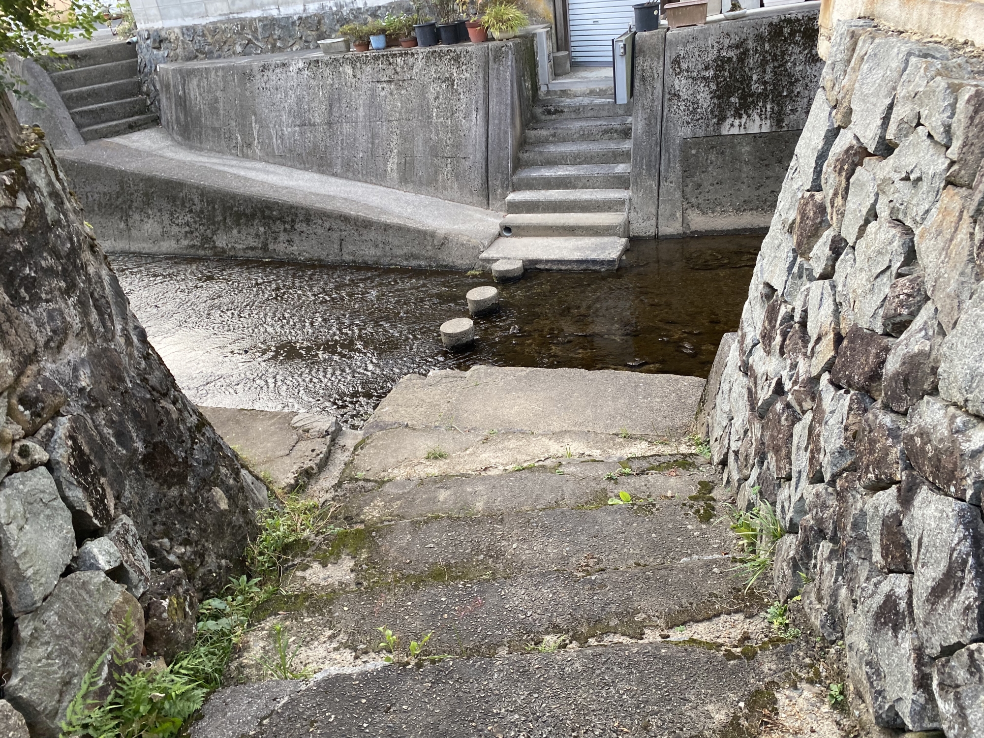 街中を流れる小さな川には、降りれるように、なっていますね。