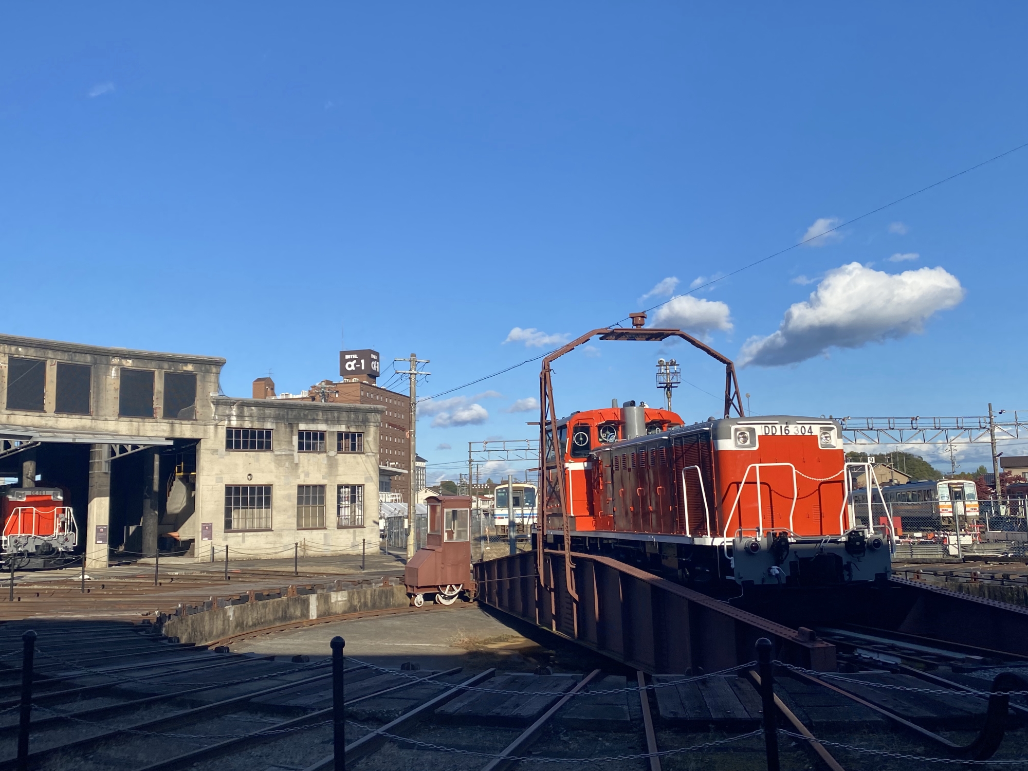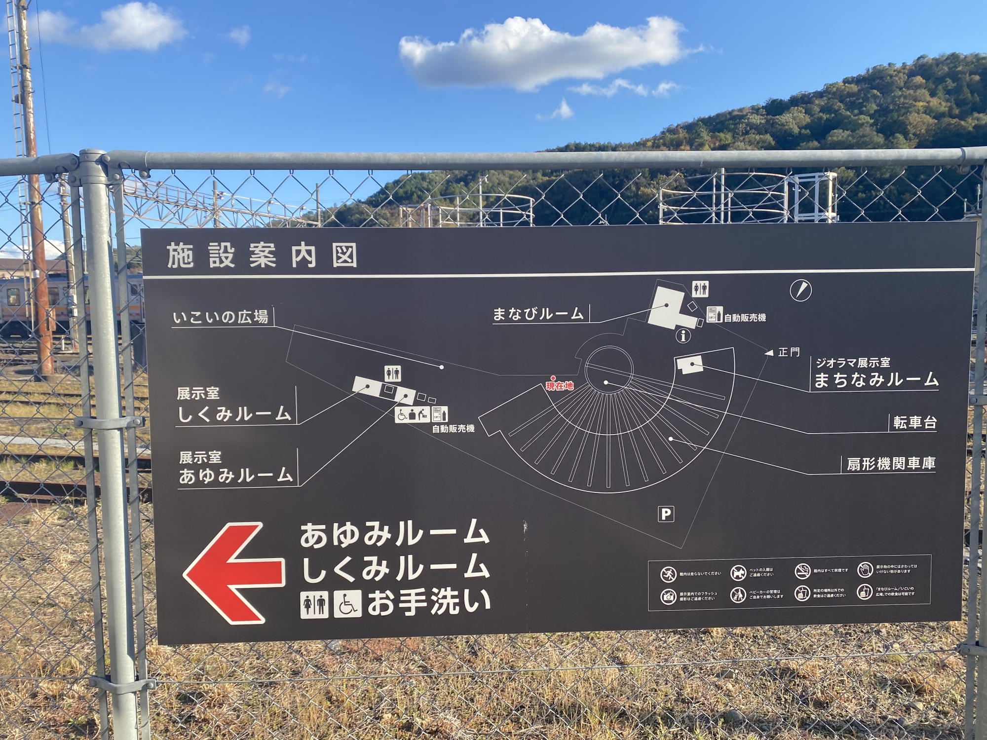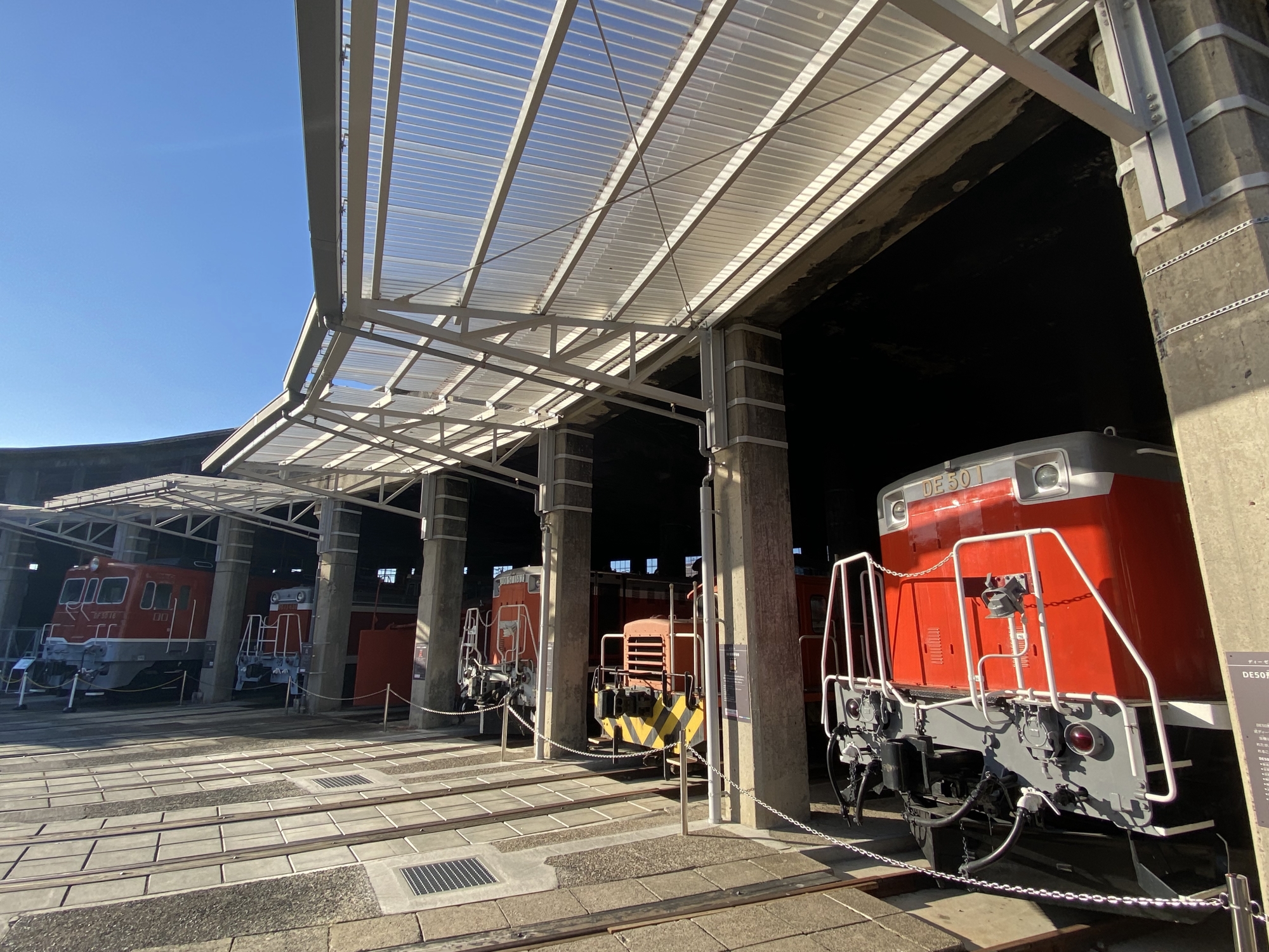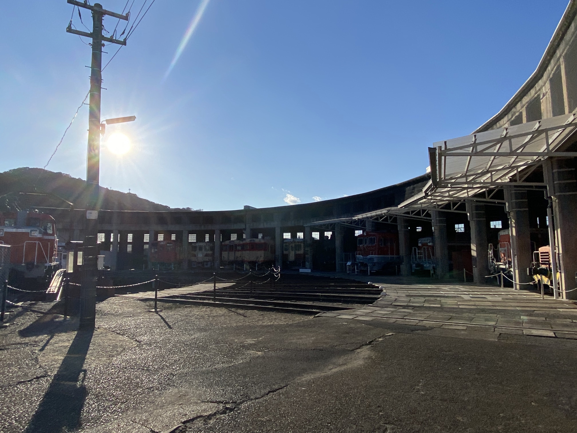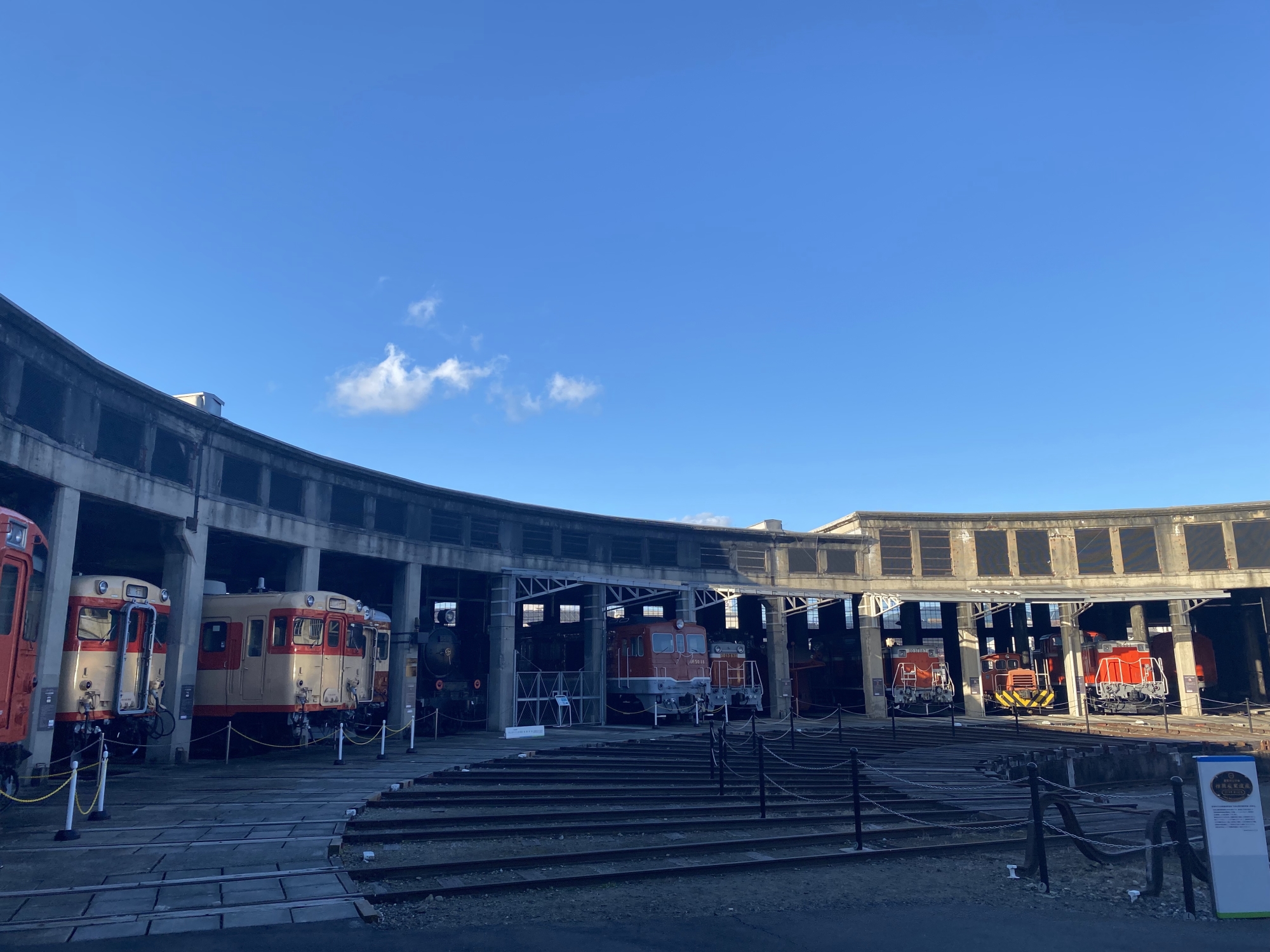 【津山まなびの鉄道館は、国内に現存する扇形機関車庫の中で2番目の規模をほこる「旧津山扇形機関車庫」や収蔵車両を中心とするさまざまな展示と憩いの施設で構成されています。】