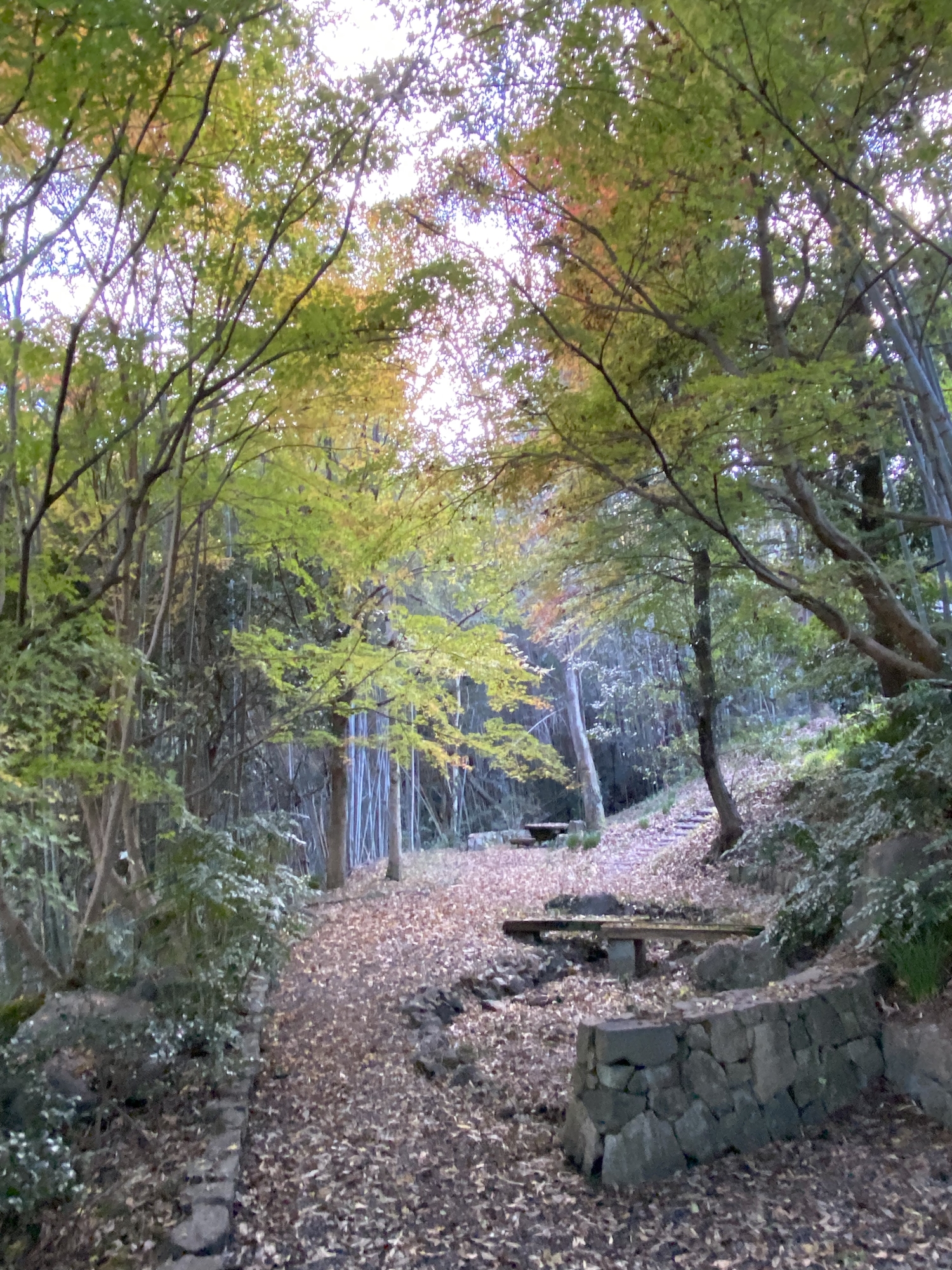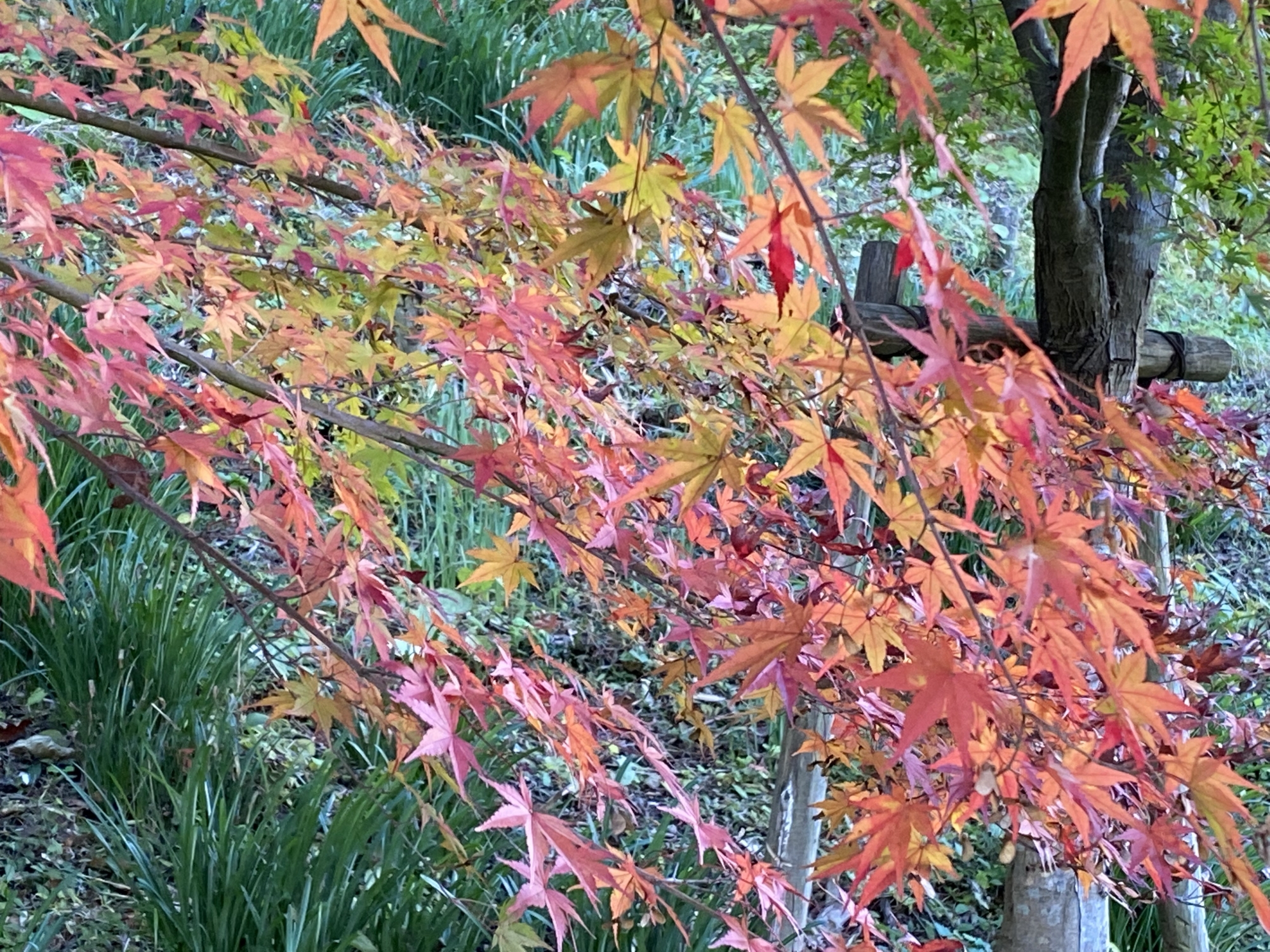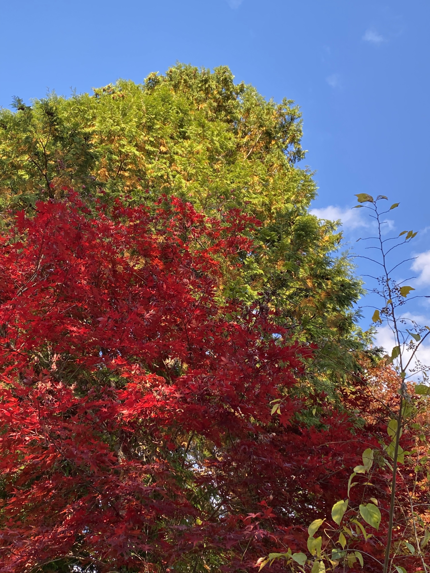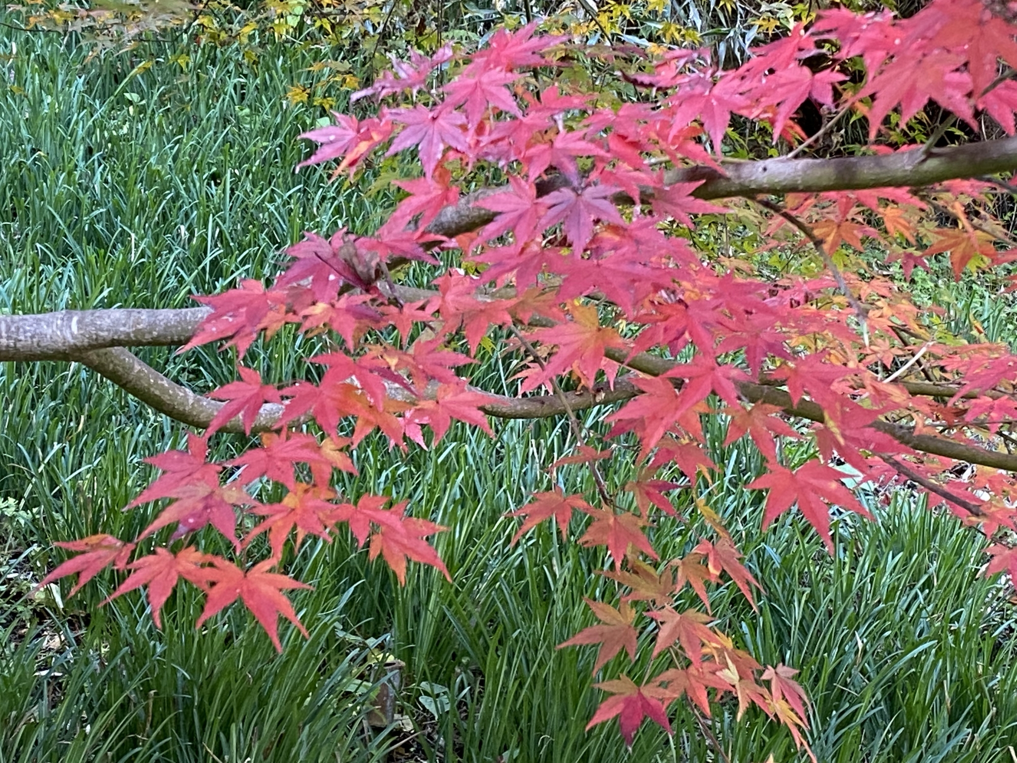 階段の方から降りると・・ここでも、紅葉が素晴らしく・・陽射しに輝いていました。
