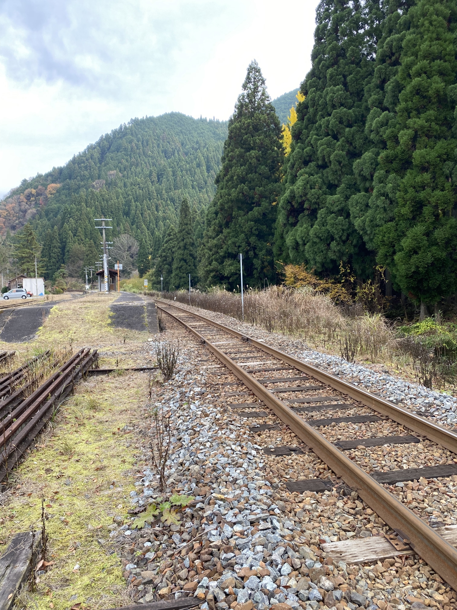 休みの日曜日で・・・午前中は、家でゴソゴソ・・昼過ぎから、でも、曇り空だし(ただ、明日は、悪天候で、風雨や寒気が・・・)~で、今月初めに・・「津山まなびの鉄道館」で情報を得た因美線の駅に・・・県内では一番遠い「美作河井」駅へ。
