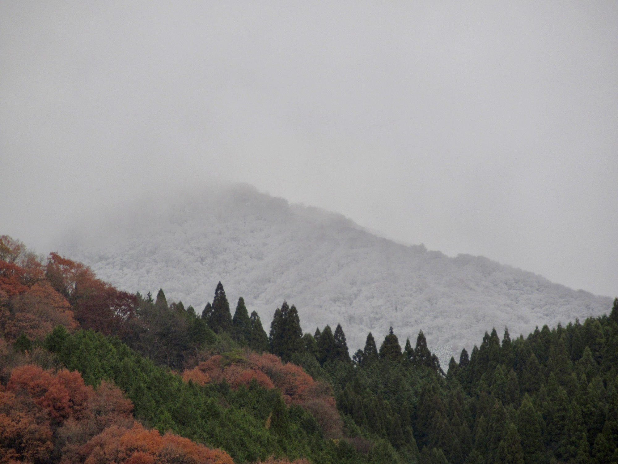 冷え込んだ朝で・・・山々は雪化粧~この前より白い範囲が広いです。