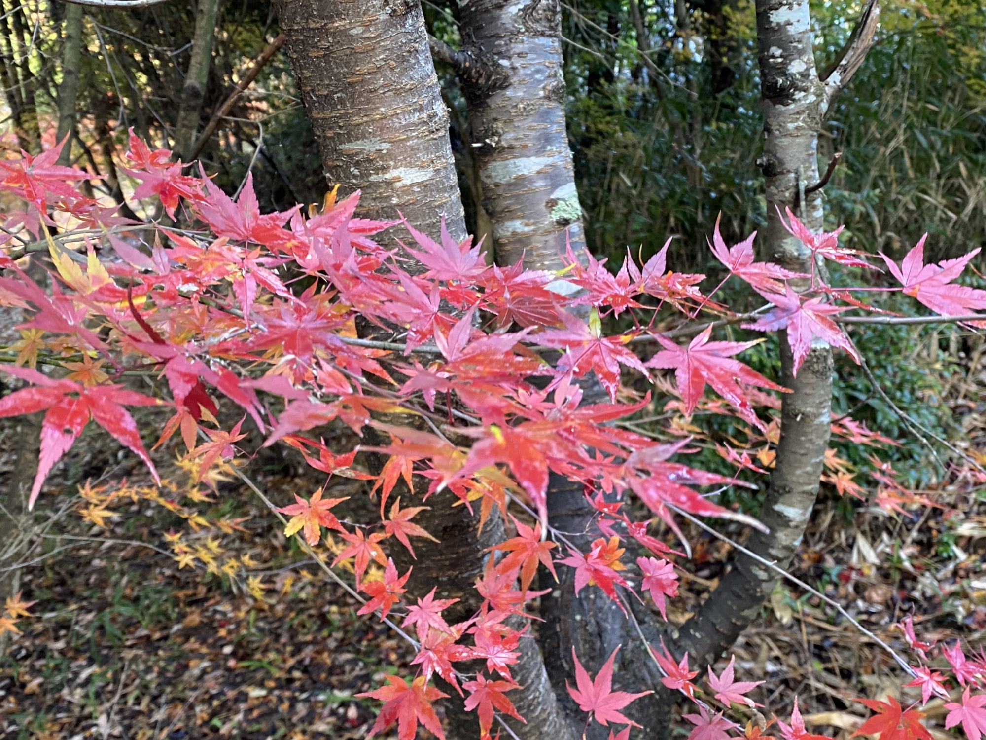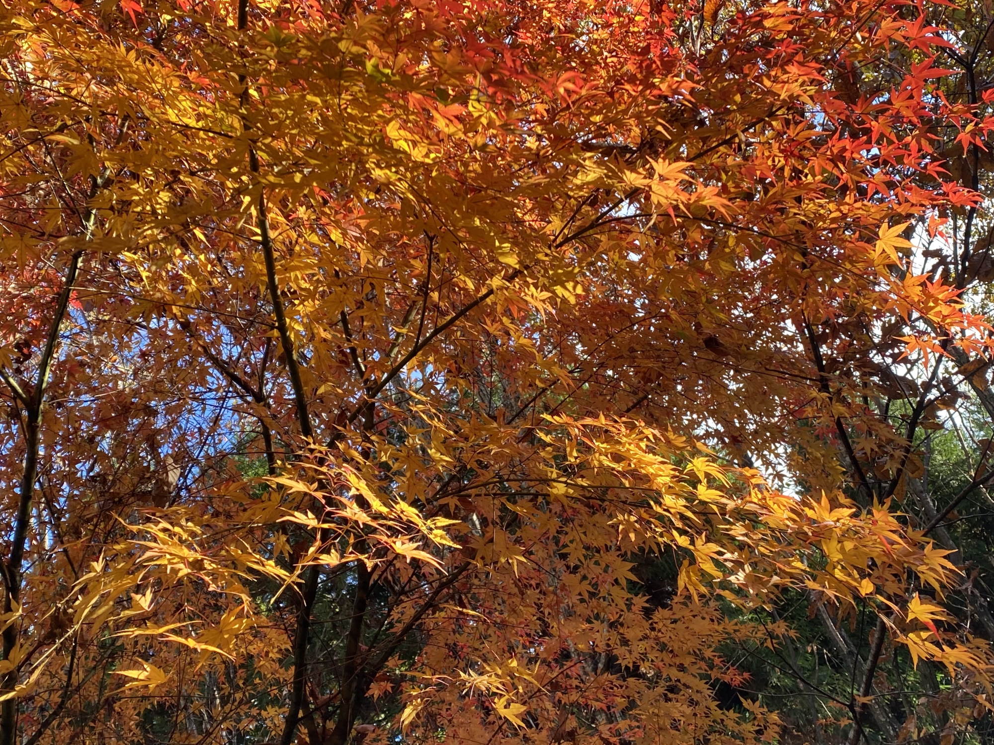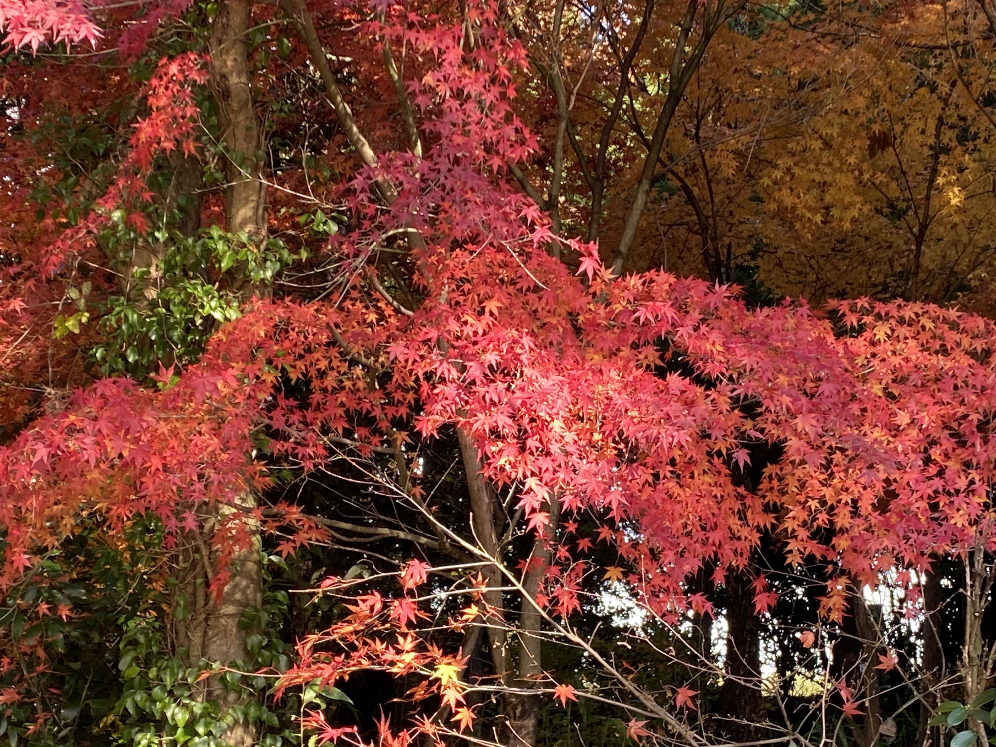 摂社の奥へ向かって言っていたら、なんと、紅葉が沢山、植えられていて・・・。まさに、午後の陽射しに輝いていました。